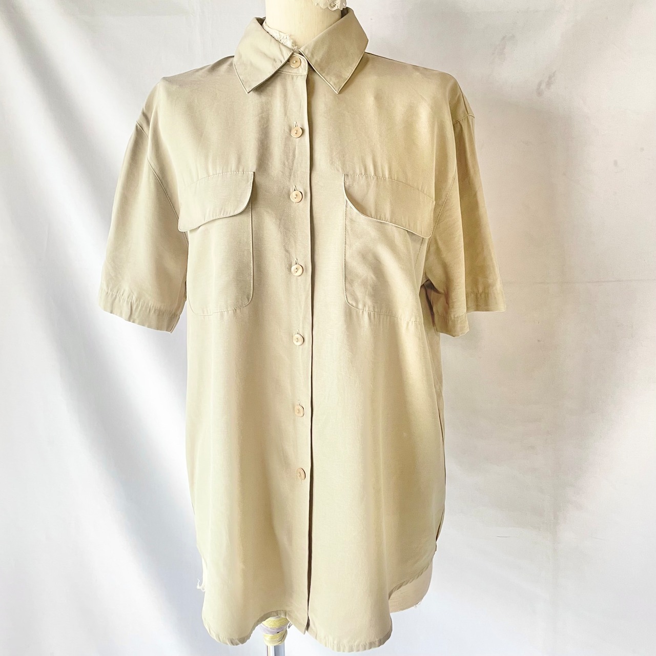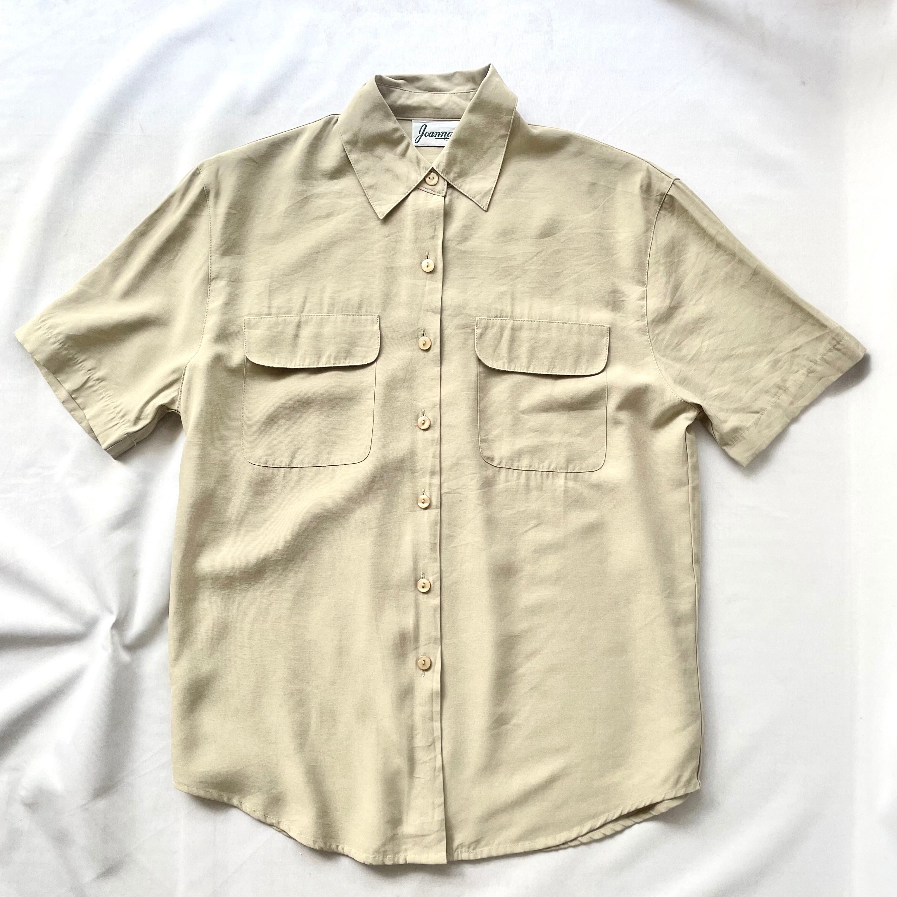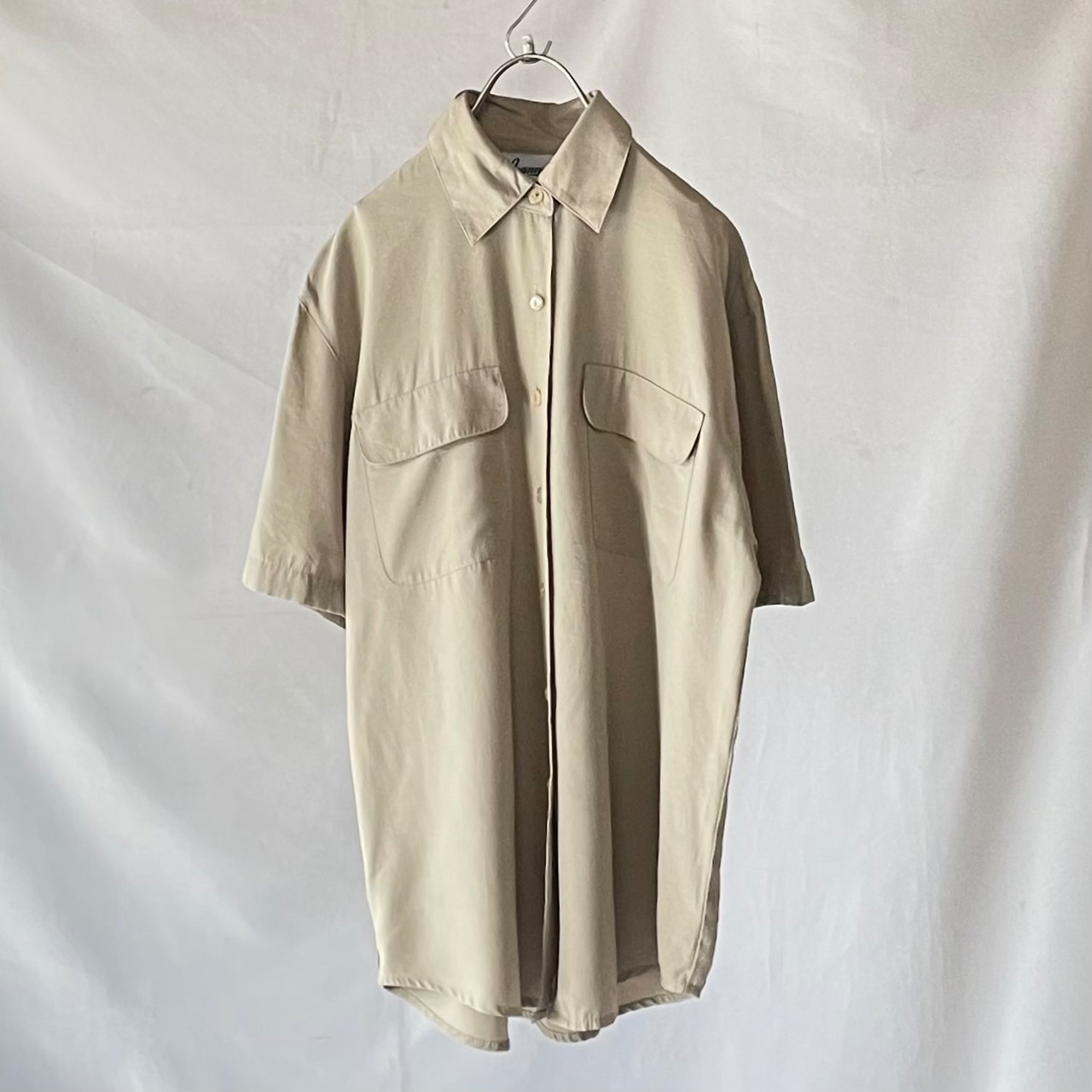 Flap pocket beige rayon S/S shirt フラップポケット付きベージュレーヨン半袖シャツ