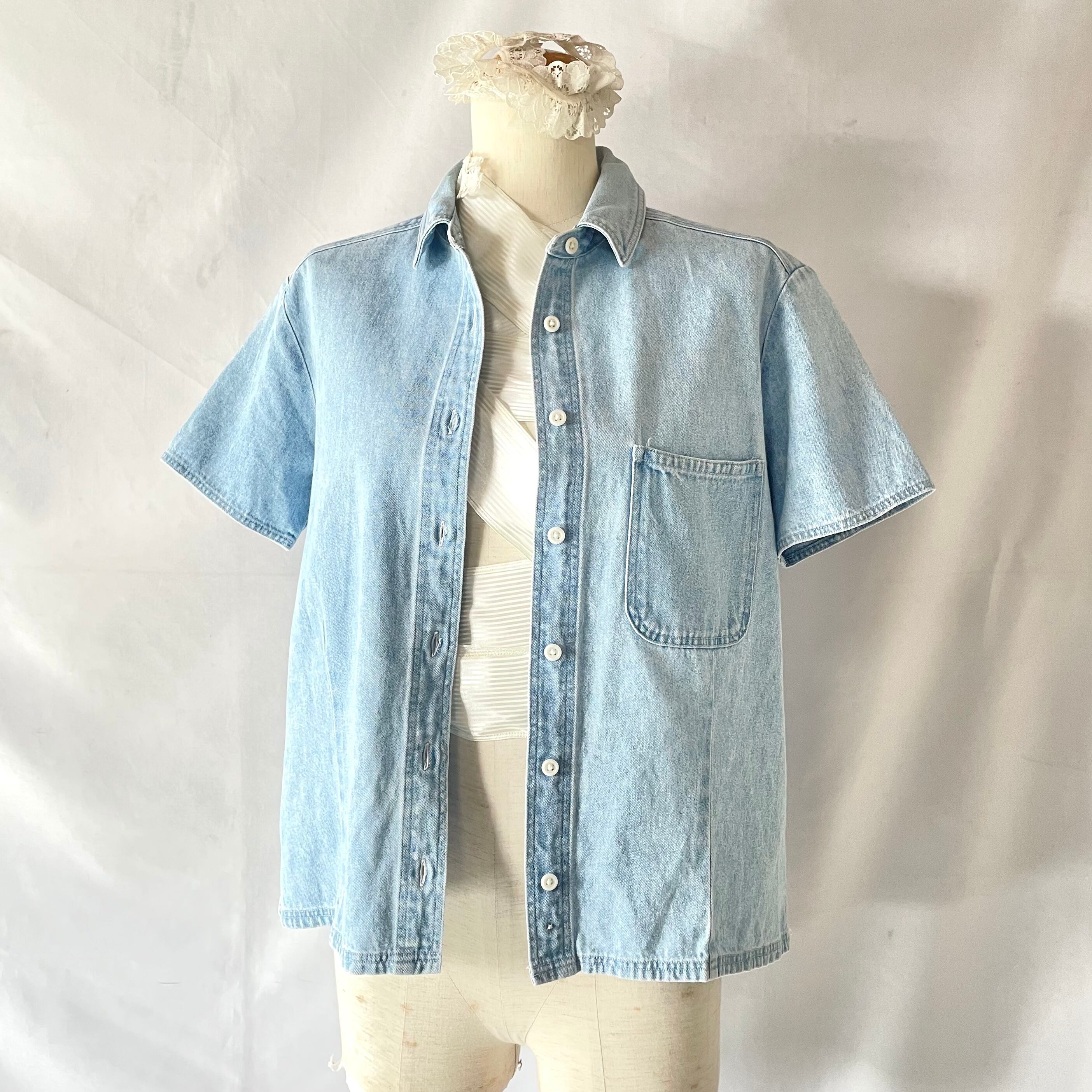 Made in Maulitius L.L.bean denim S/S shirt エルエルビーン淡色デニム半袖シャツ