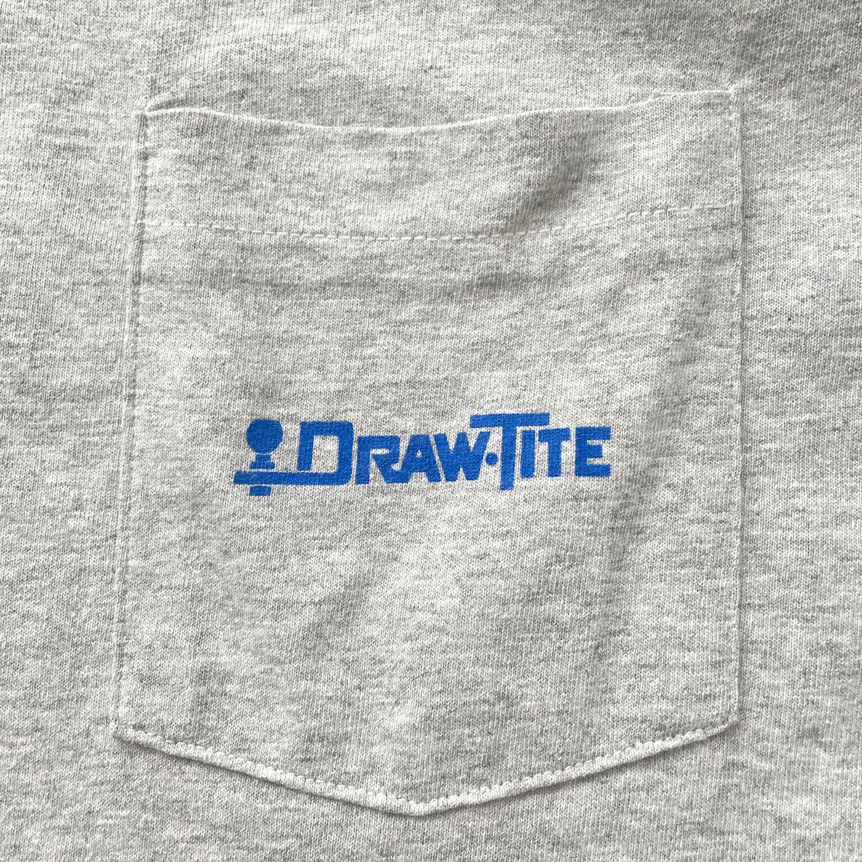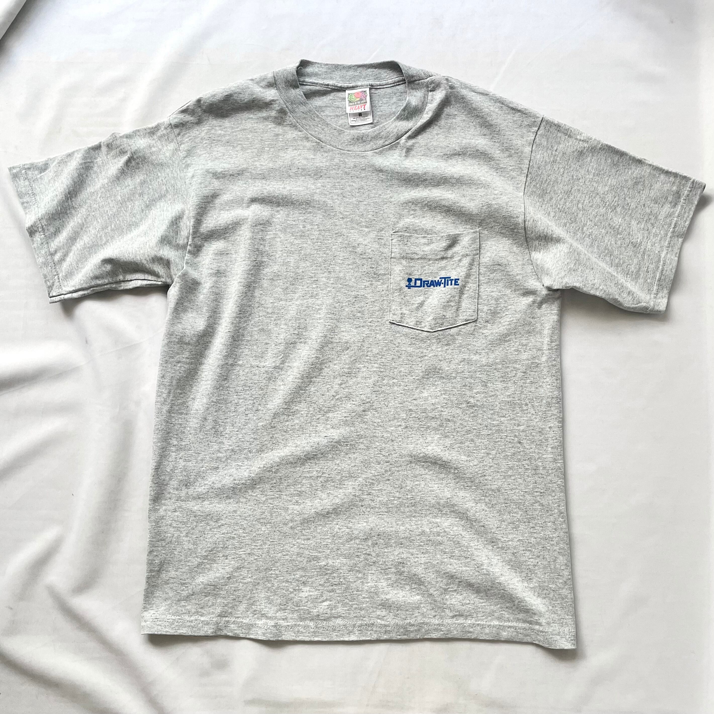 1946年創業のトレーラー部品などを扱うアメリカ老舗メイカーDRAW-TITEのロゴプリントポケットが良い、90-00年代フルーツオブザルーム グレーボディーヘヴィーコットンTシャツです。