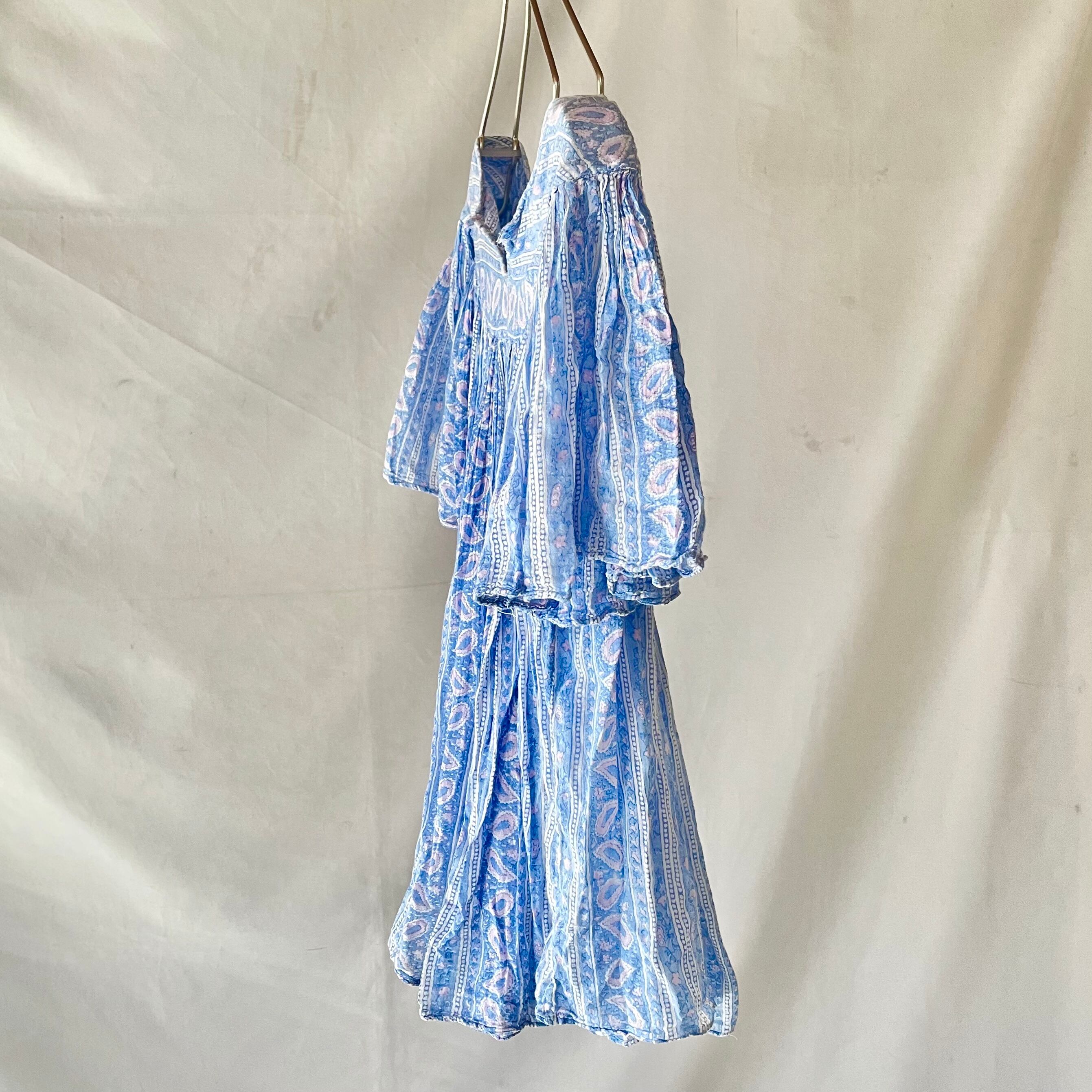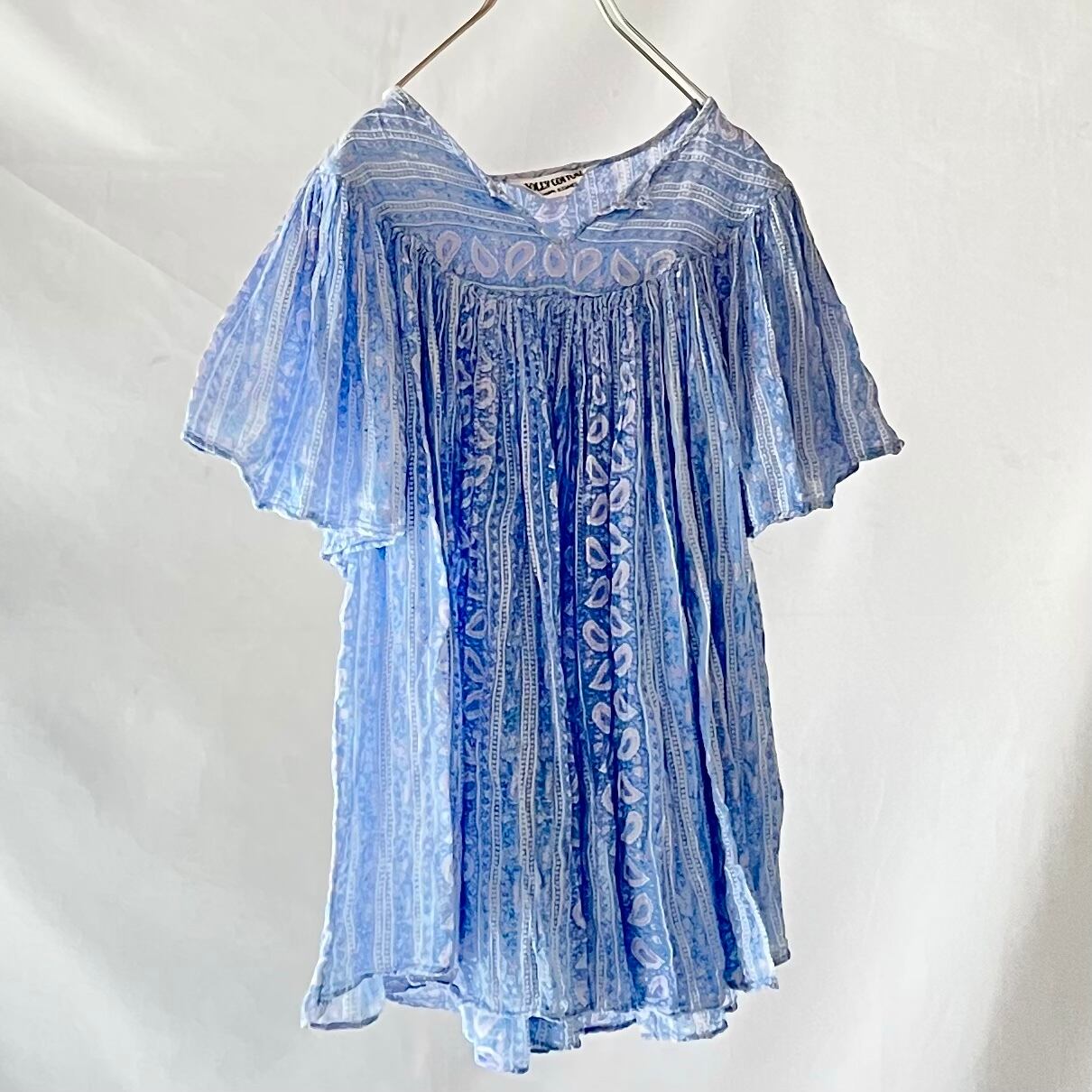 70s vintage indian cotton blue paisley tunic blouse 水色インド綿チュニック