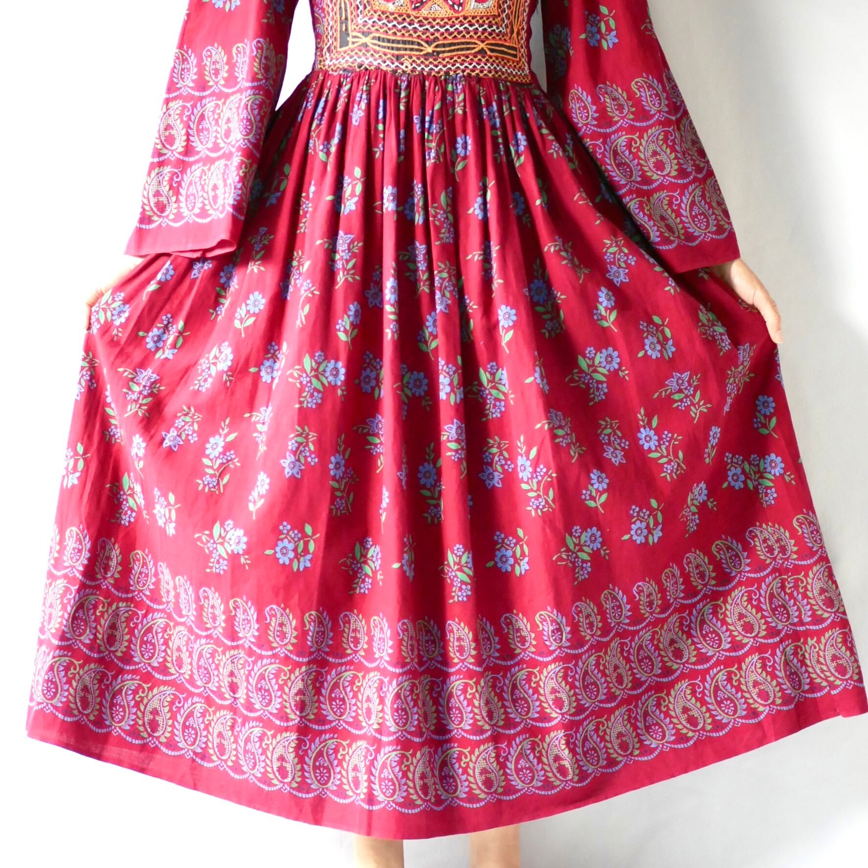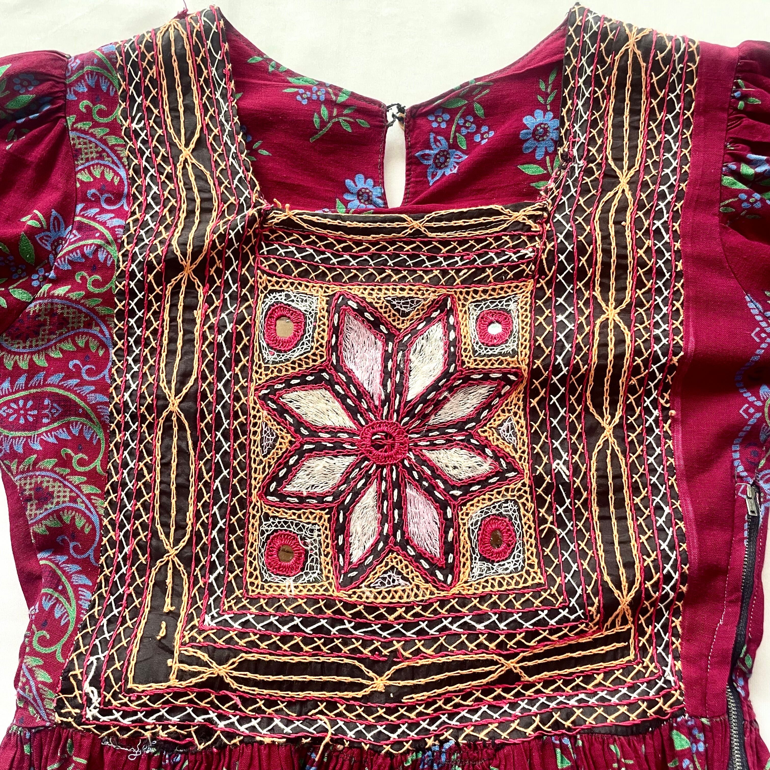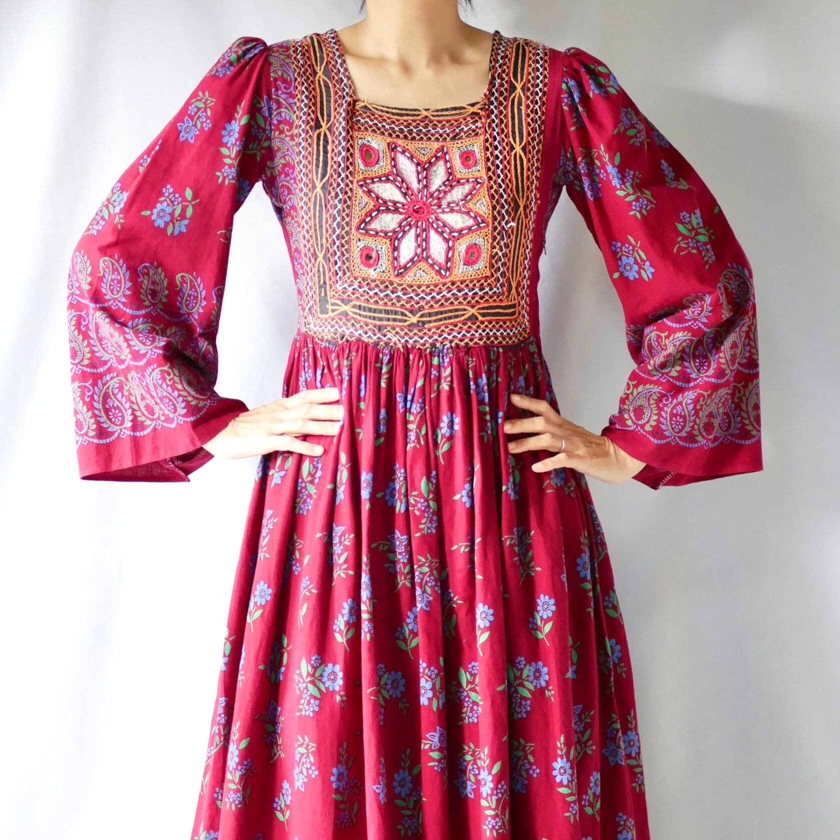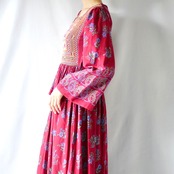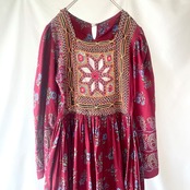 6-70s vintage burgundy maxi afghan onepiece ミラーワーク刺繍アフガンワンピース