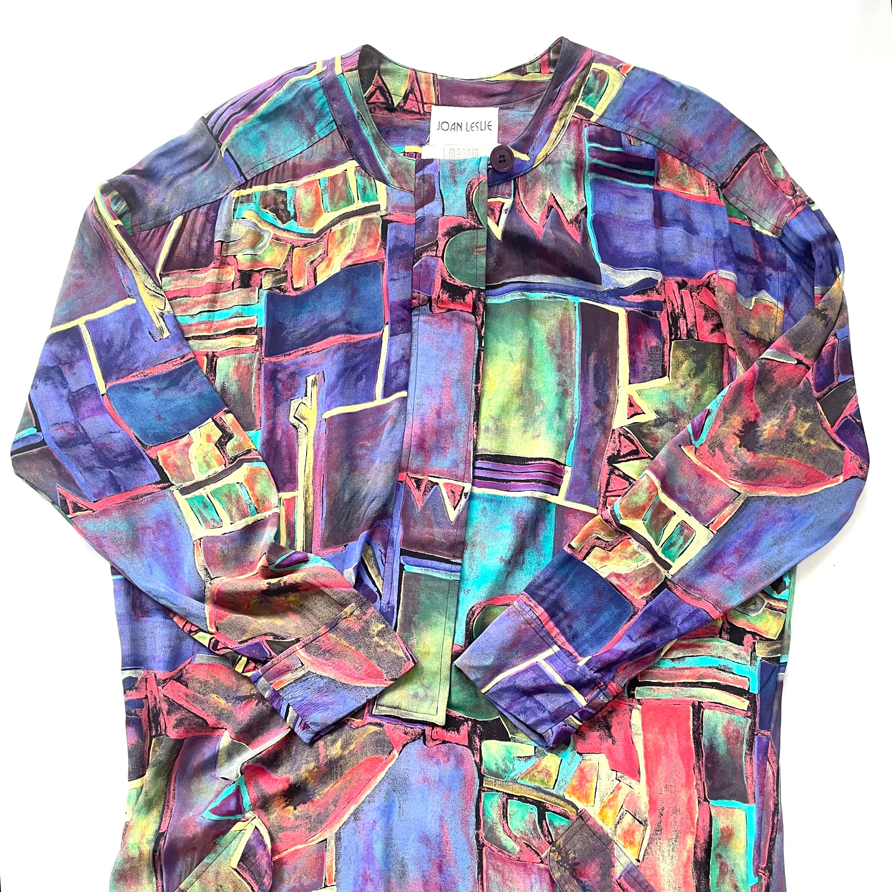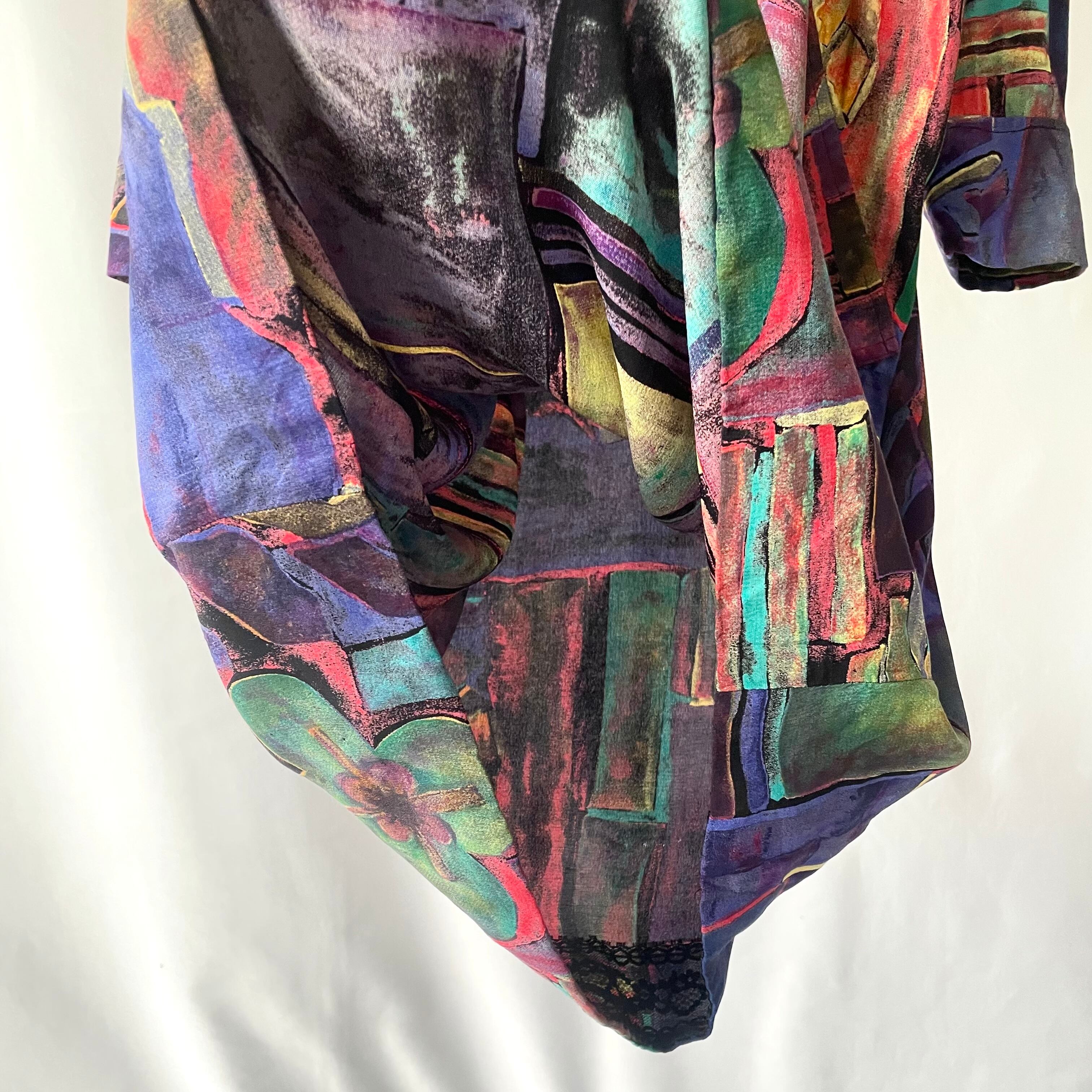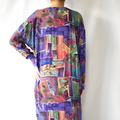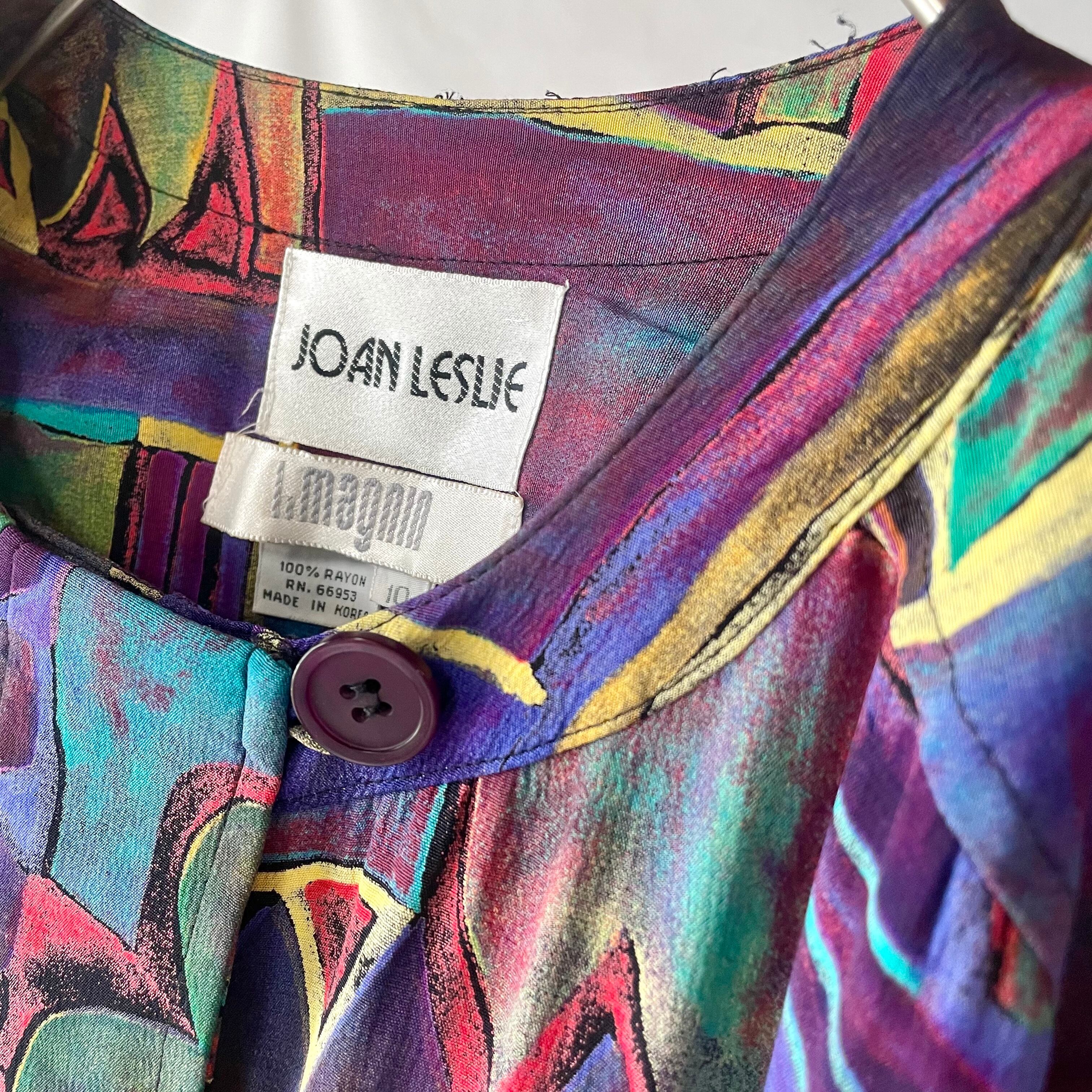 80s JOAN LESLIE × I.magnin art onepiece 絵画風プリント長袖ワンピース