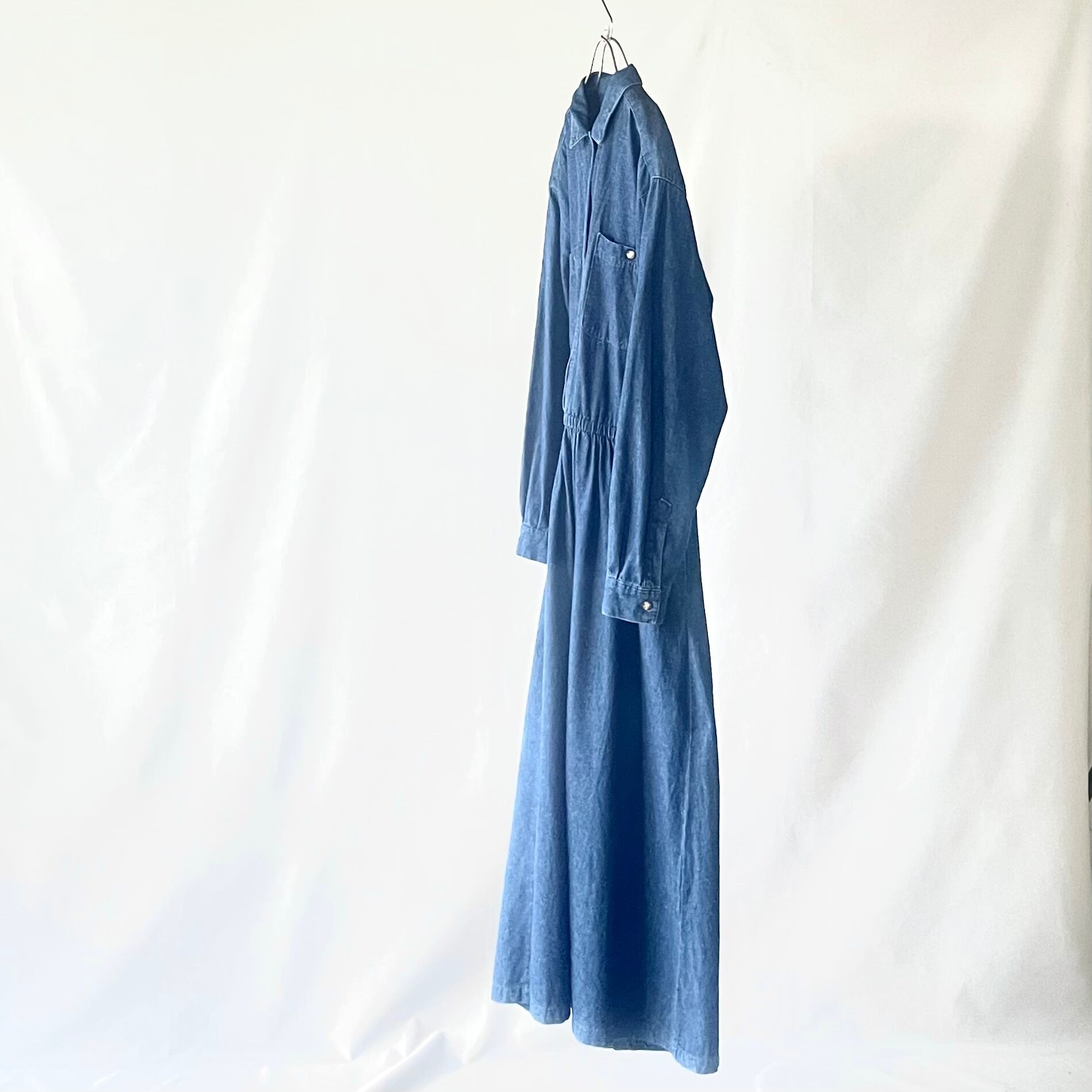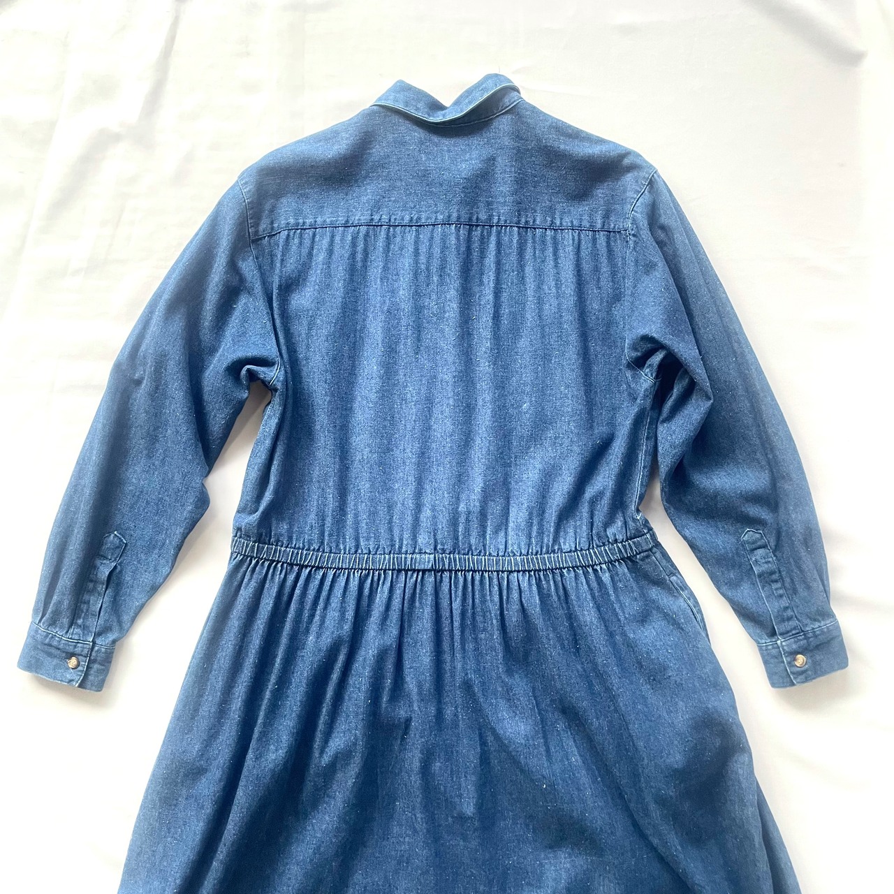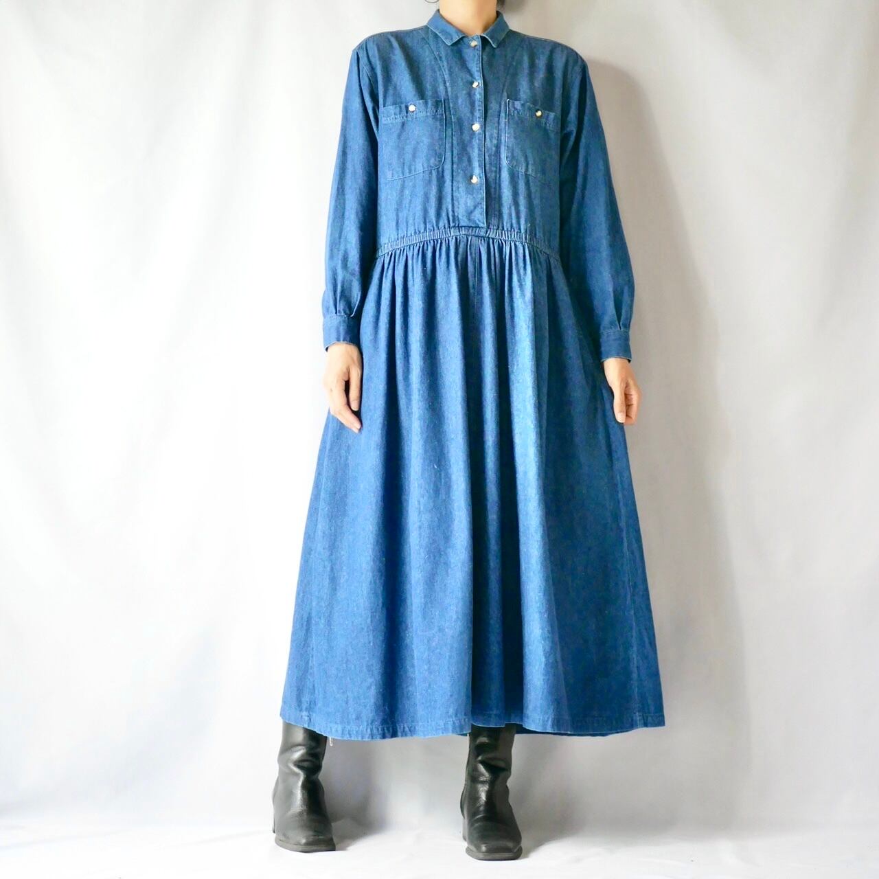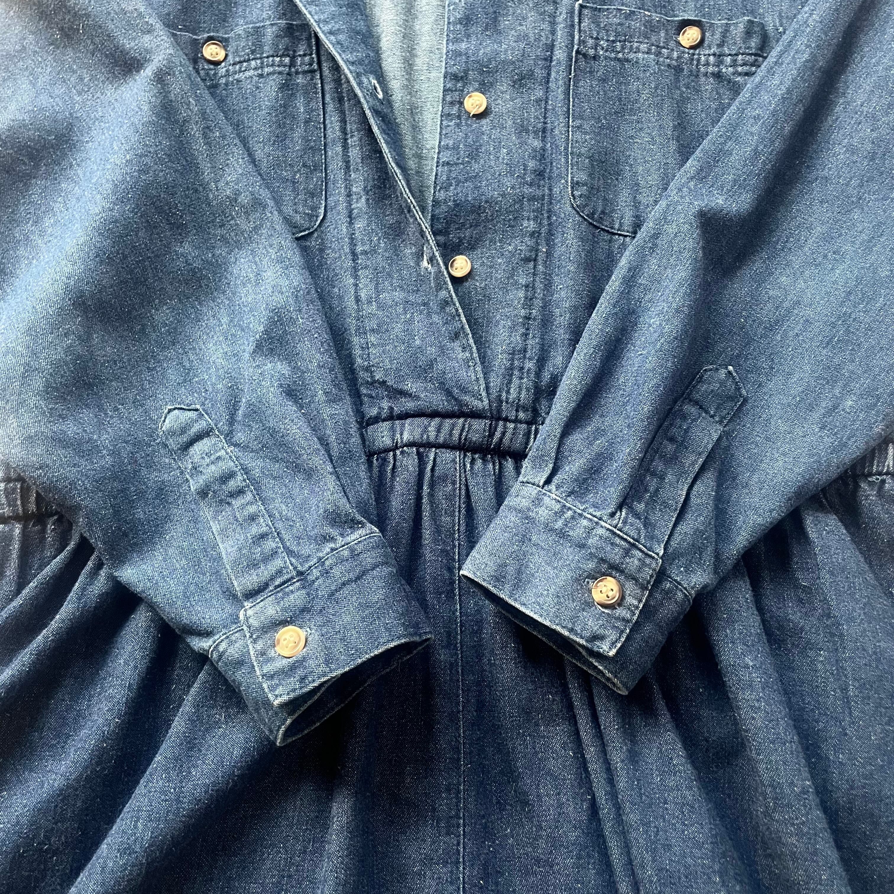 8-90年代ヴィンテージ エディーバウアーデニムマキシ丈シャツワンピースです。ポケット付き