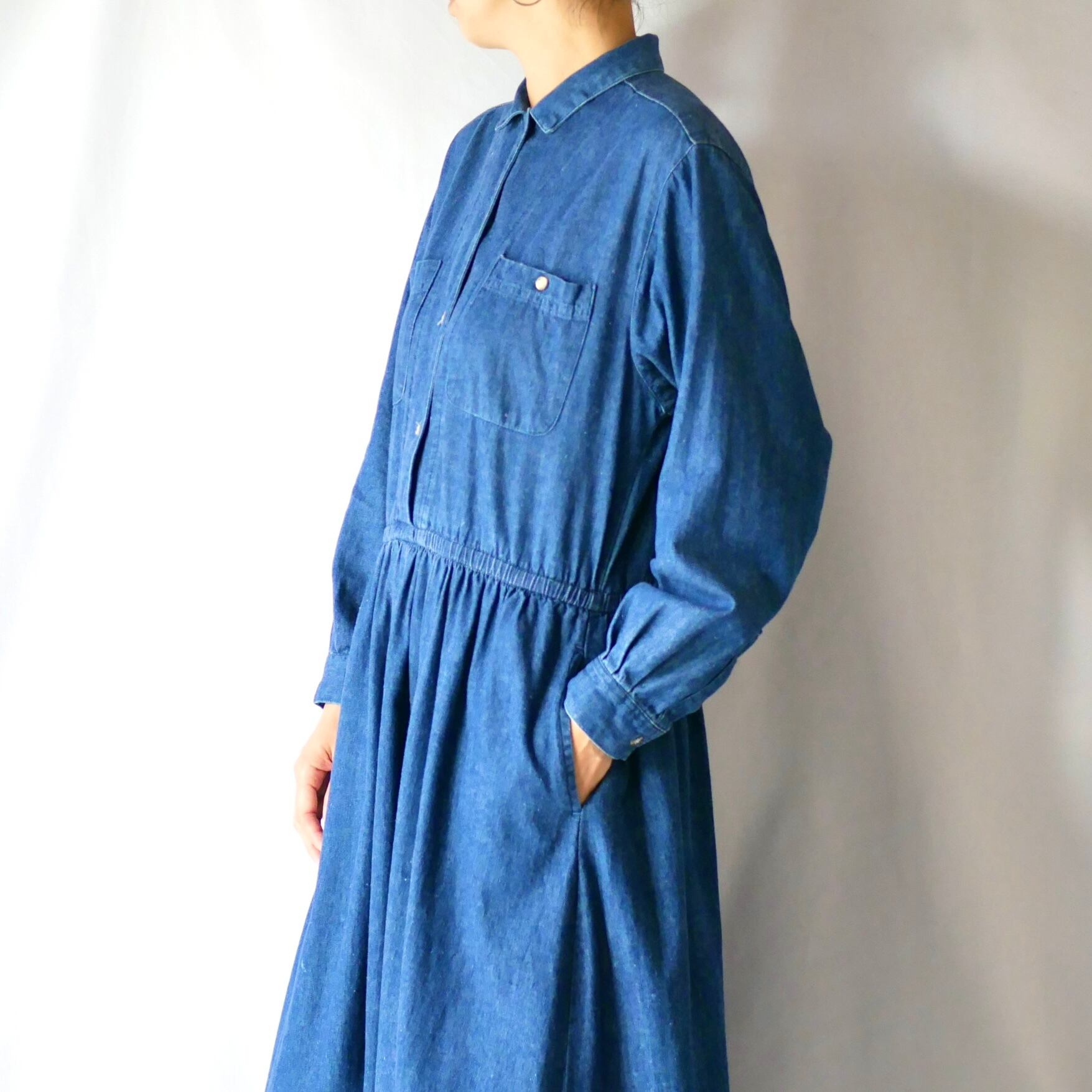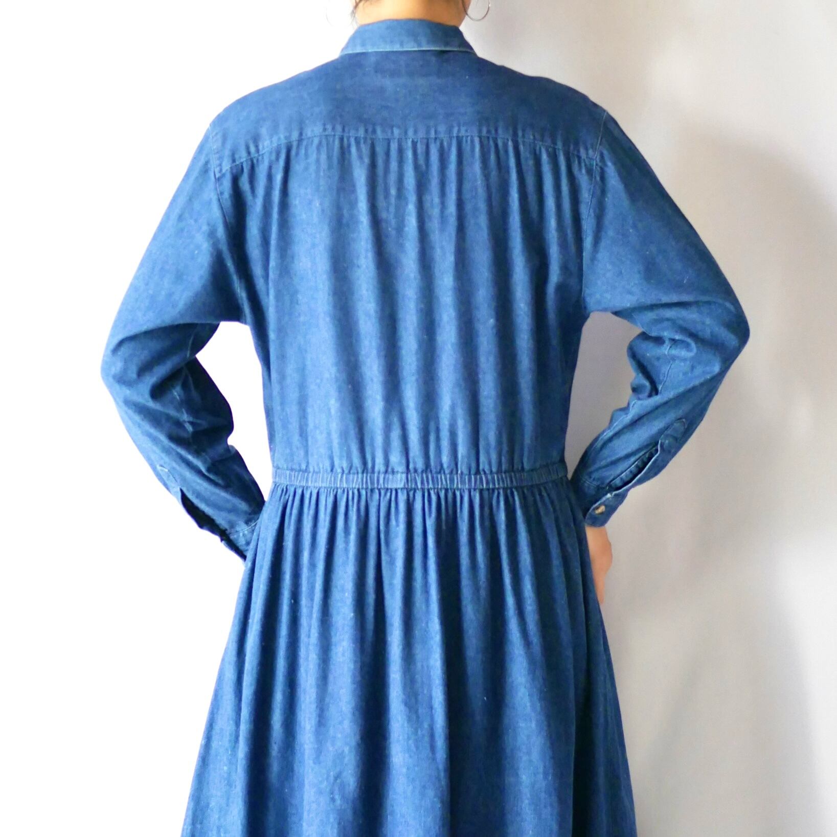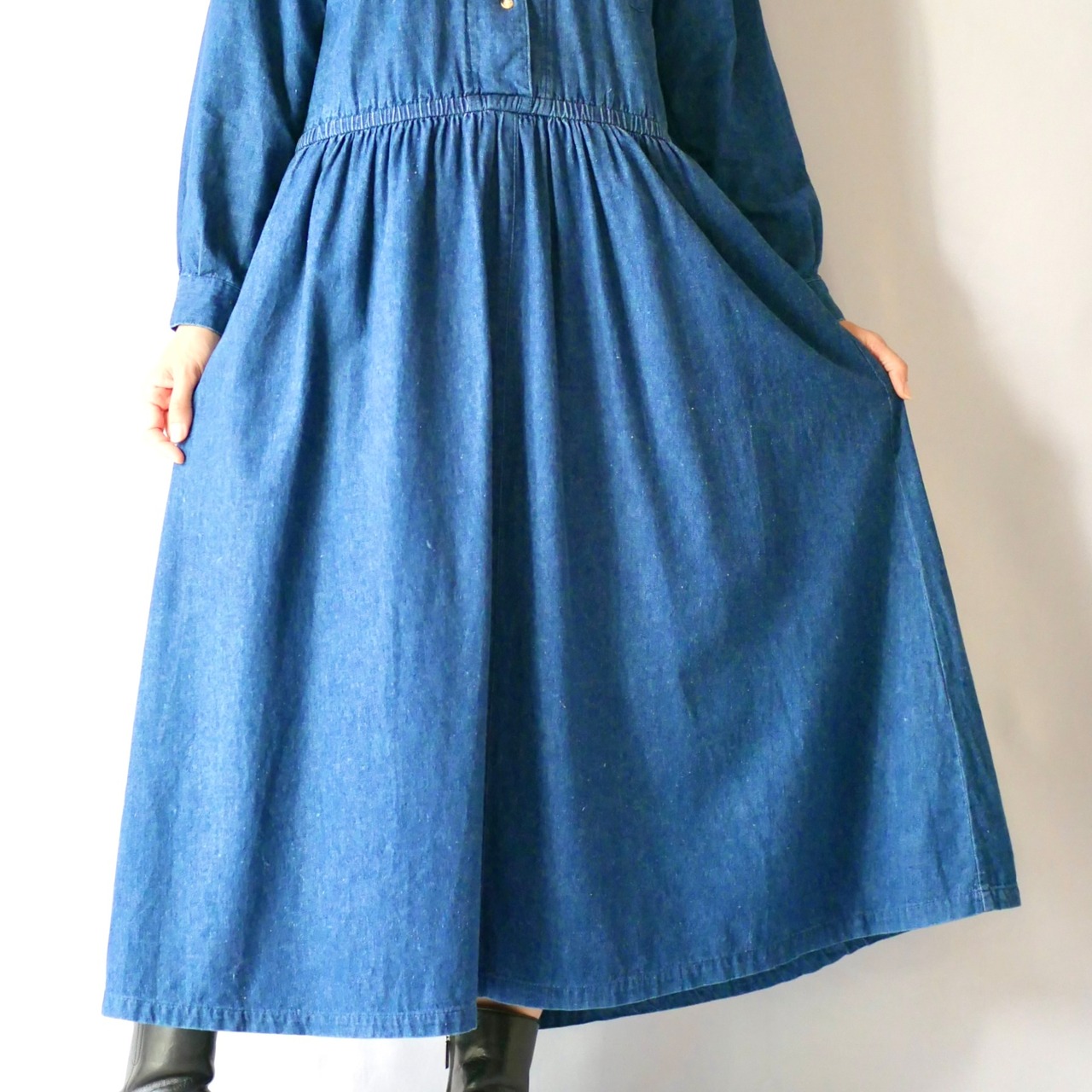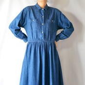 8-90年代ヴィンテージ エディーバウアーデニムマキシ丈シャツワンピースです。ポケット付き
