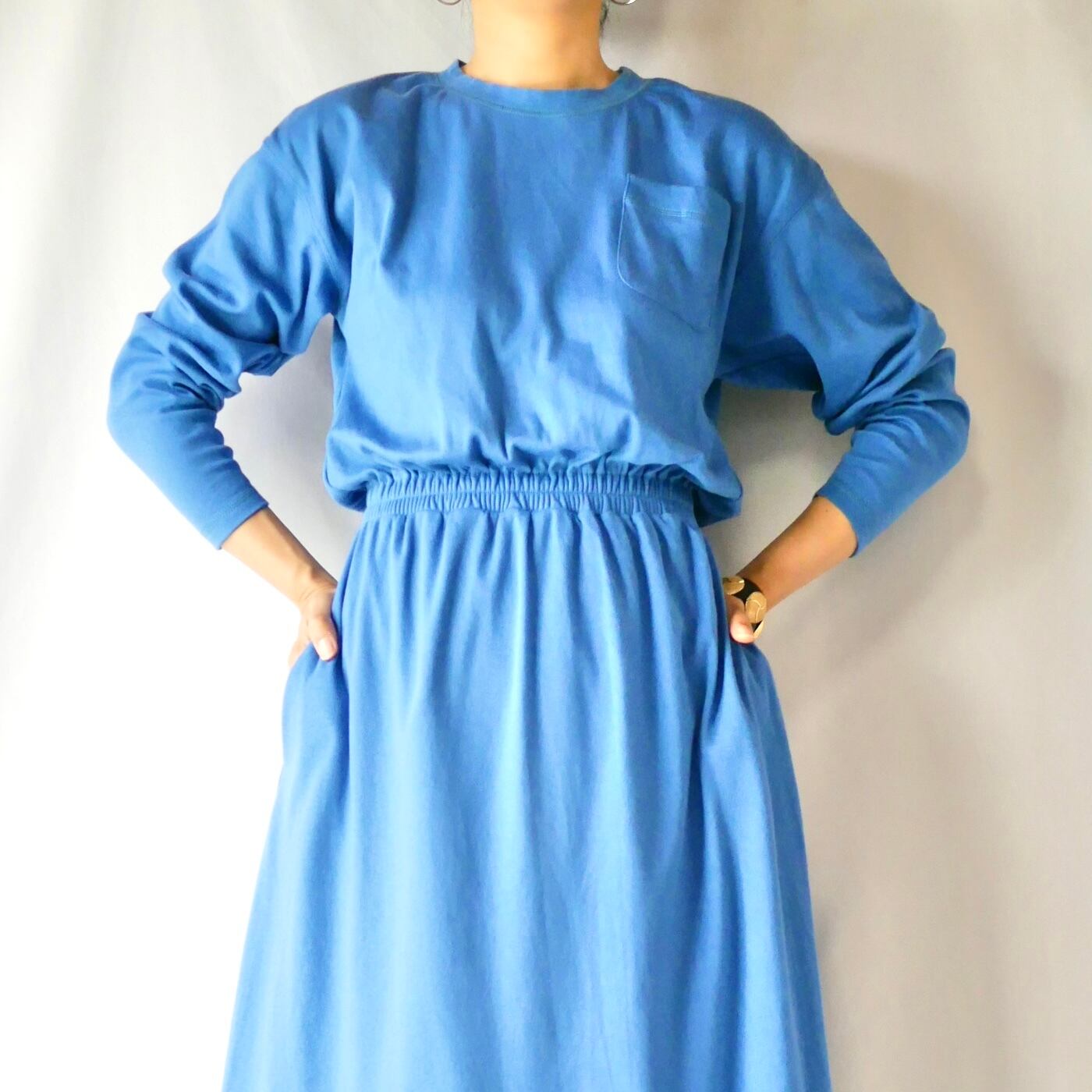 Made in USA turquoise blue onepiece アメリカ製ターコイズブルーシンプルワンピース