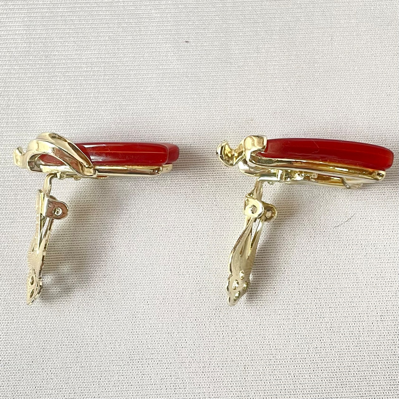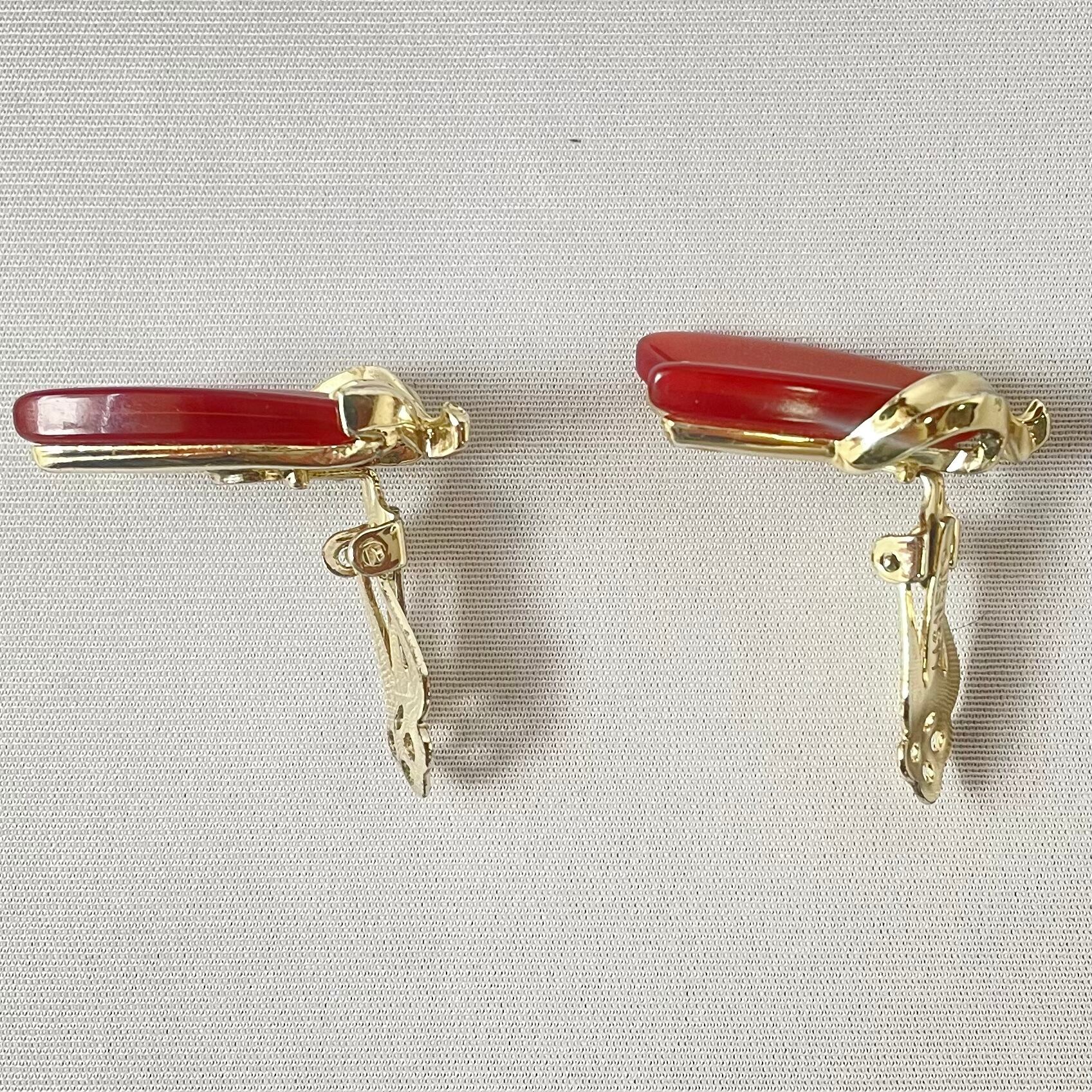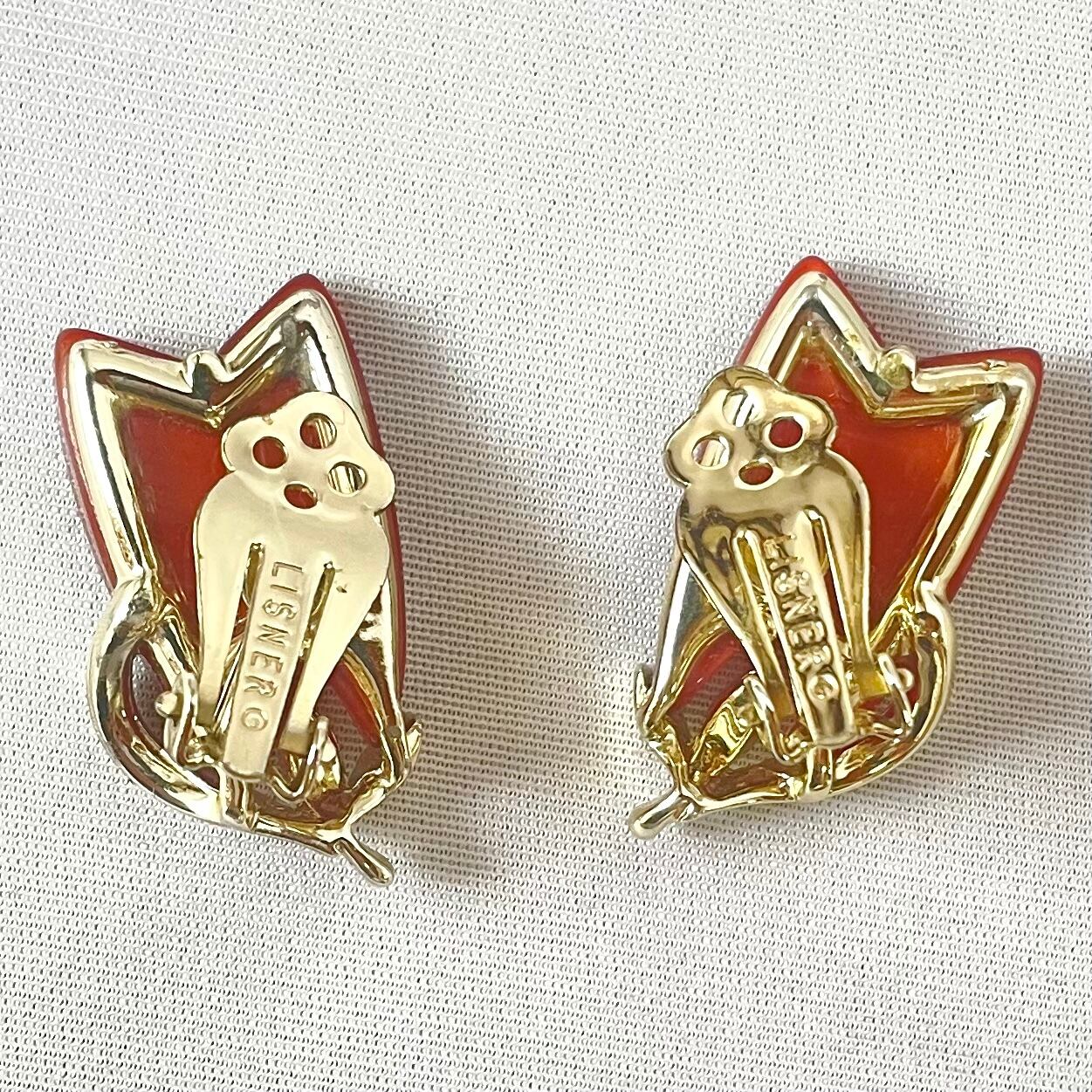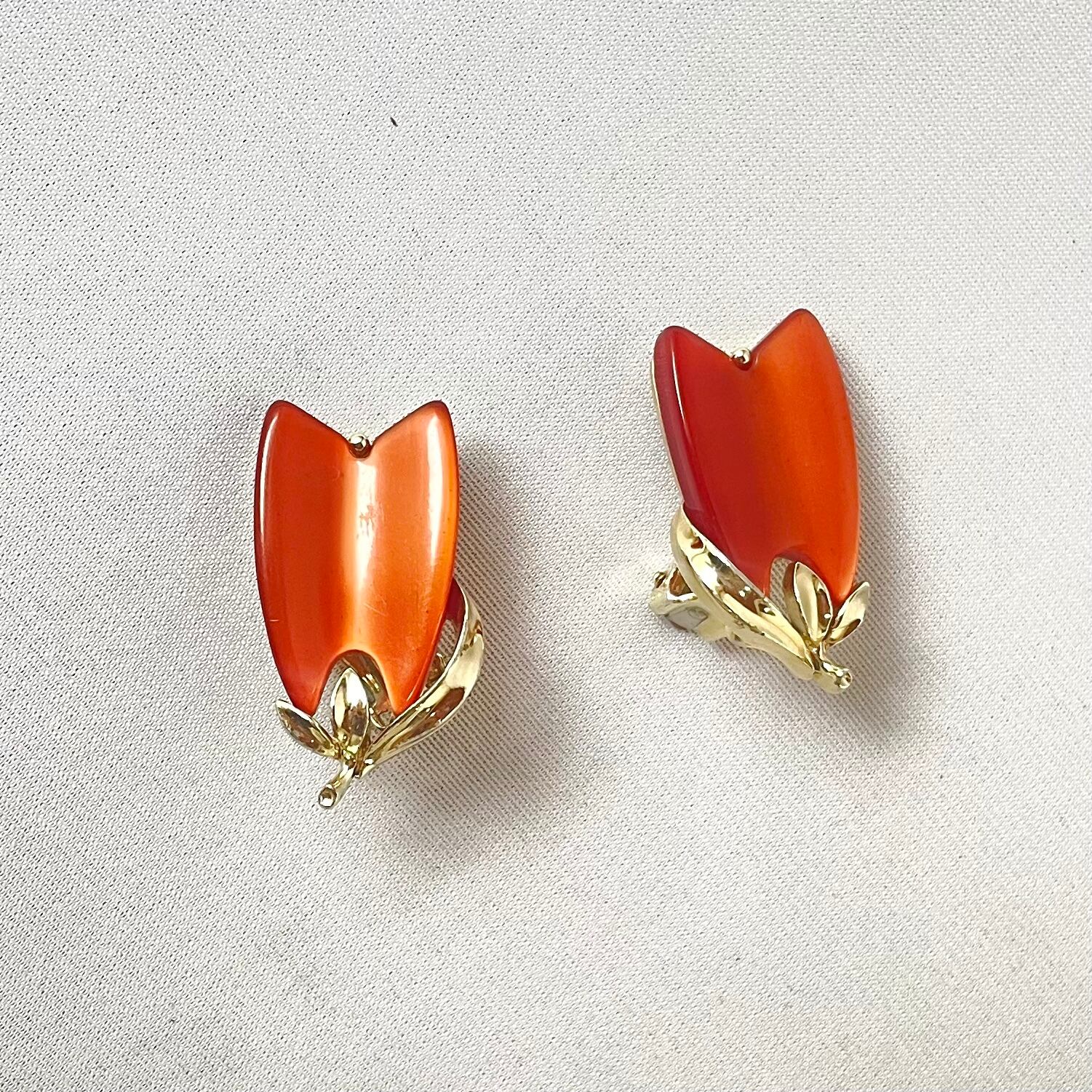 コスチュームジュエリーブランドLISNERの、キャラメルのようなアンバーカラーのチューリップのようなモチーフの60s頃のヴィンテージイヤリングです。状態良好。LISNER©刻印