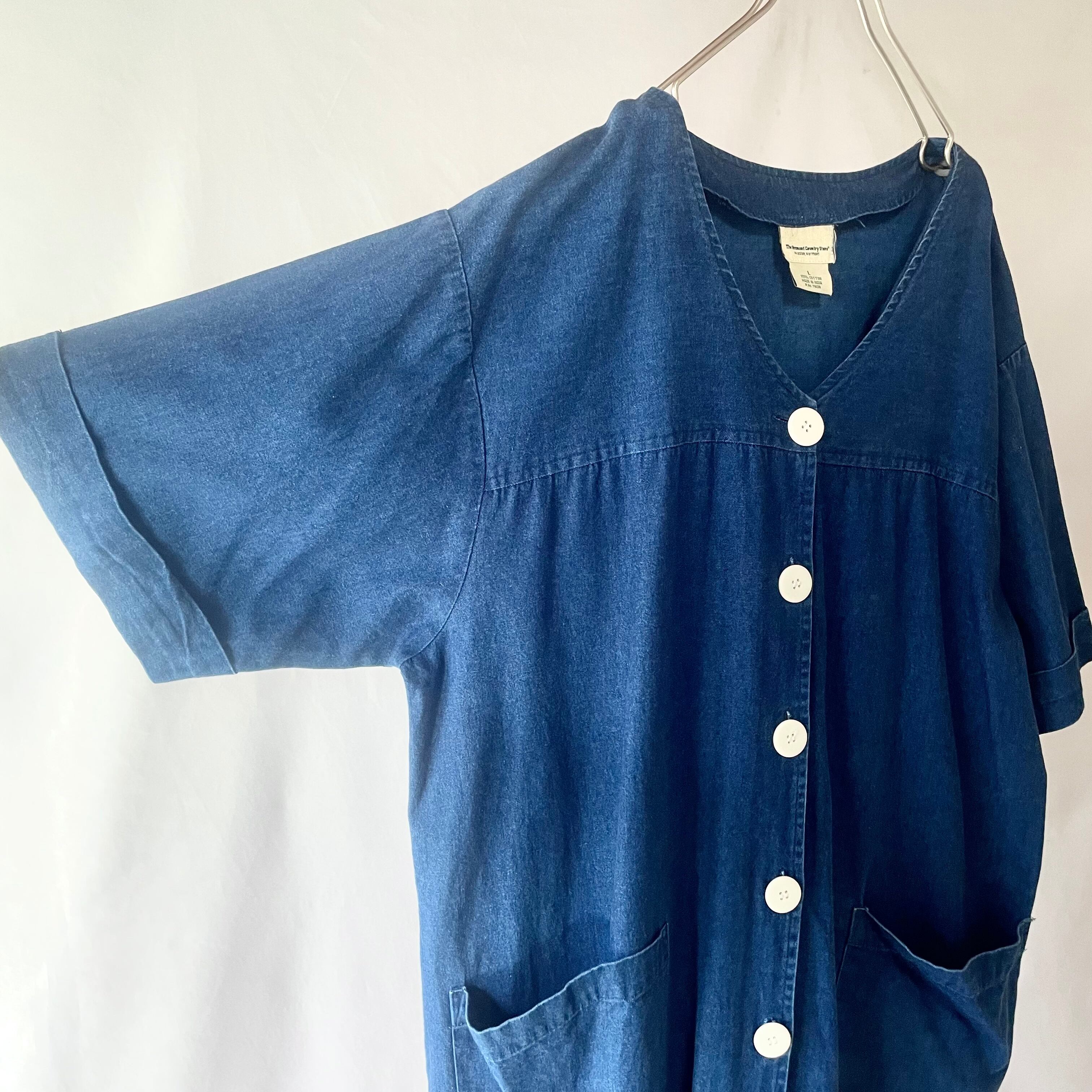 インド製コットン100%濃紺デニム半袖ノーカラーJKT/ロングコートです。