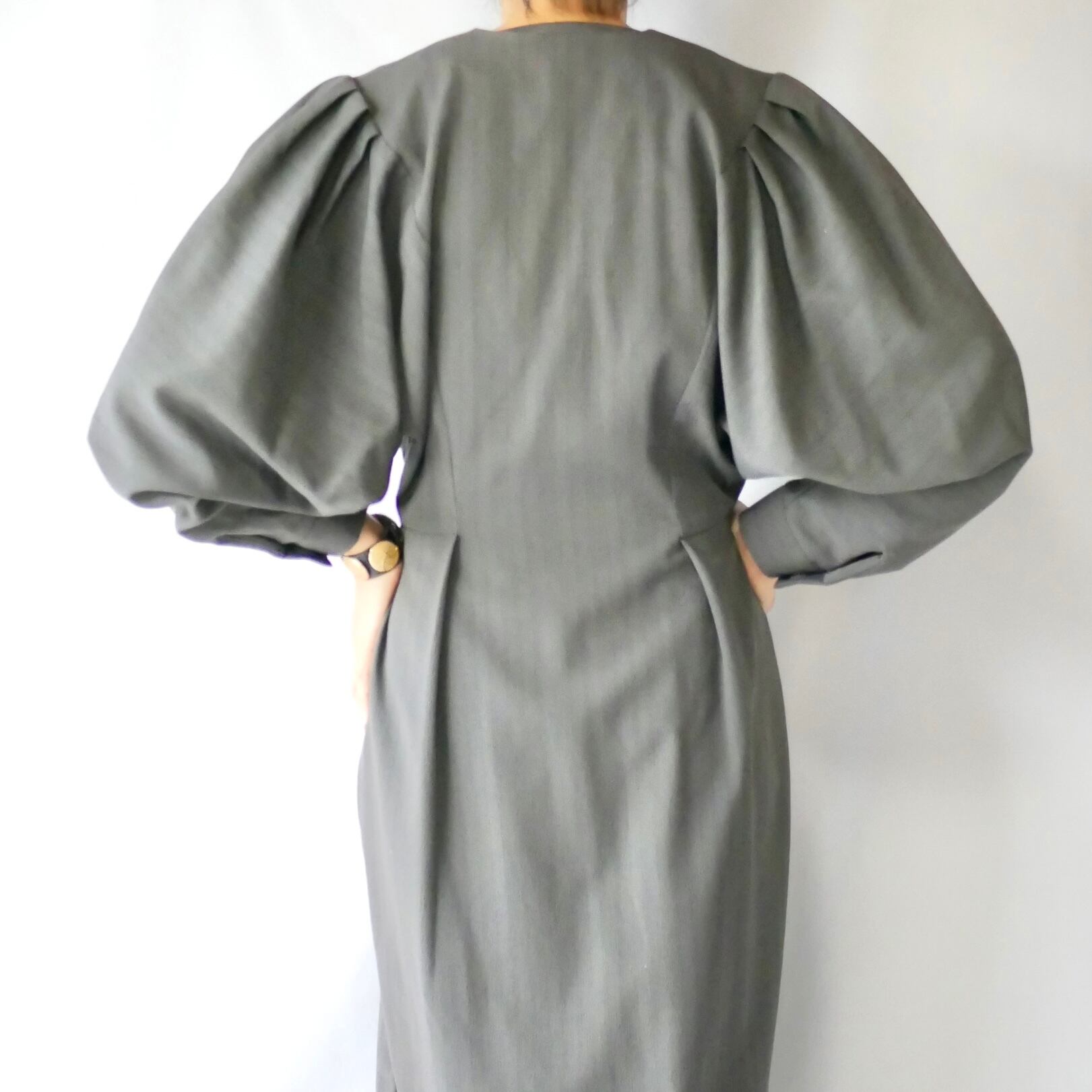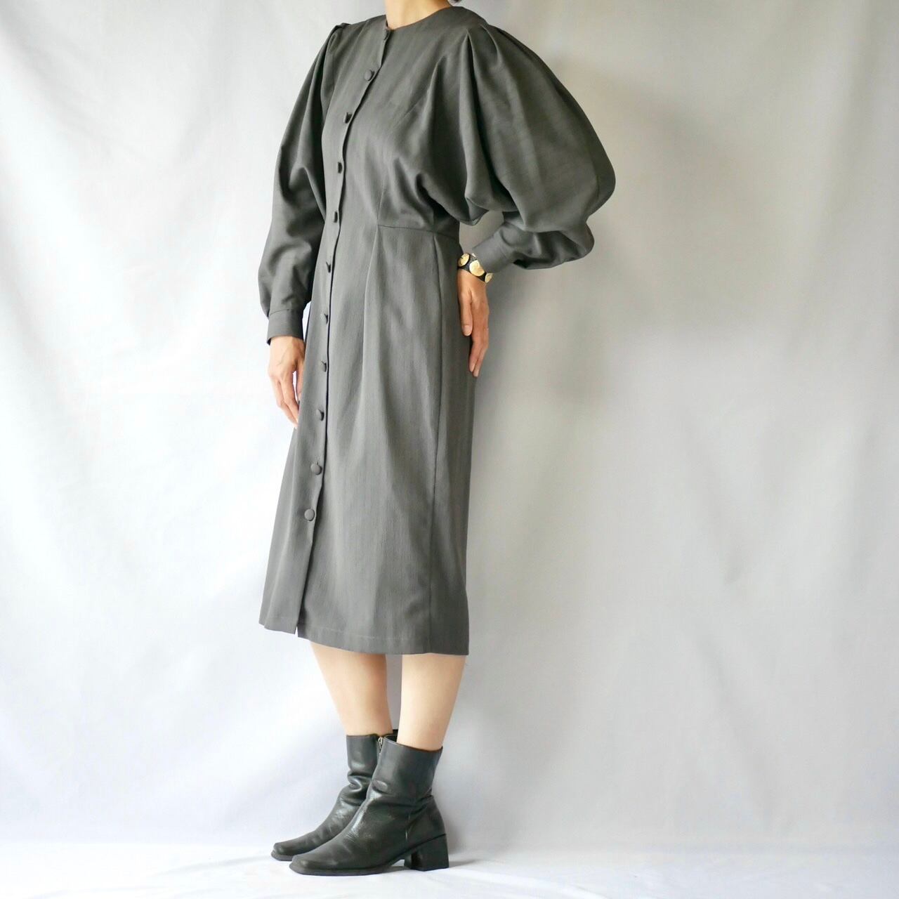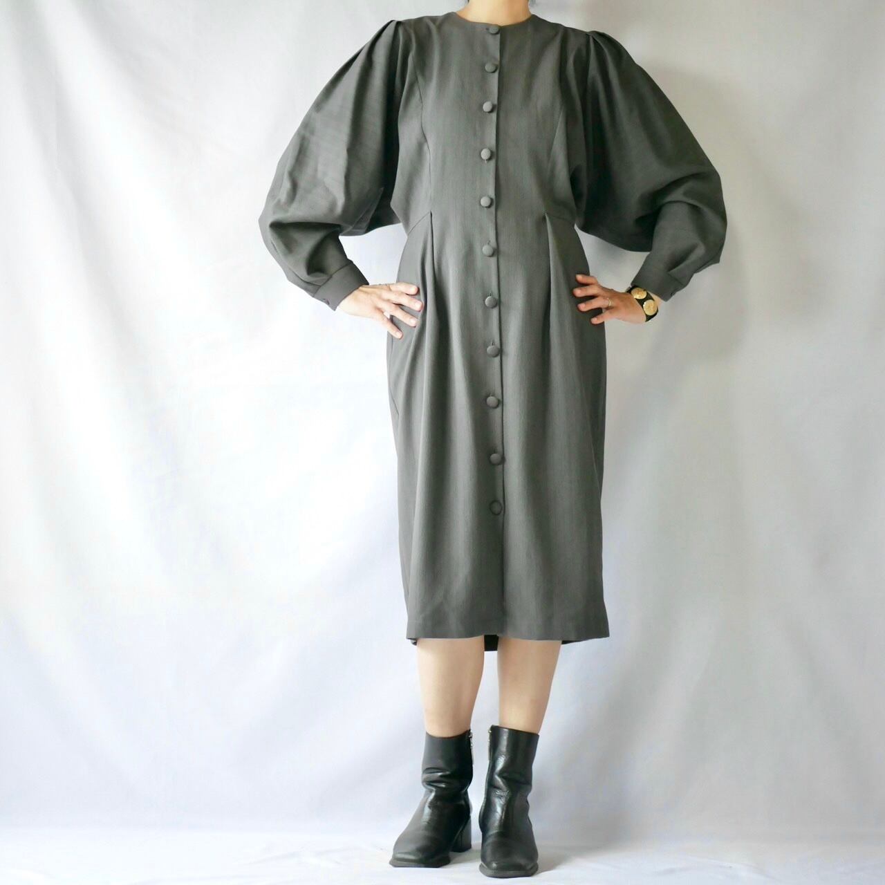 Made in UK charcoal grey dolman sleeve onepiece イギリス製チャコールグレーボリューム袖ワンピース