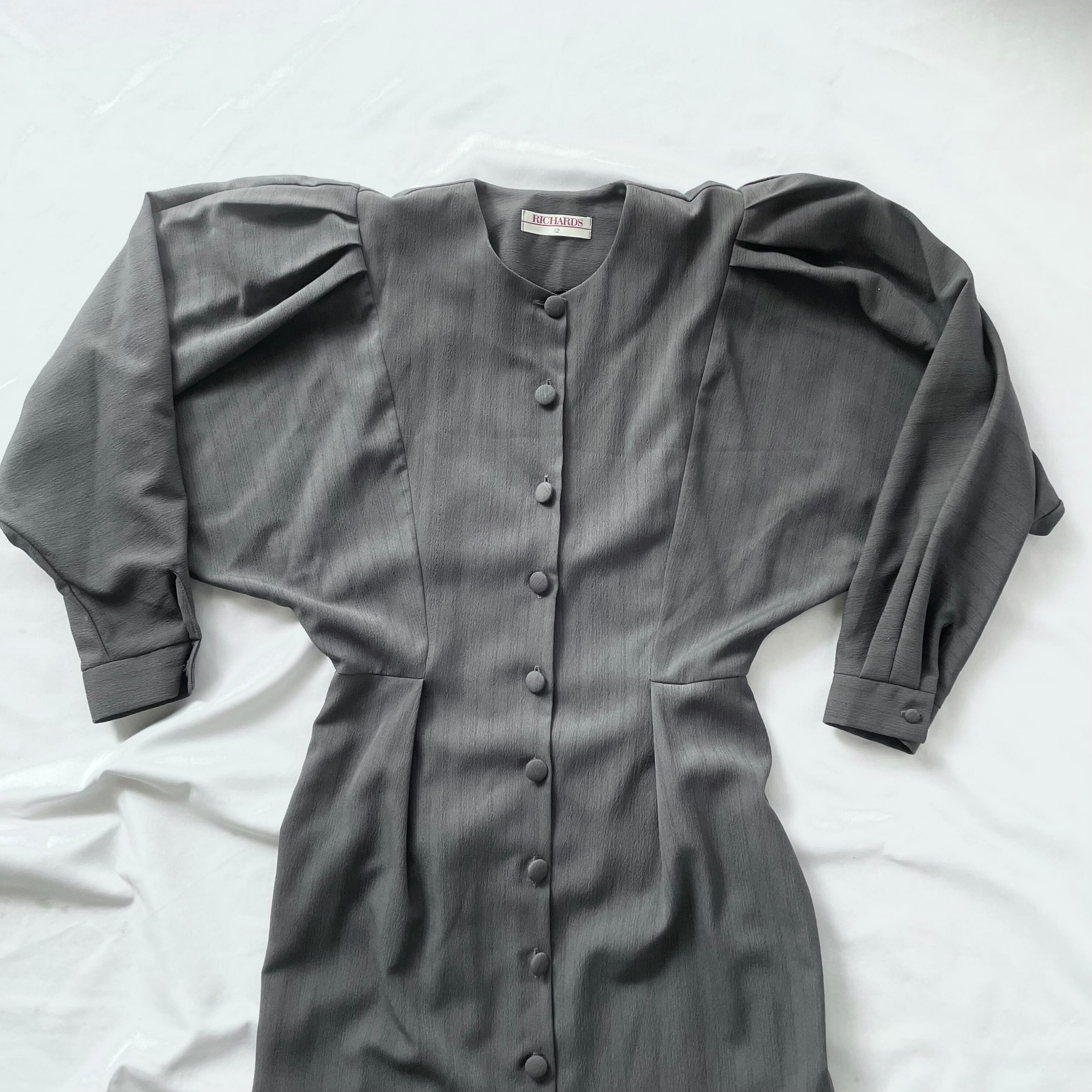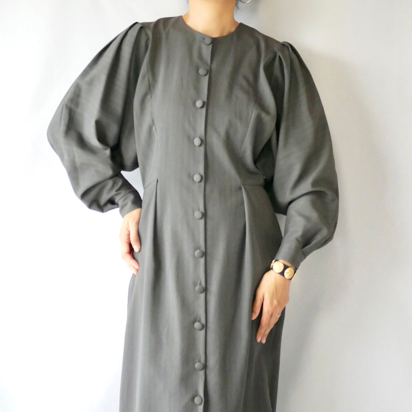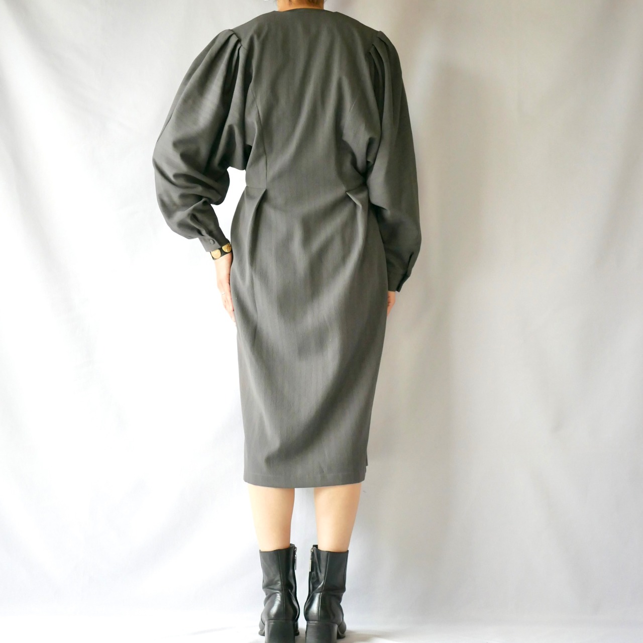 Made in UK charcoal grey dolman sleeve onepiece イギリス製チャコールグレーボリューム袖ワンピース