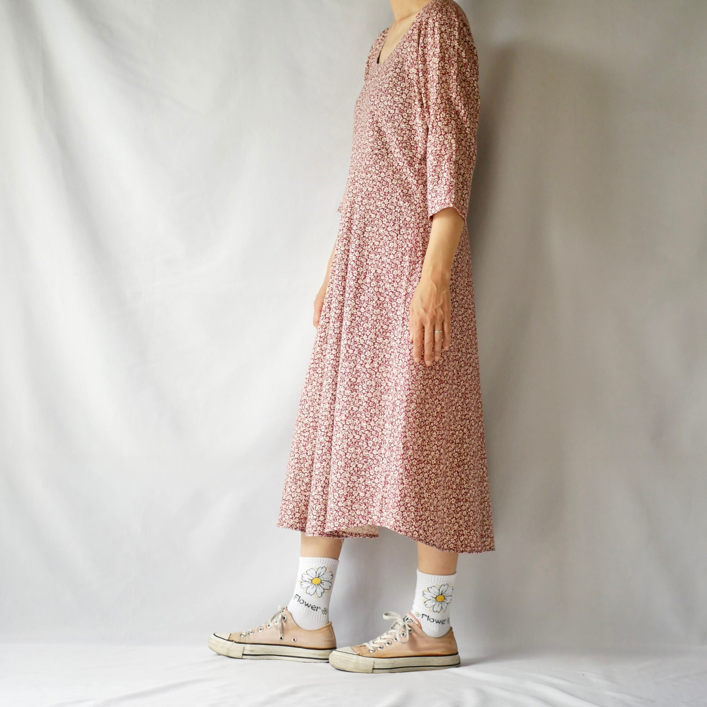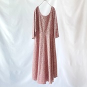 Made in USA red floral rayon onepiece アメリカ製赤小花柄レーヨン長袖ワンピース