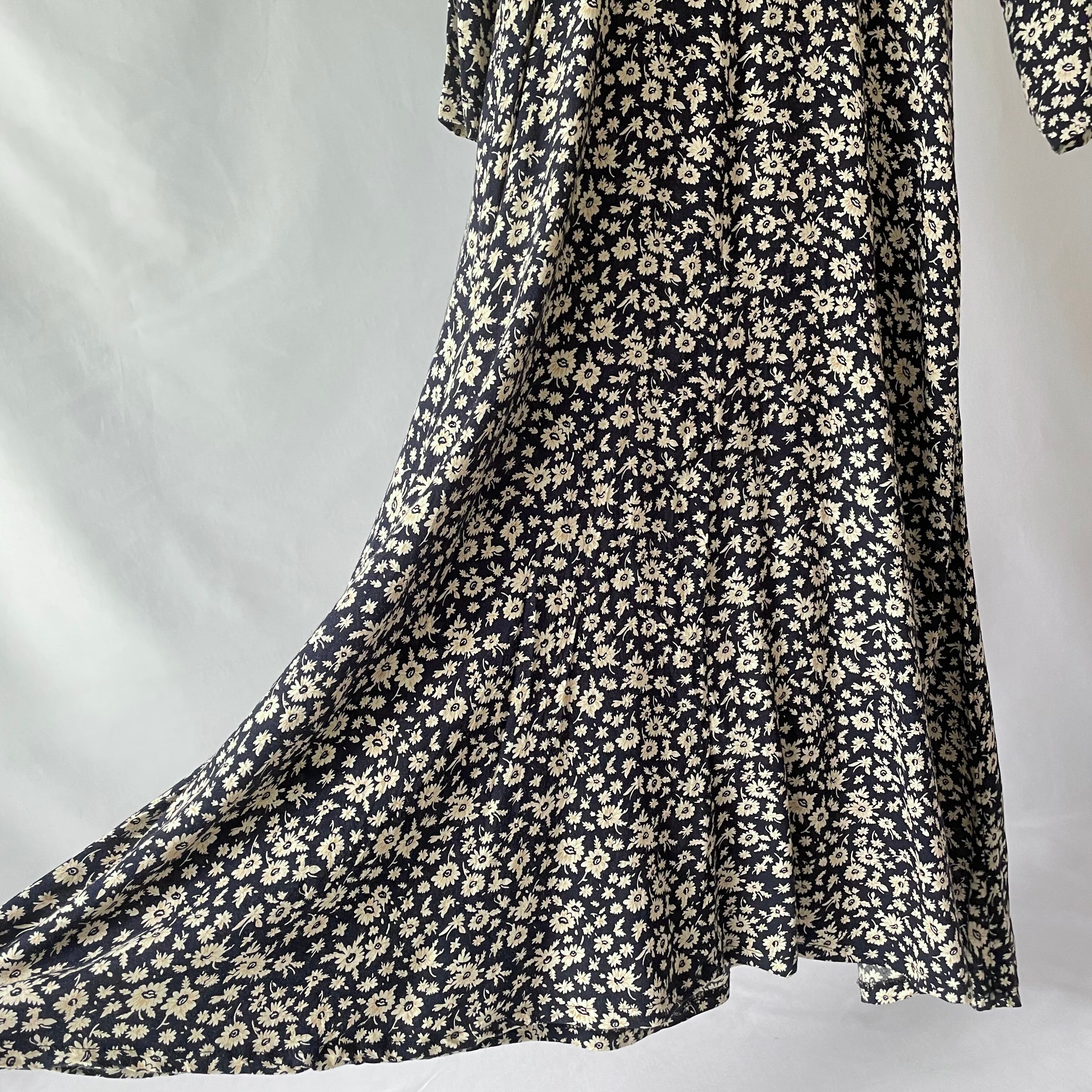 Black floral rayon maxi onepiece 黒花柄レーヨンワンピース