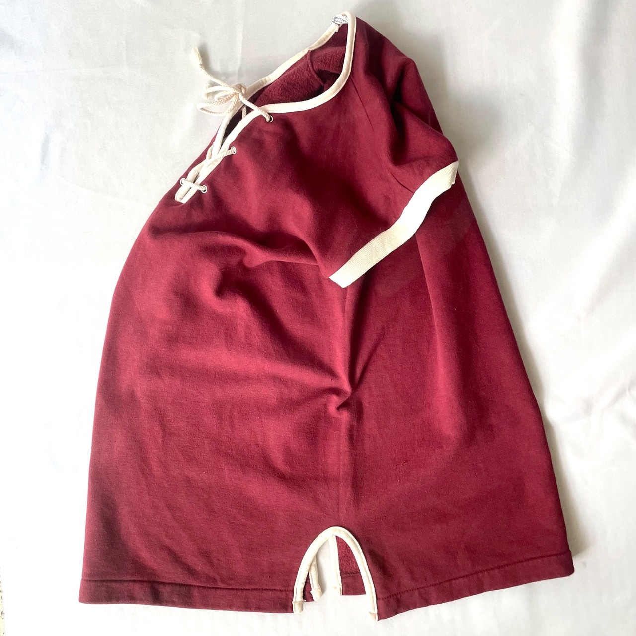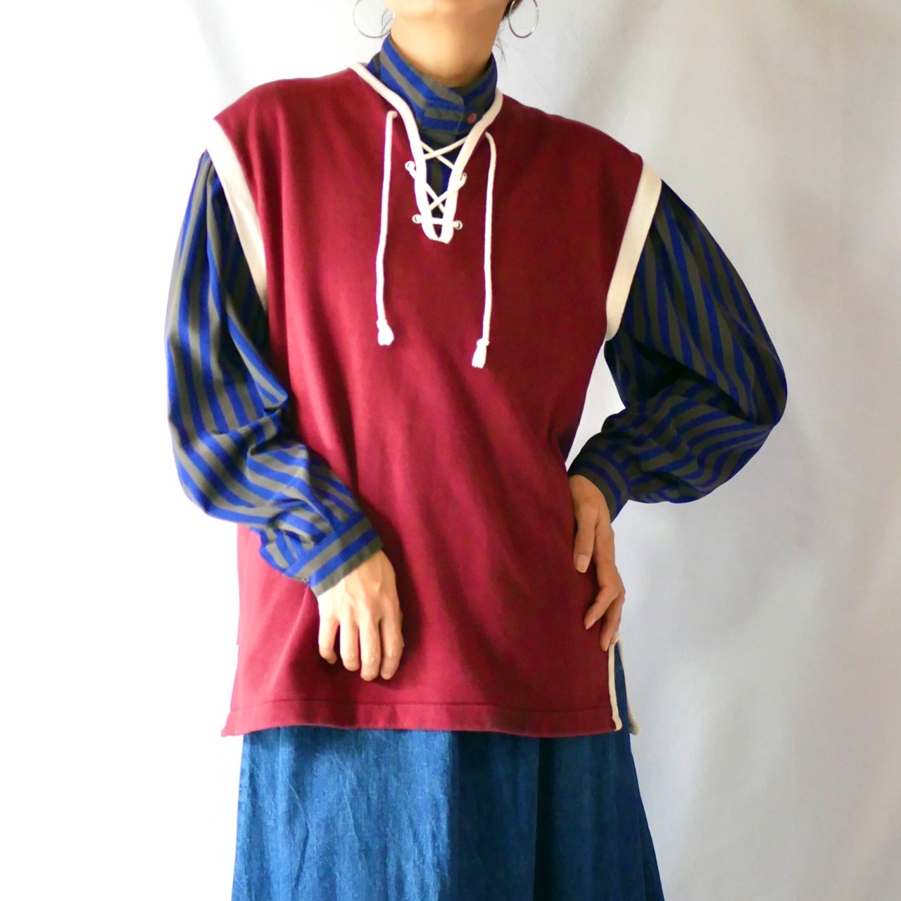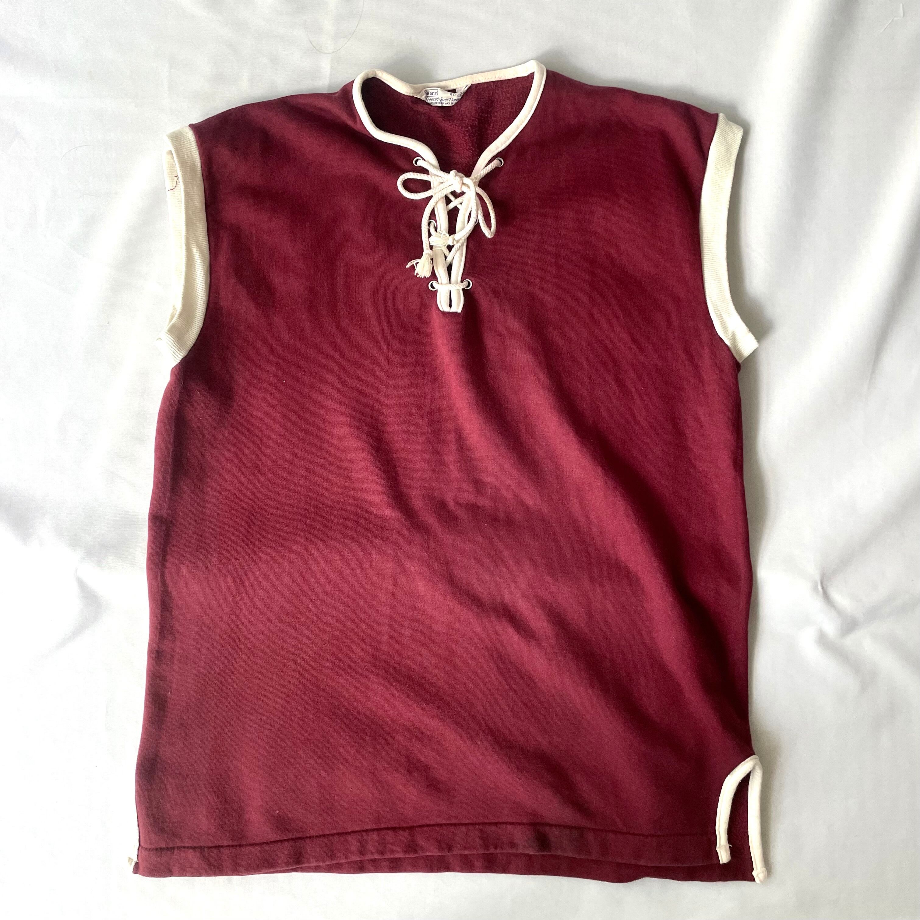 ネックのレースアップやサイドスリットパイピングなどのディティールがヴィンテージらしい 70sシアーズ スウェットベストです。