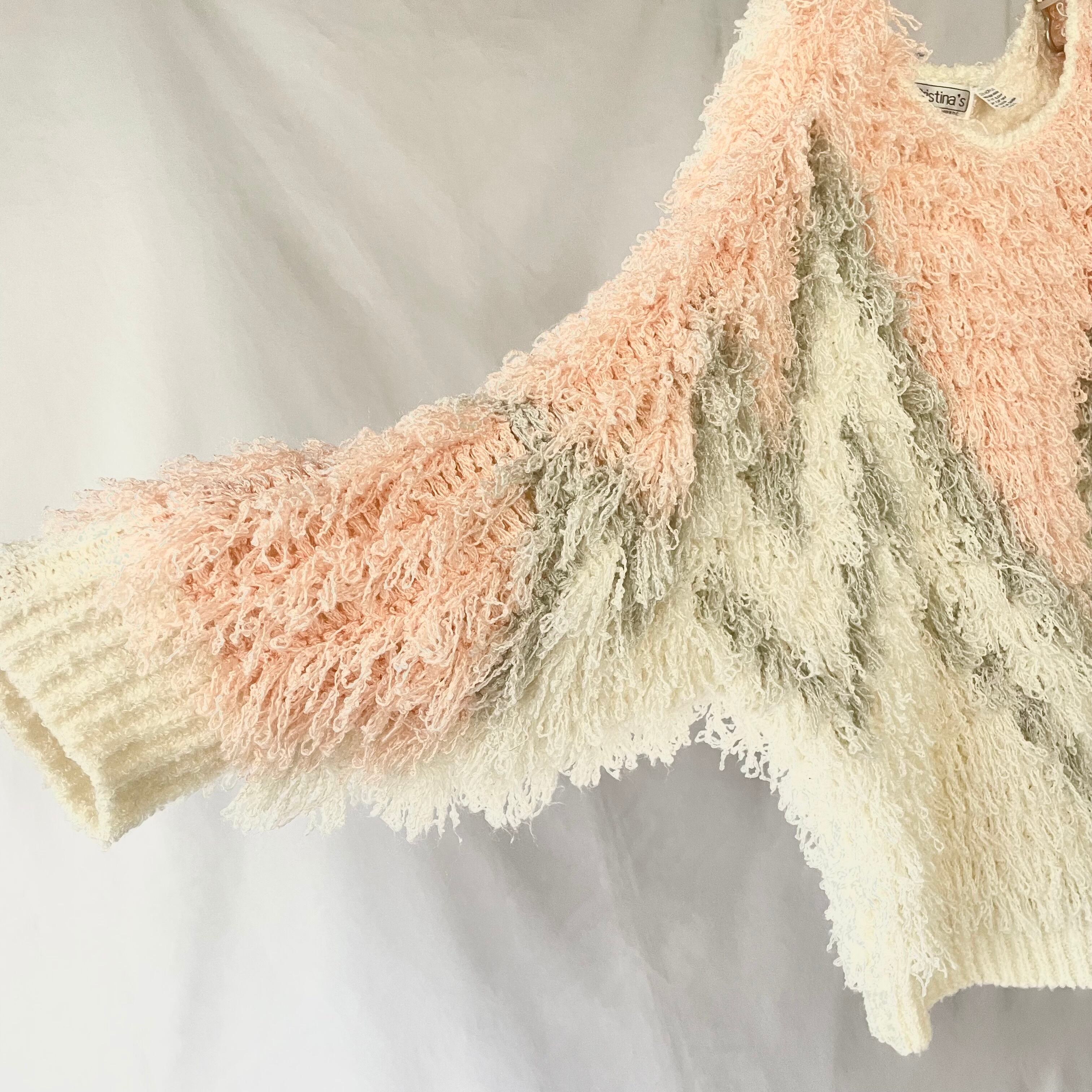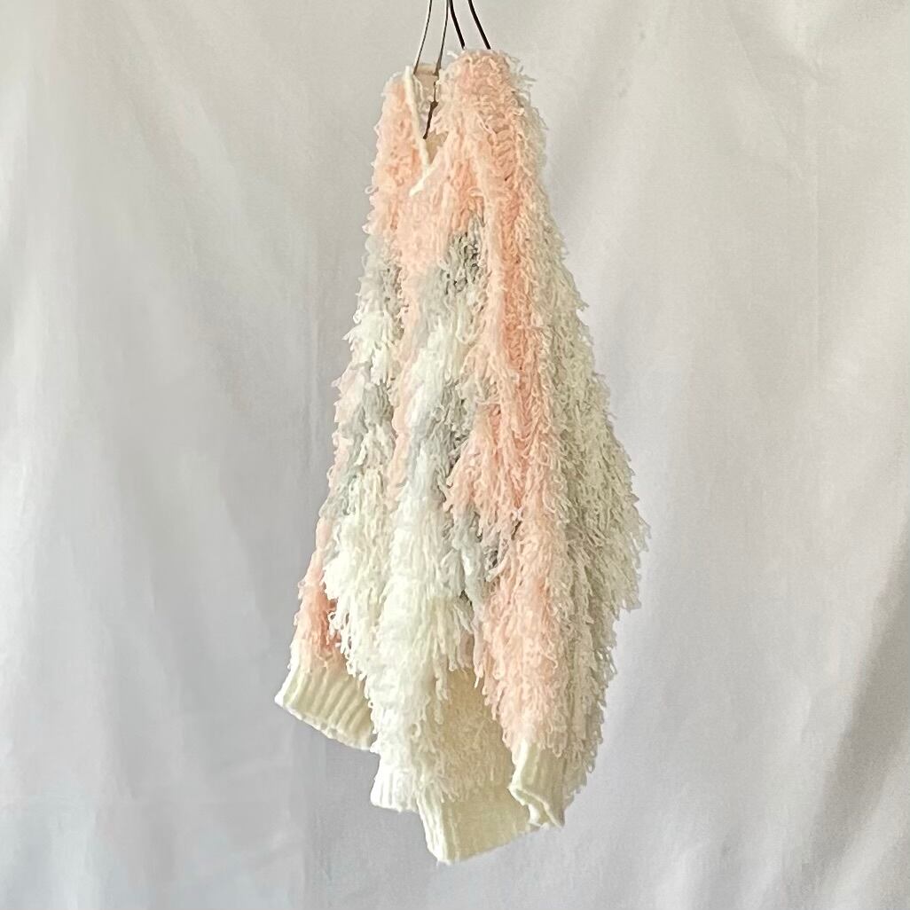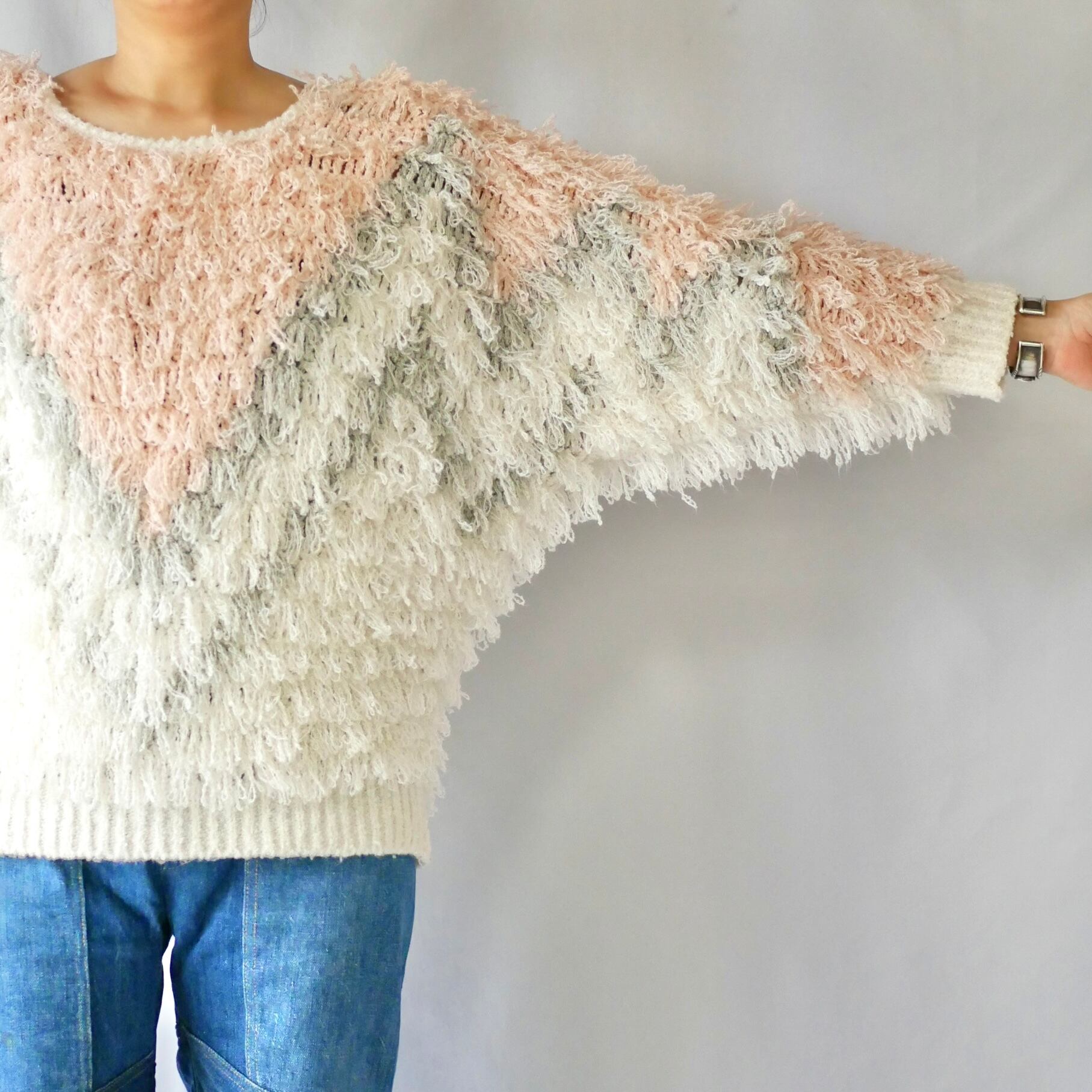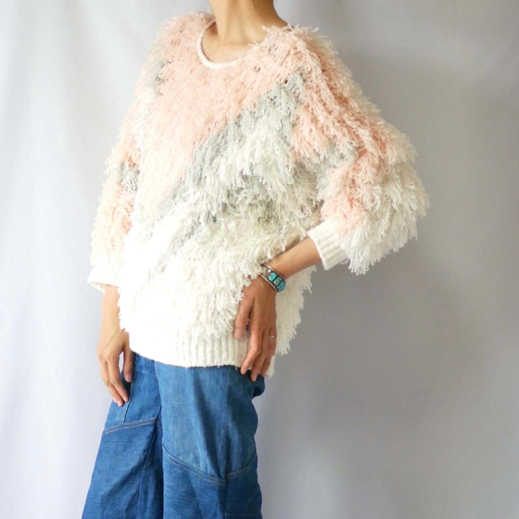 80s vintage white pink grey volume loop knit 白ピンクグレーボリュームループニット