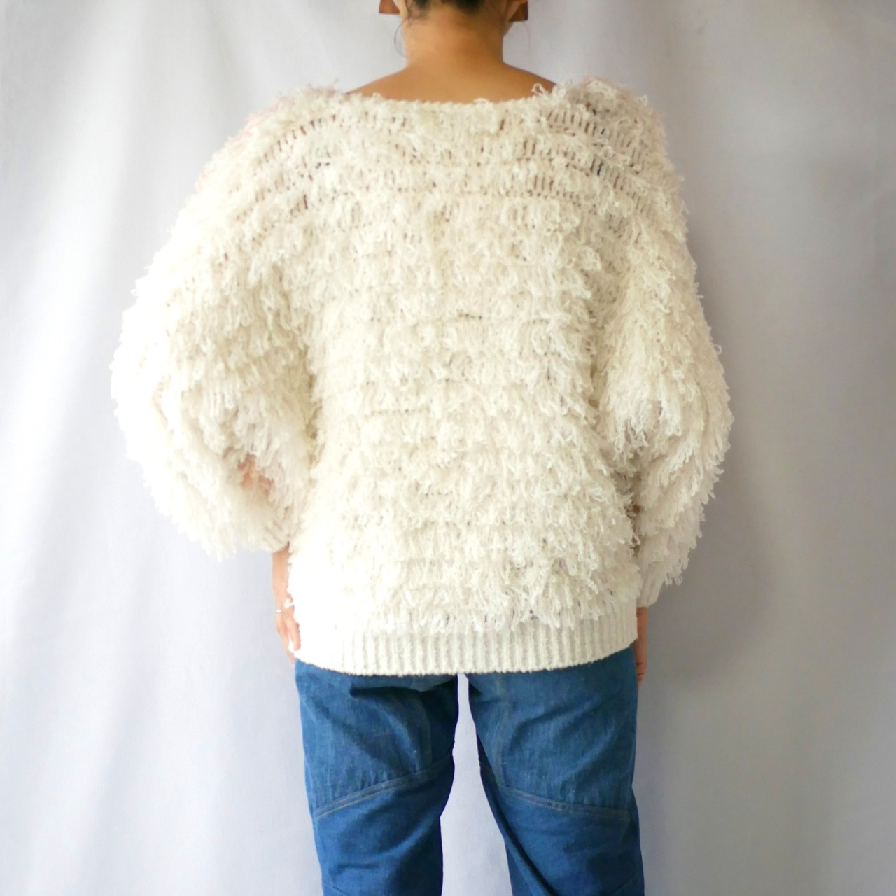 もしゃもしゃボリューミーな毛足の長い80sヴィンテージループニットです。