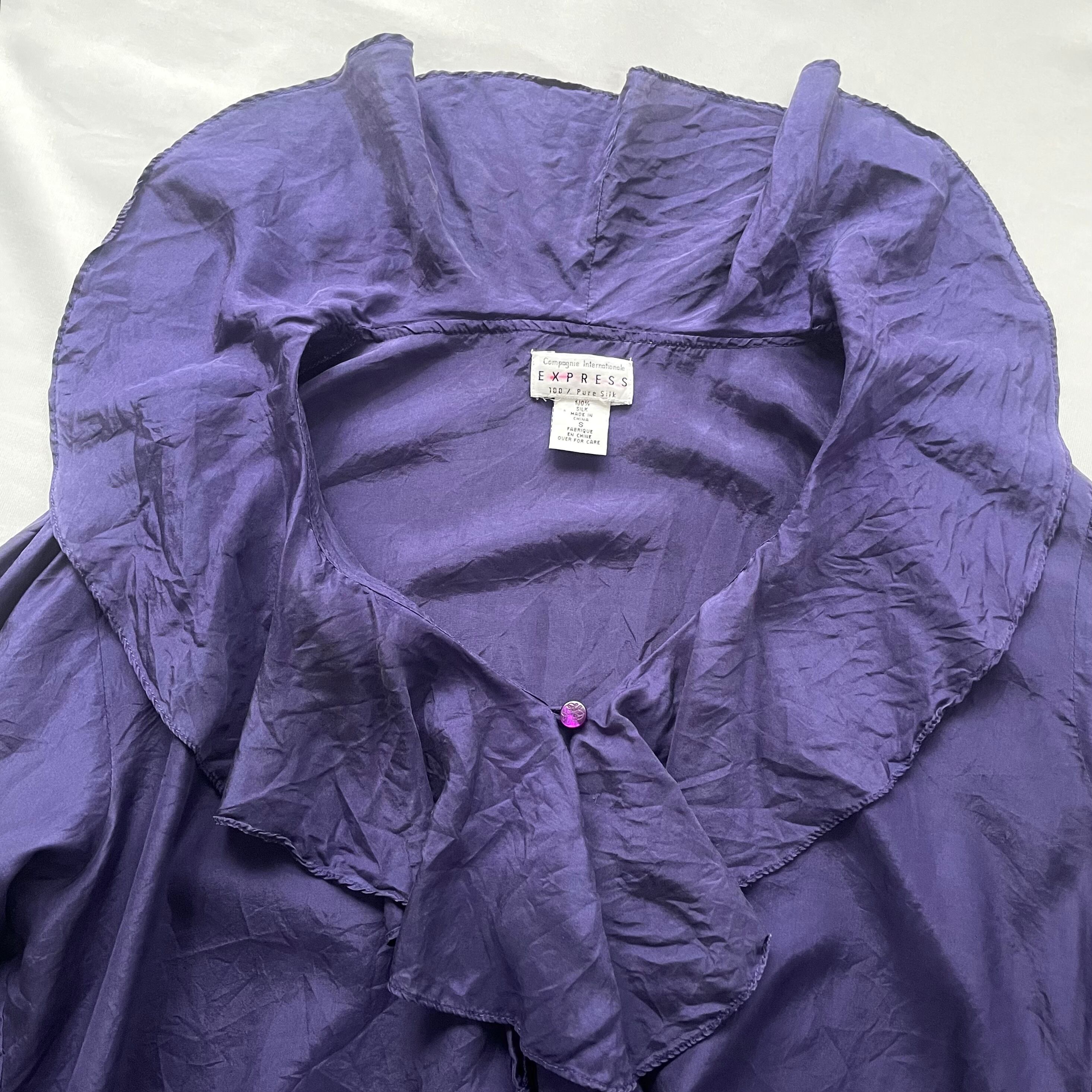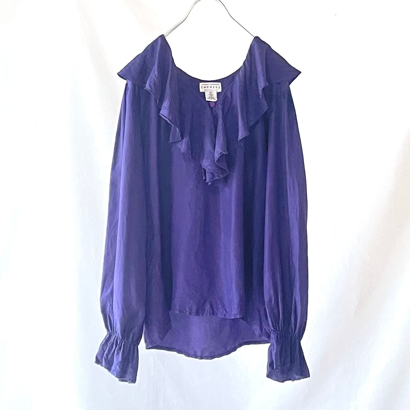 EXPRESS purple pure slik 100% frill blouse 紫シルクフリルブラウス