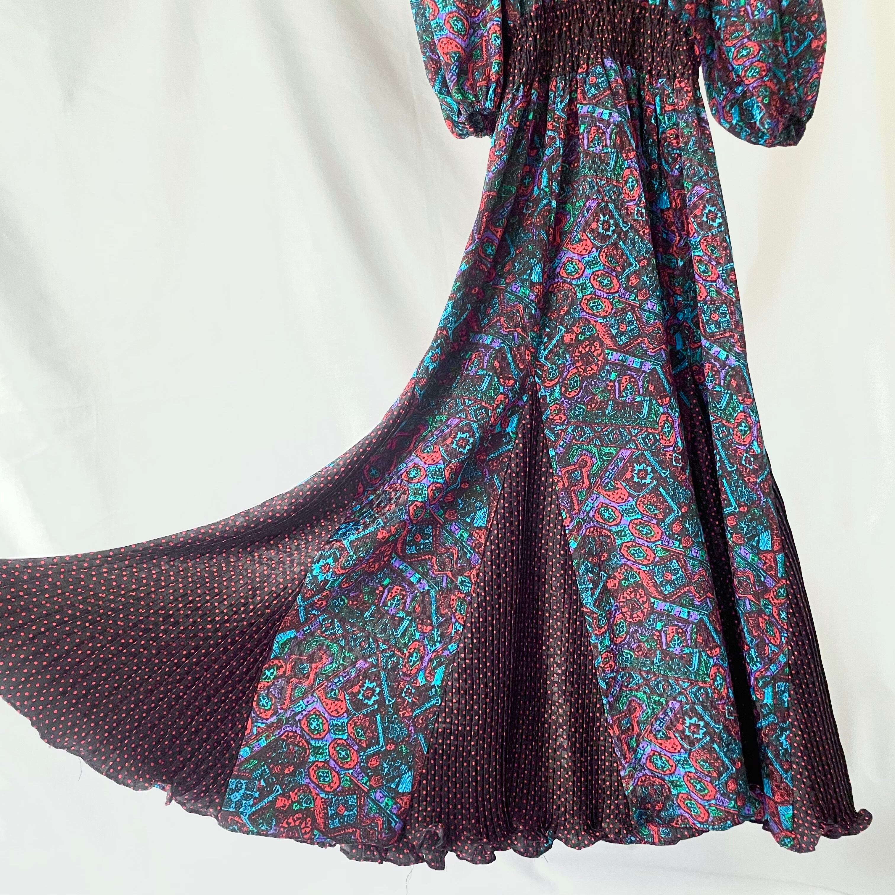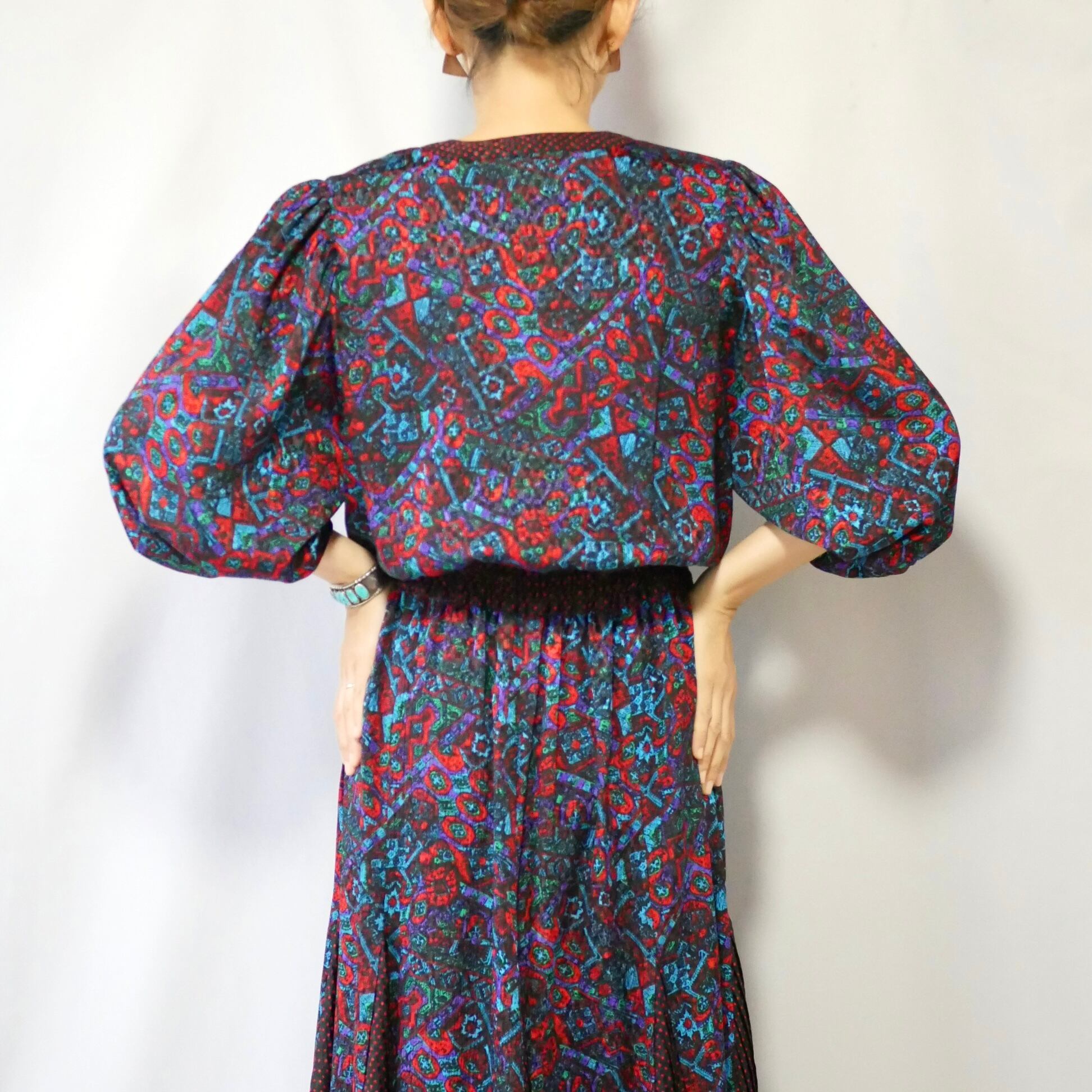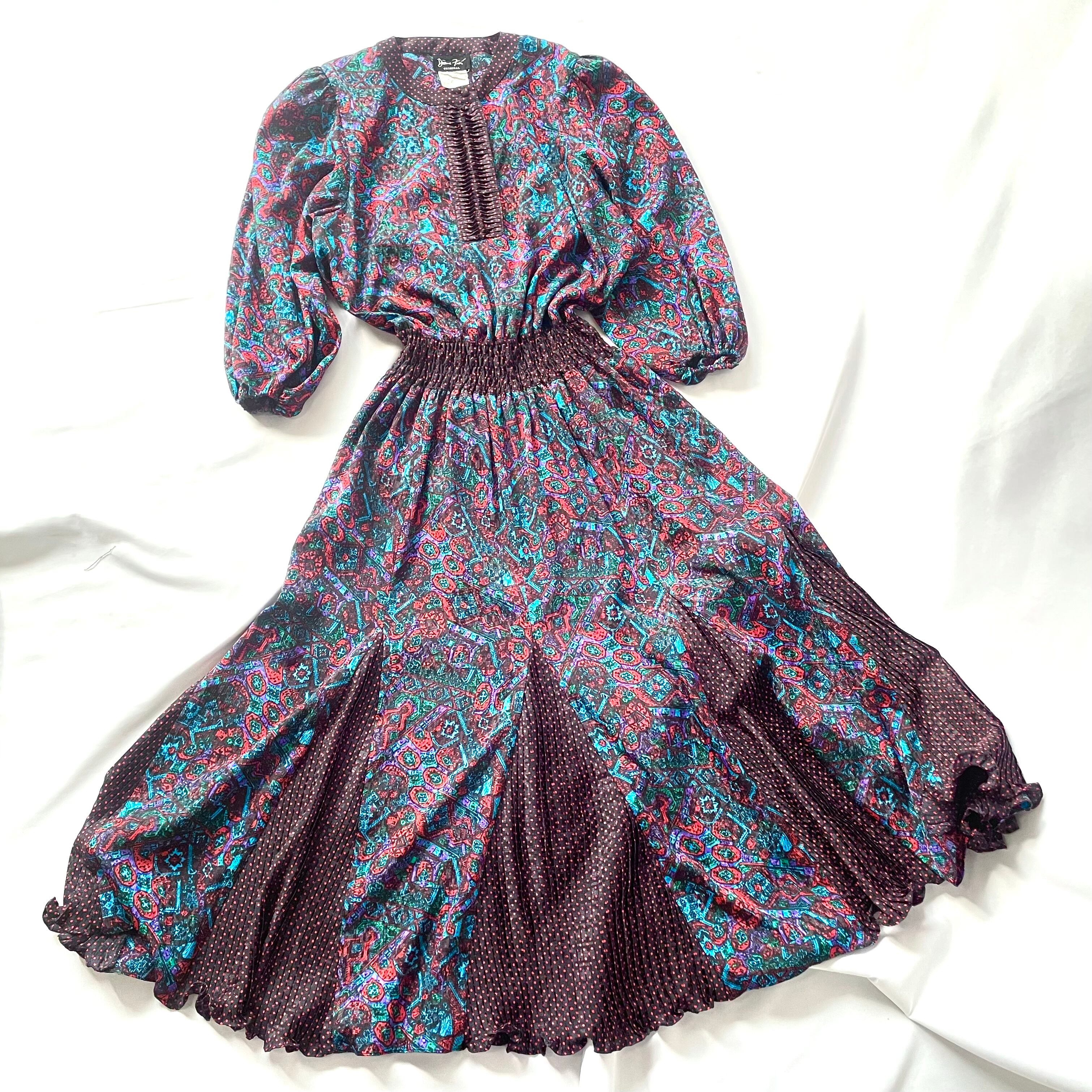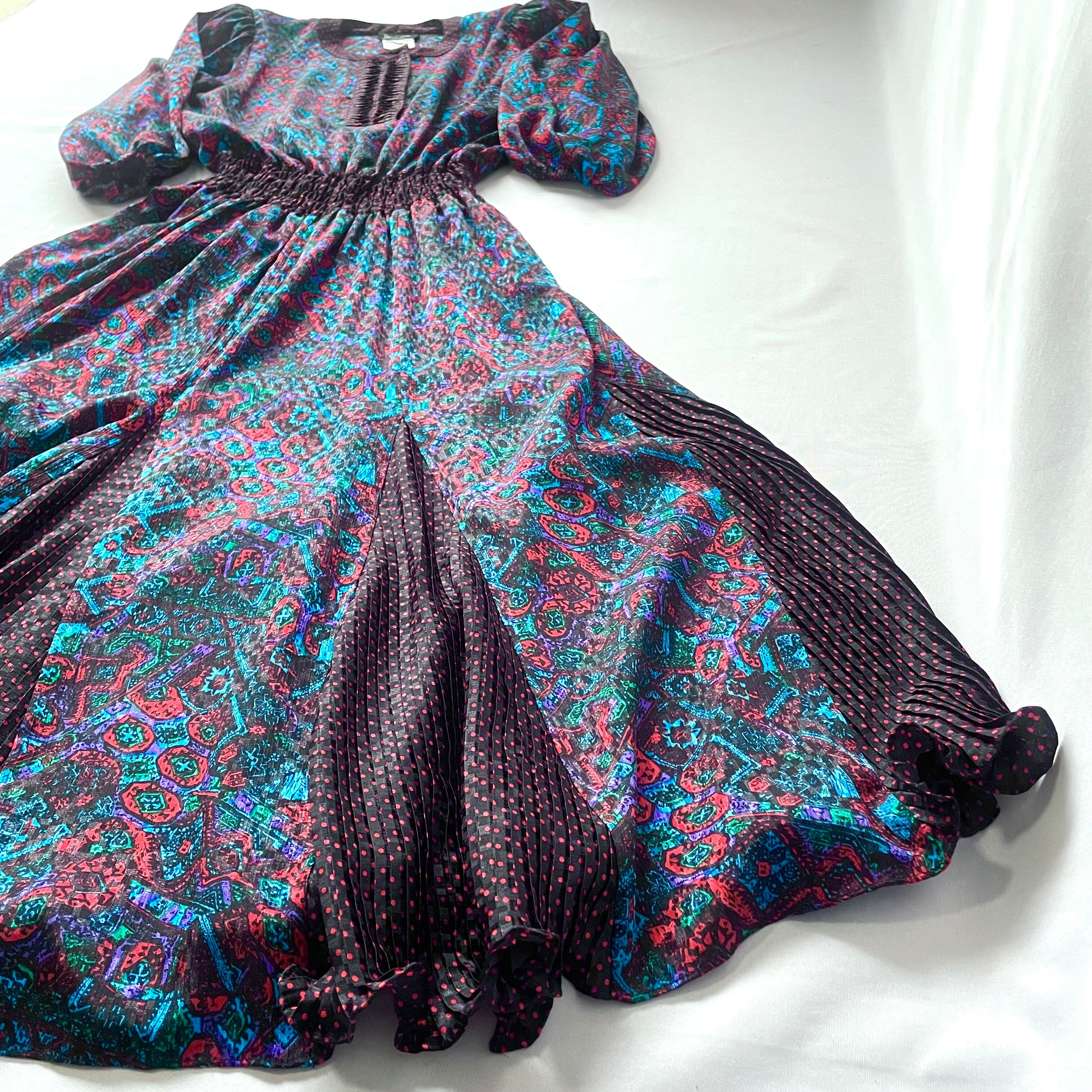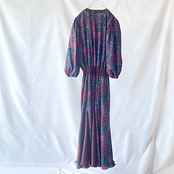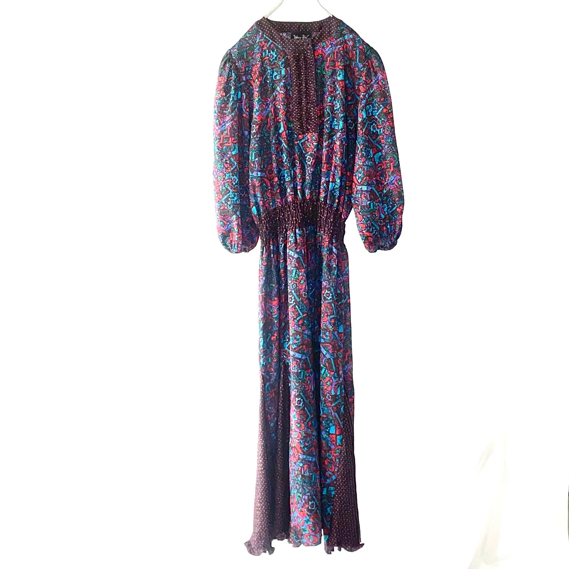 80s diane freis polyester dress ダイアンフレイス総柄長袖フレアワンピース