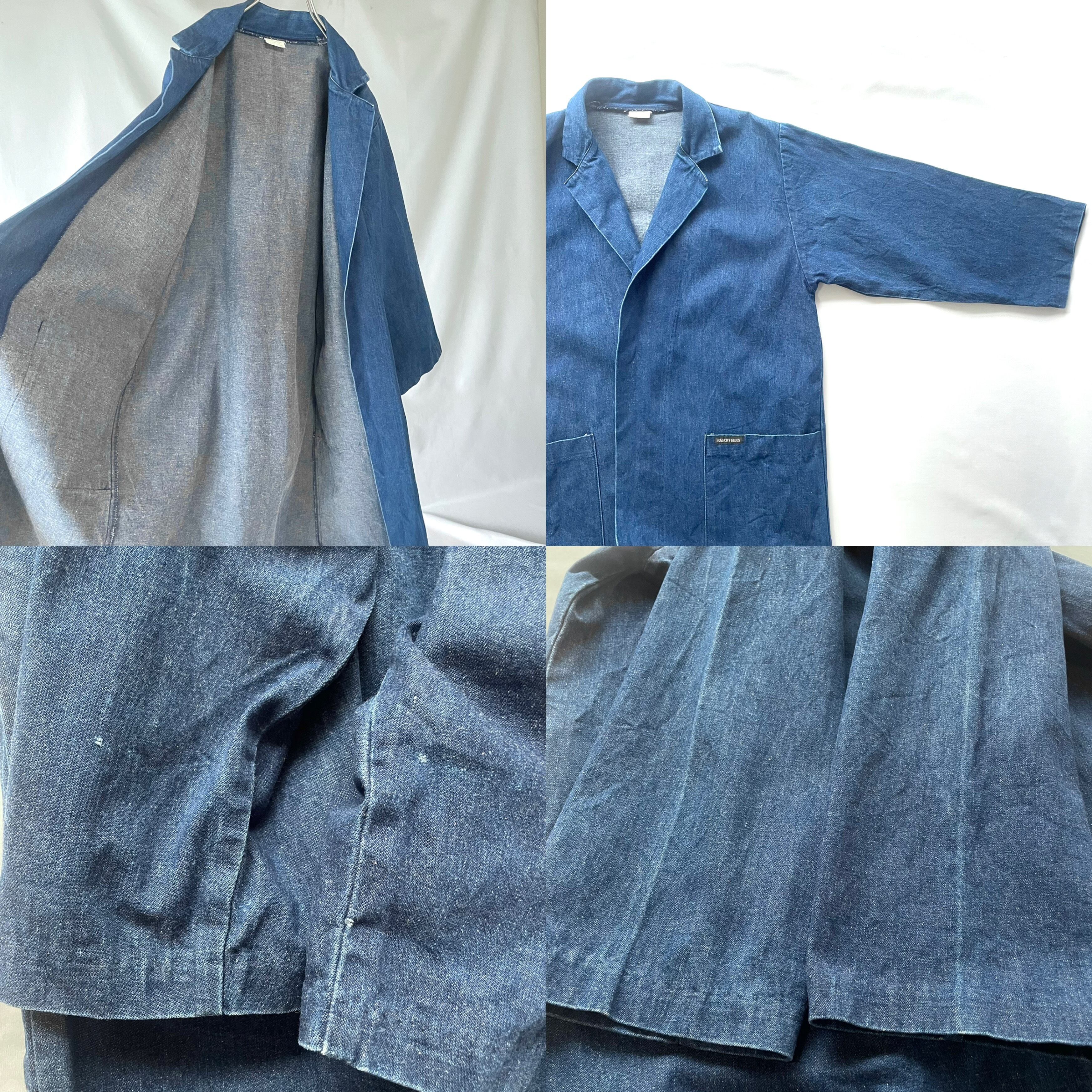 ゆるっと着られてストンとしたシルエットが良い、Los Angeles発デニムブランドrag city blusのヴィンテージ濃紺デニムロングコートです。