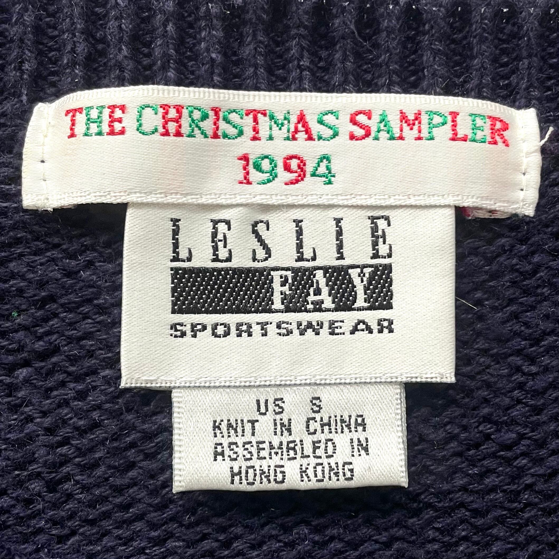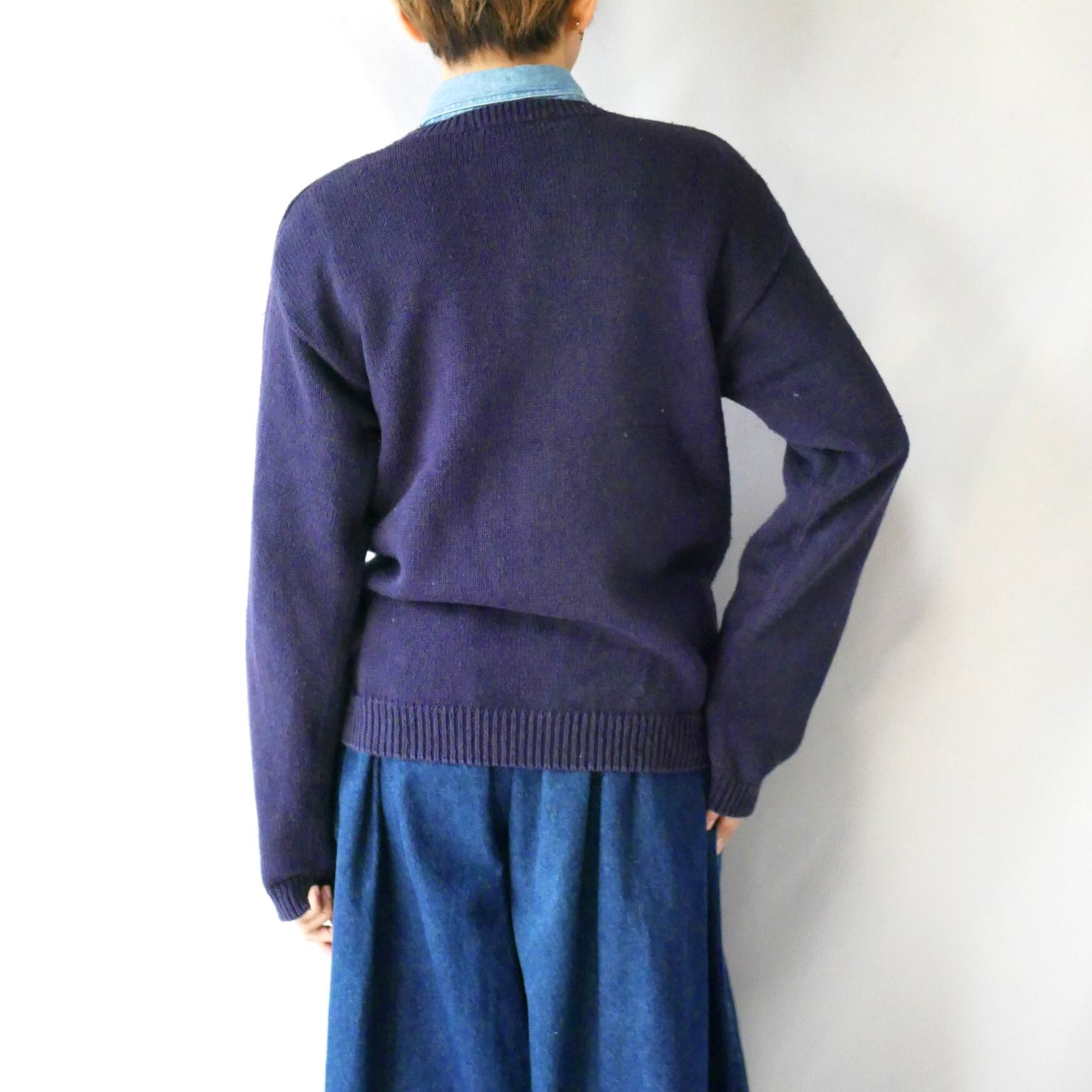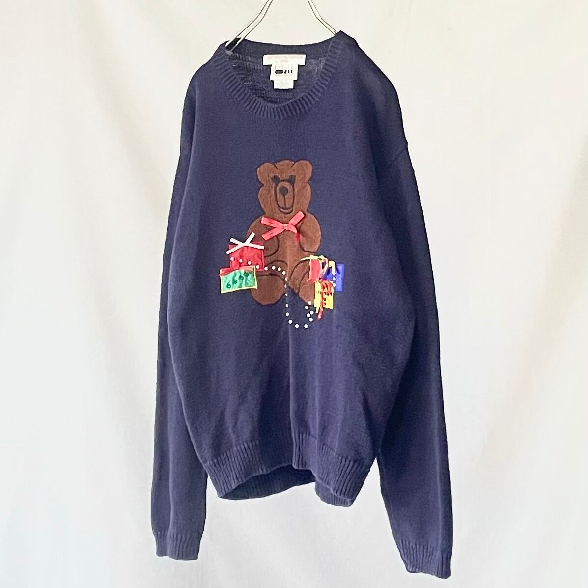 90s Leslie fay navy bear ribbon beads knit ネイビー立体りぼんビーズクマニット