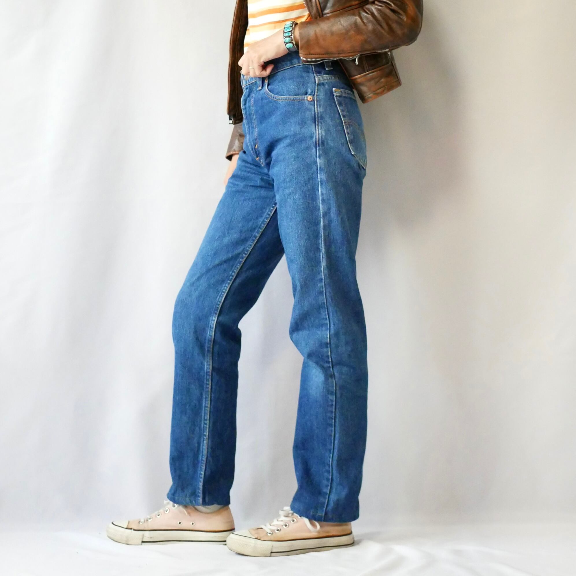 90年代アメリカ製リーバイス505デニムパンツです。太ももから裾にかけて少しずつ細くなっていくテーパードシルエットと、少し緩めに設定されたウエストが特徴の505。苦しくなく、足を細く長く見せてくれます。ボタン裏501