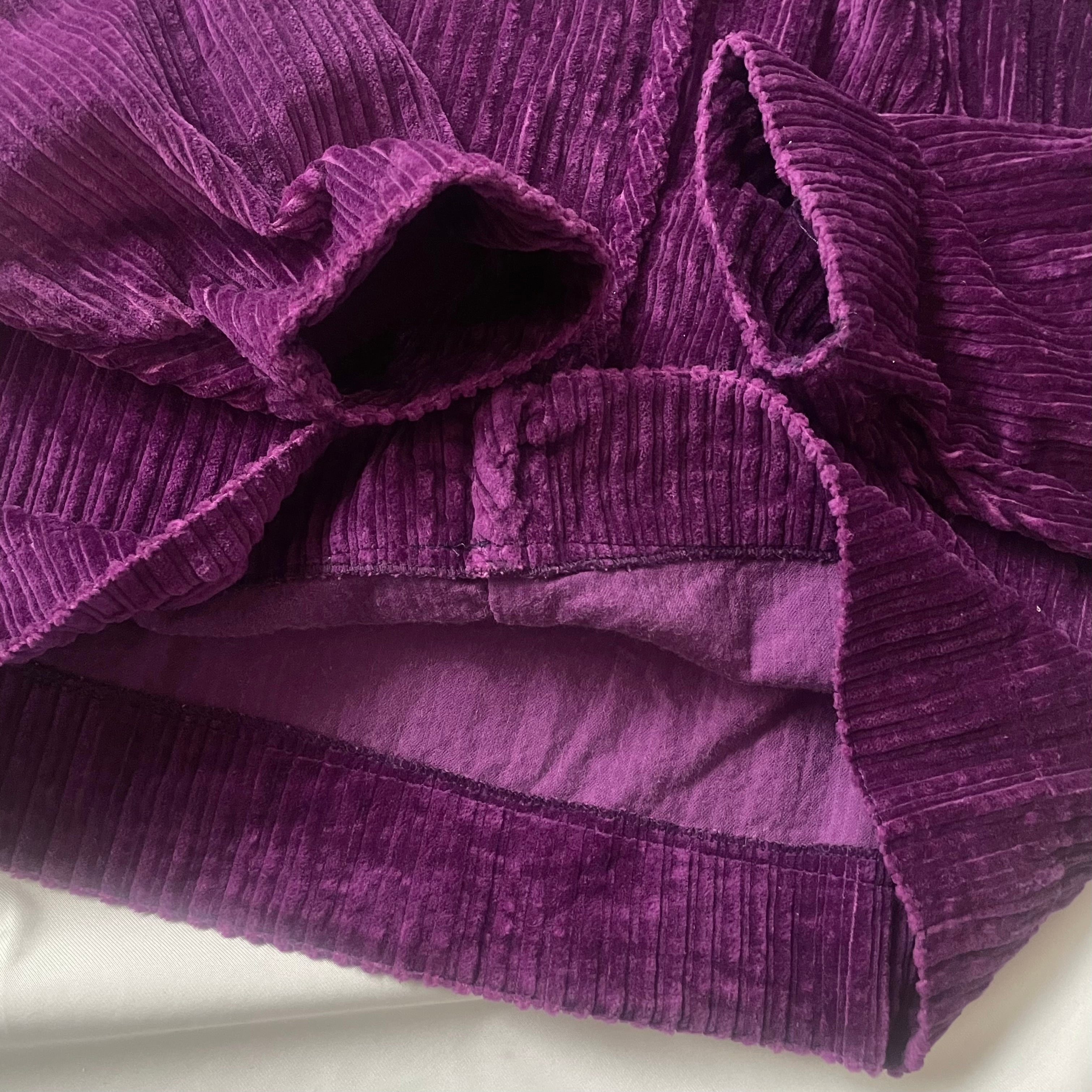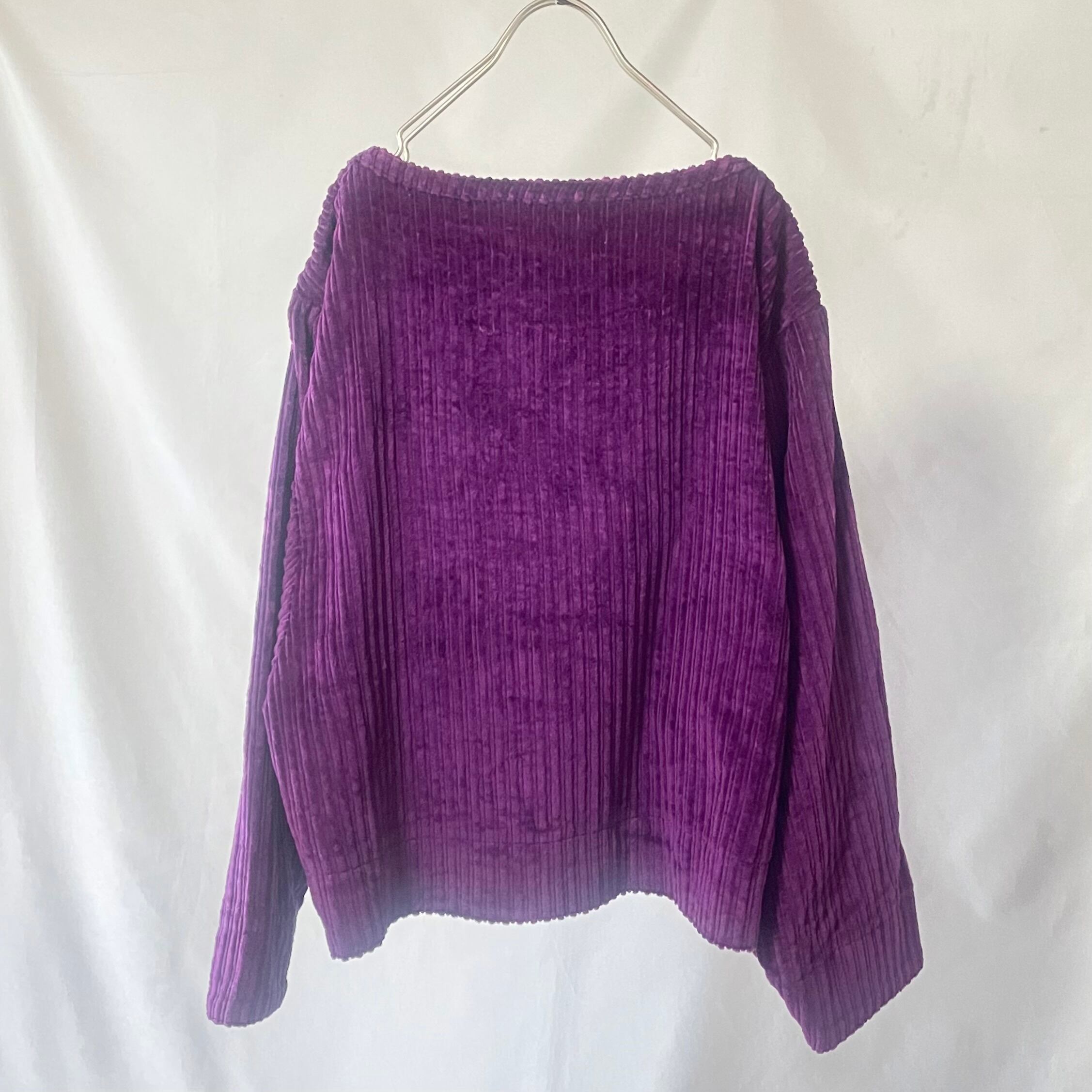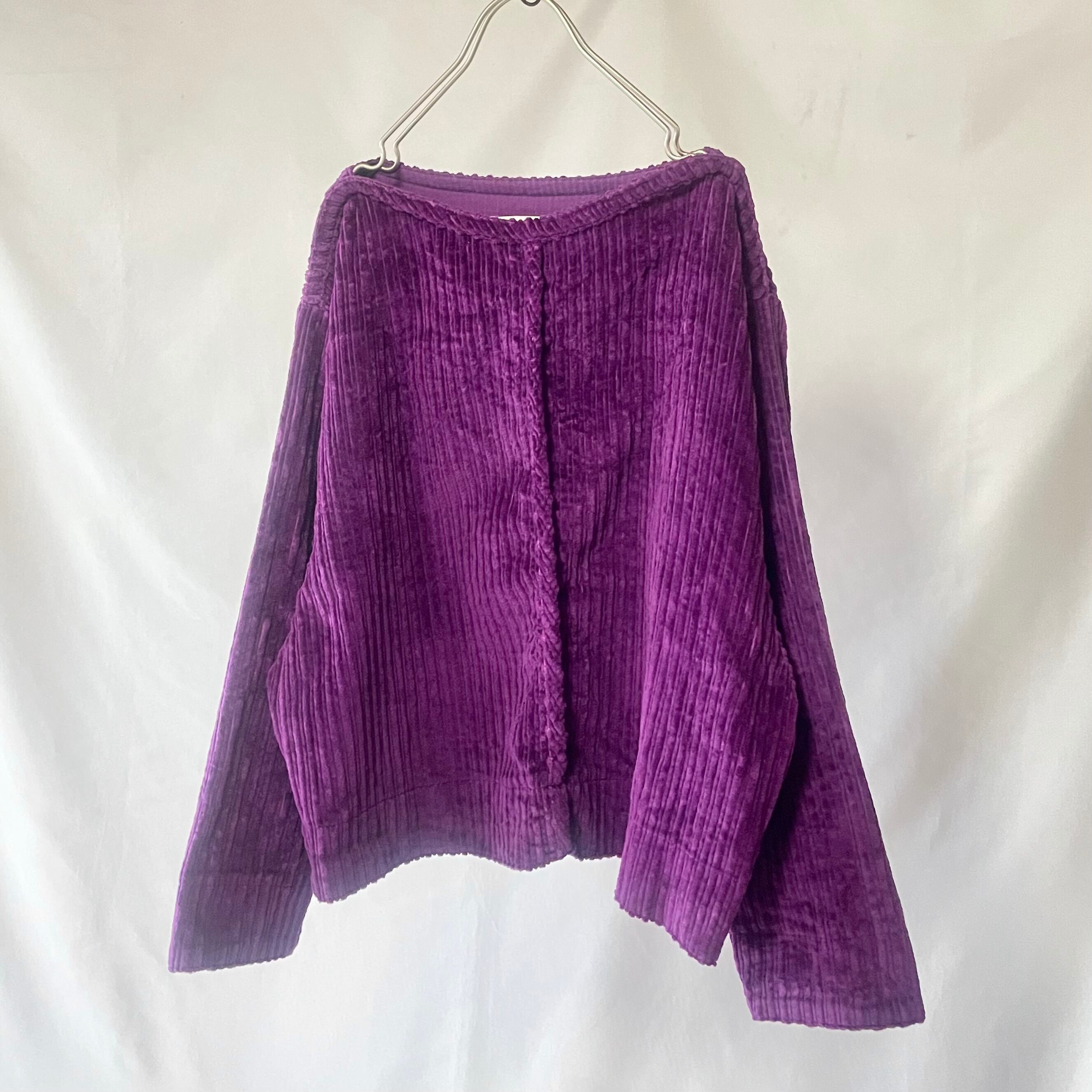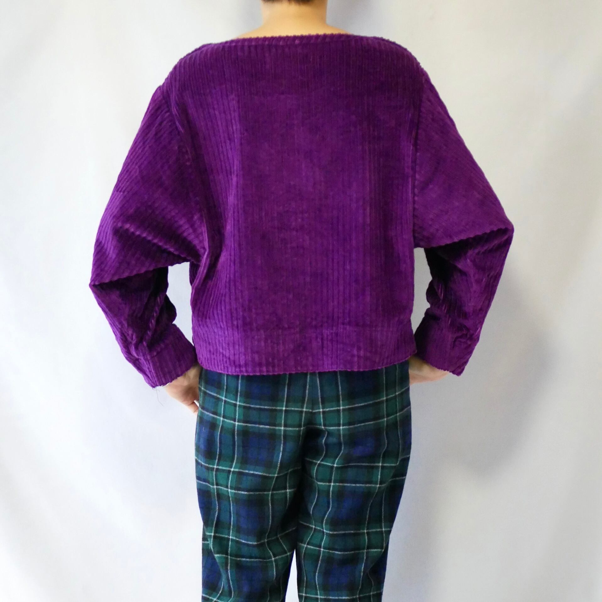 発色の良いパープルの太畝コーデュロイ クロップド丈トップスです。