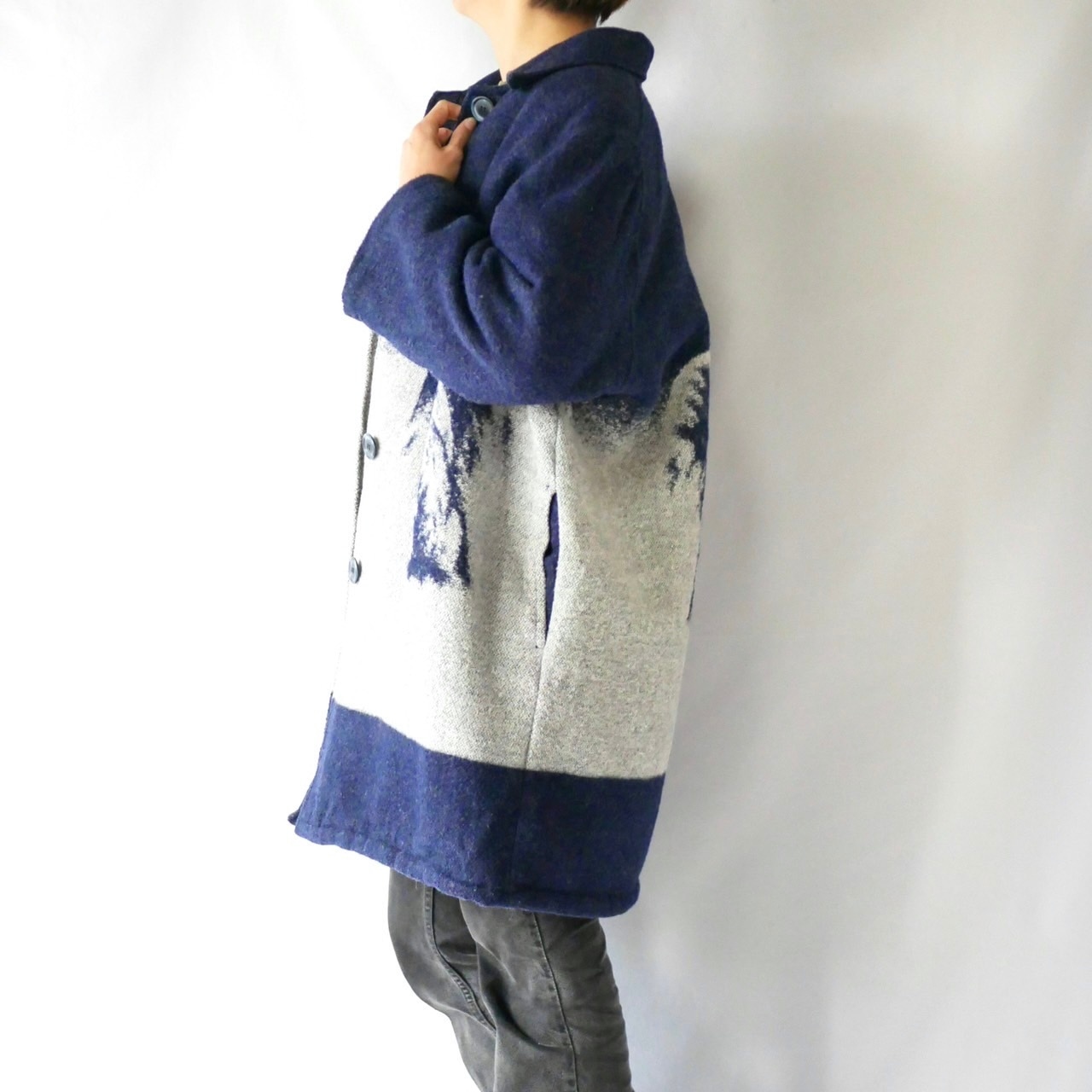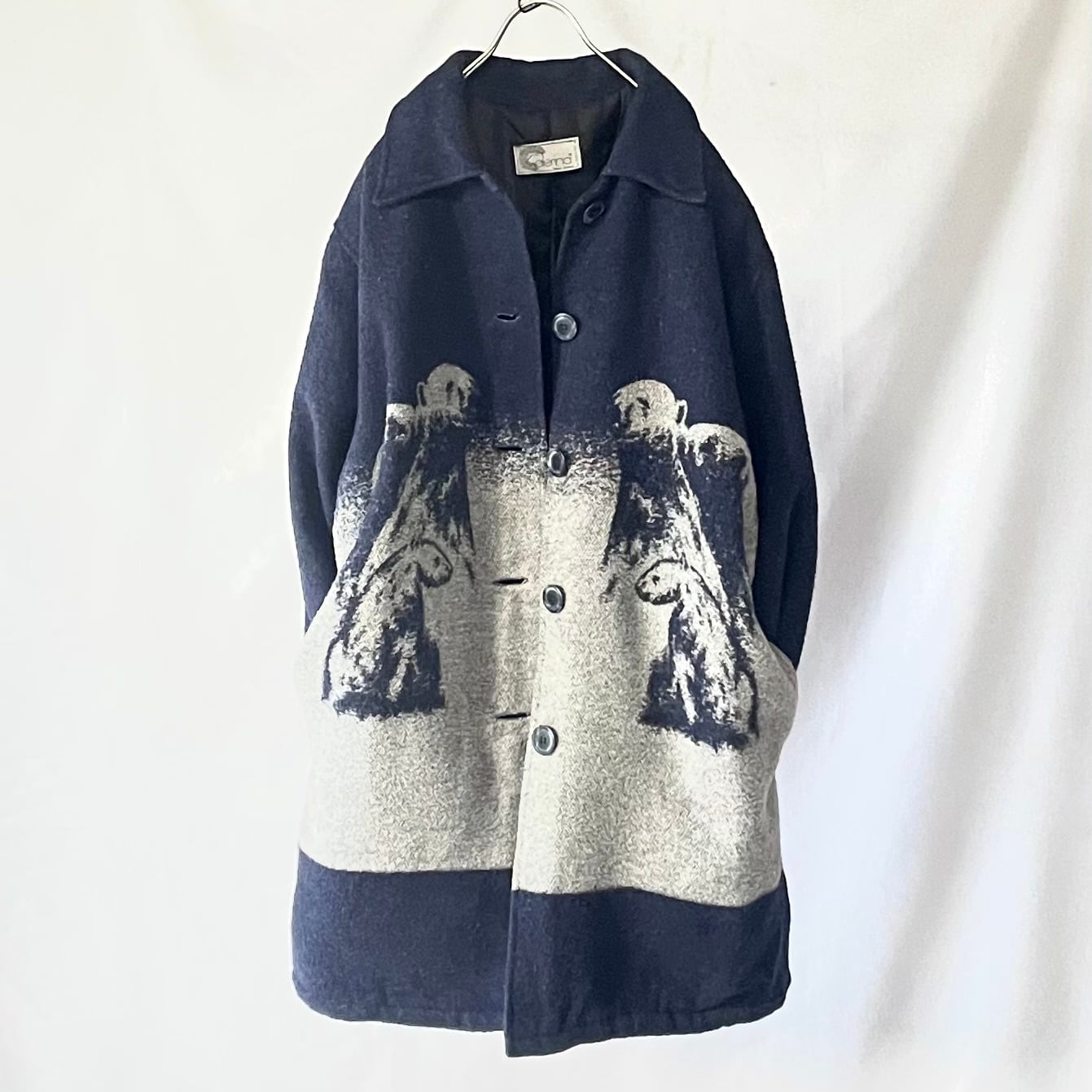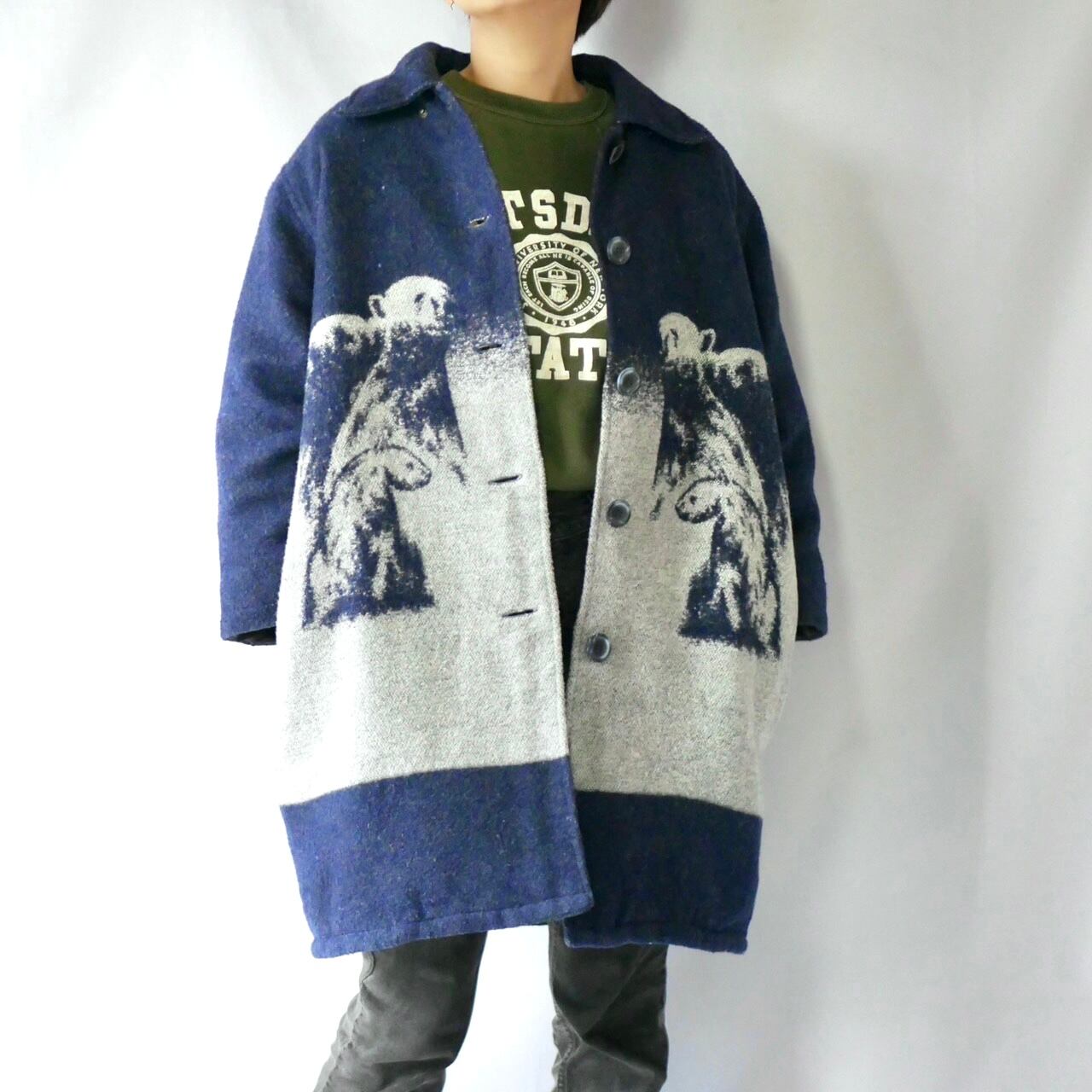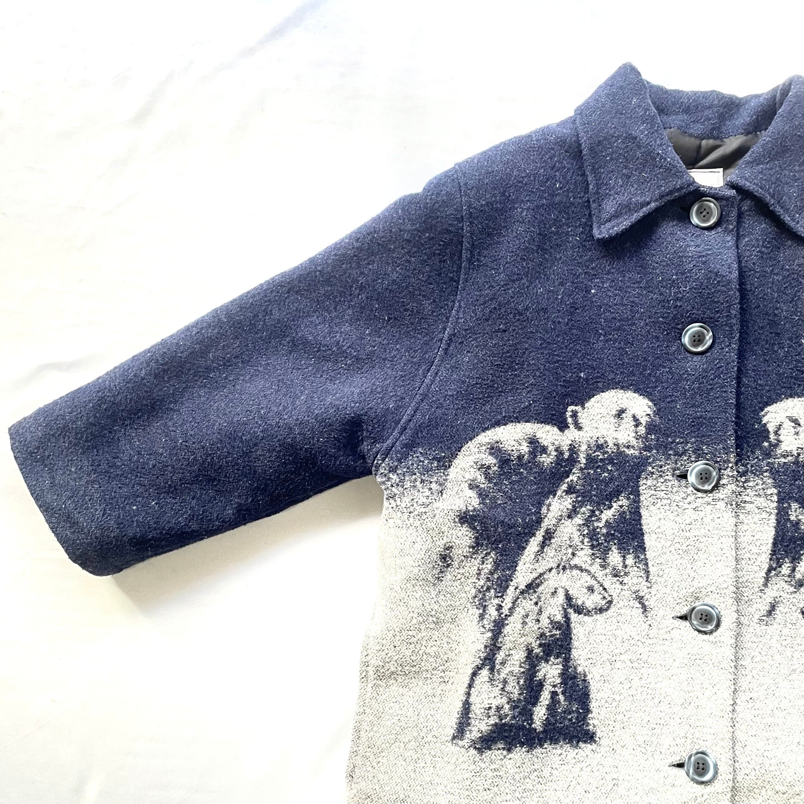 シロクマ柄が可愛い、軽くて暖かい中綿入りイタリア製ハーフコートです。ポケット付き