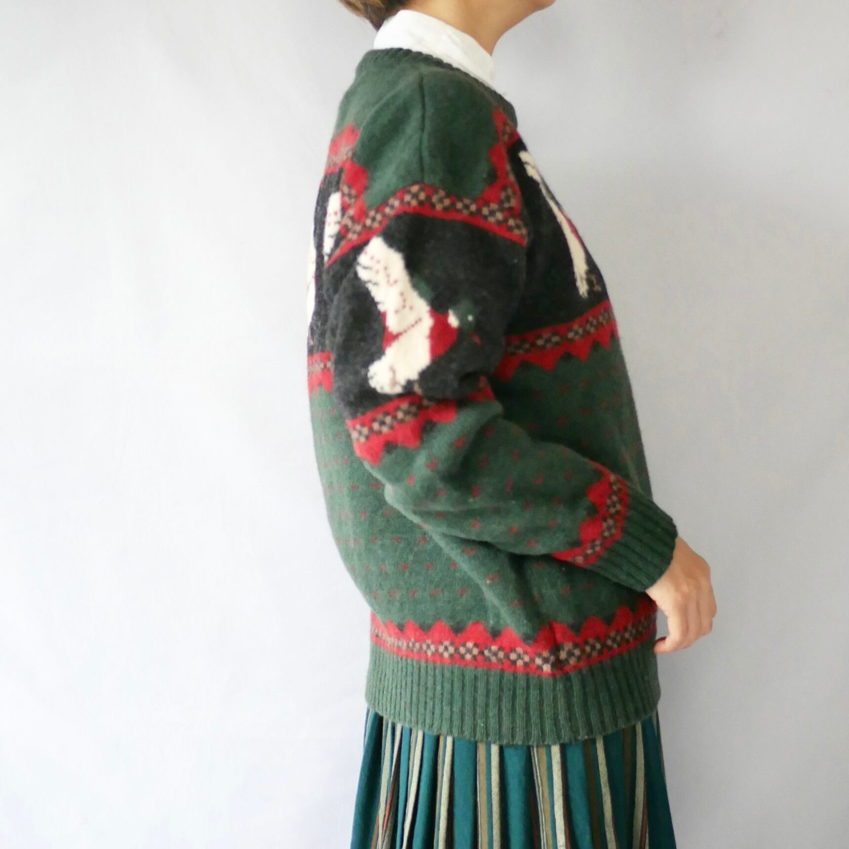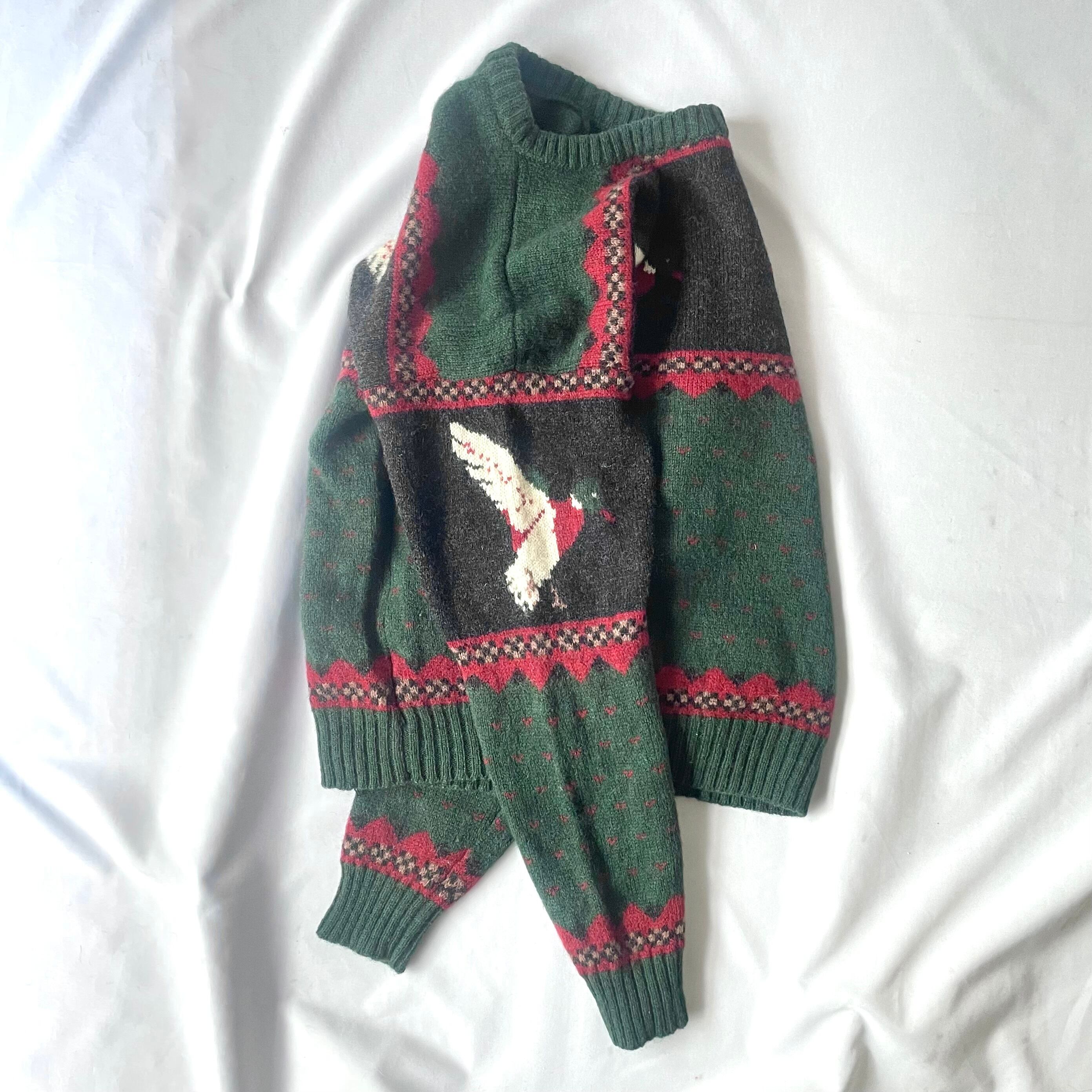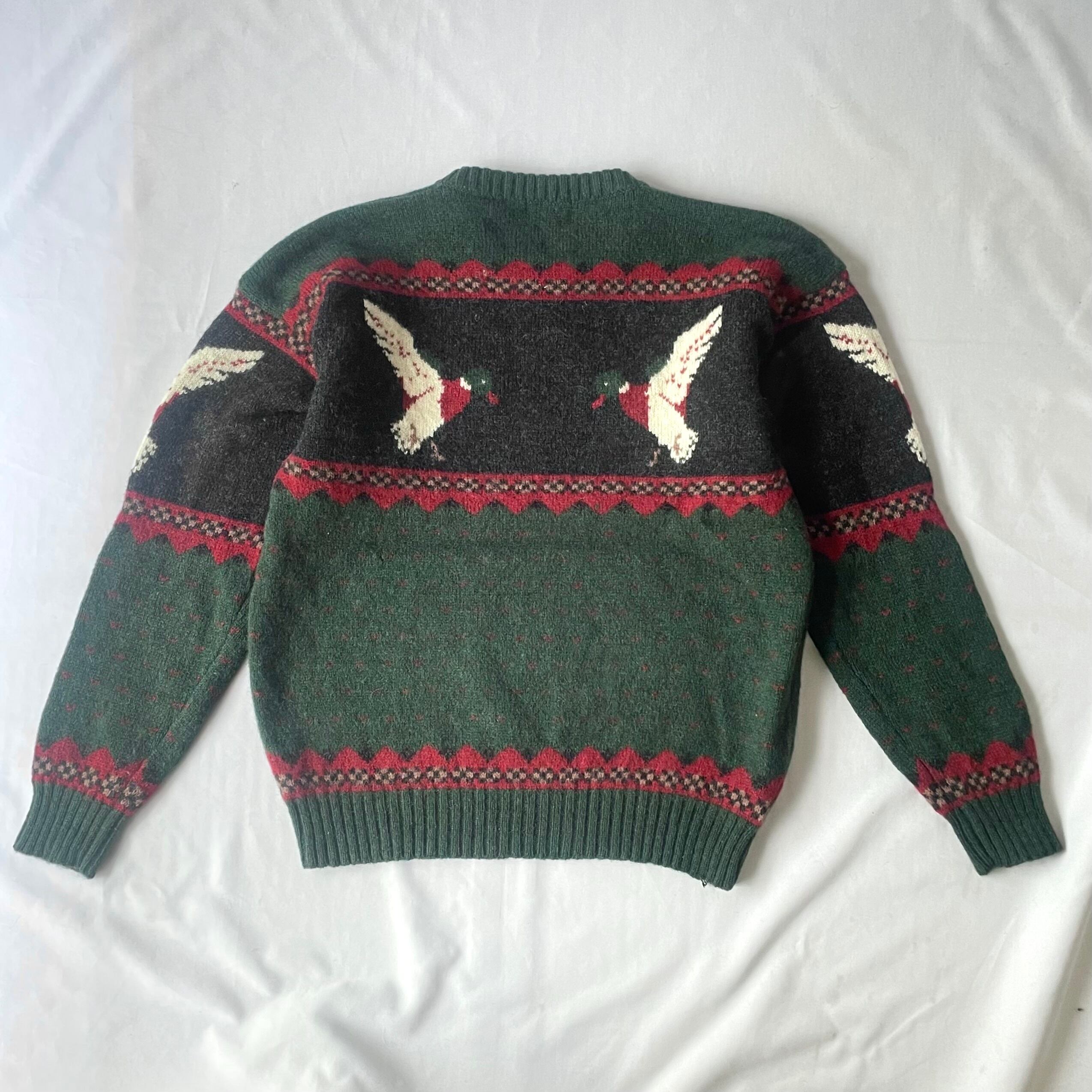 80s Woolrich green bird knit ウールリッチ鳥柄ニット