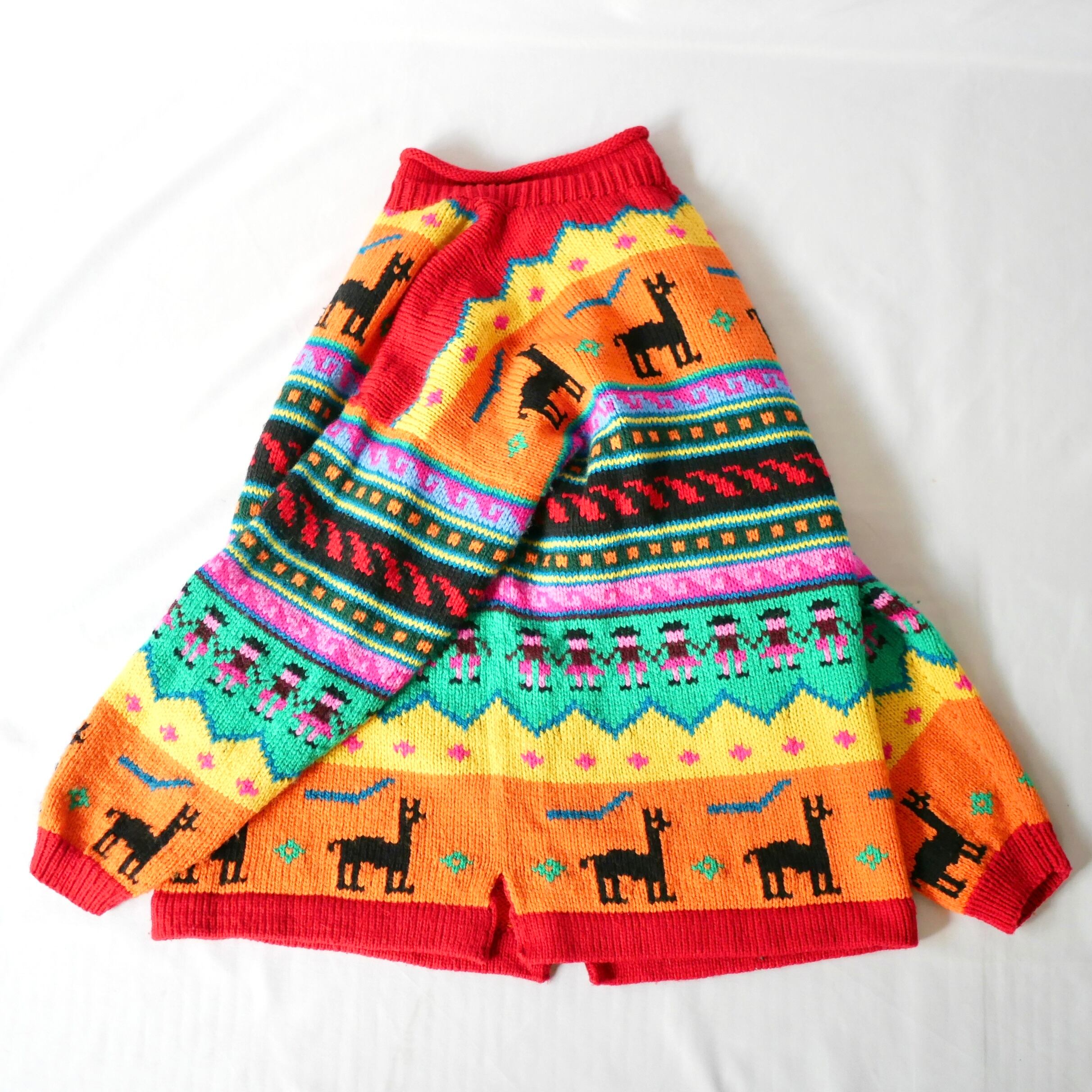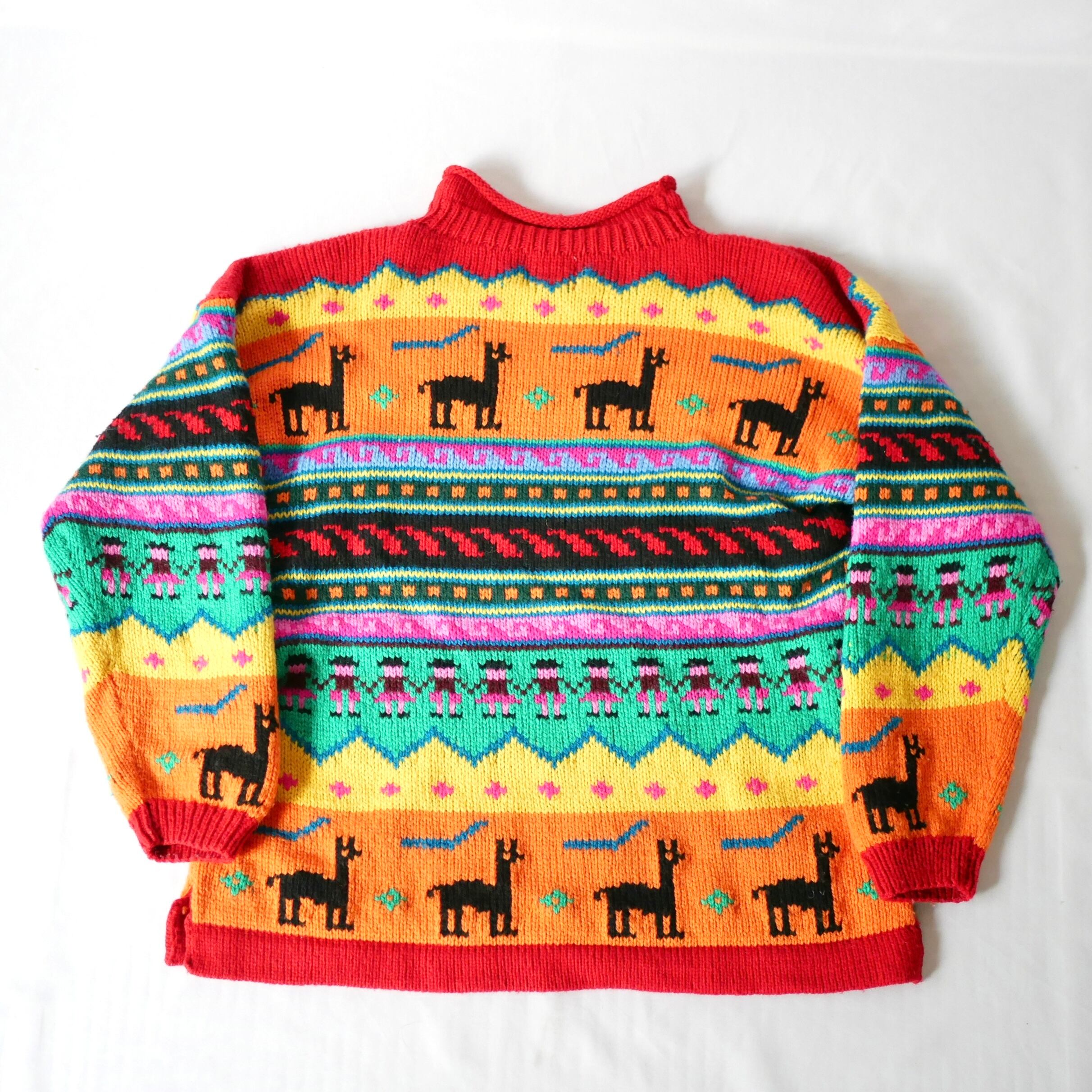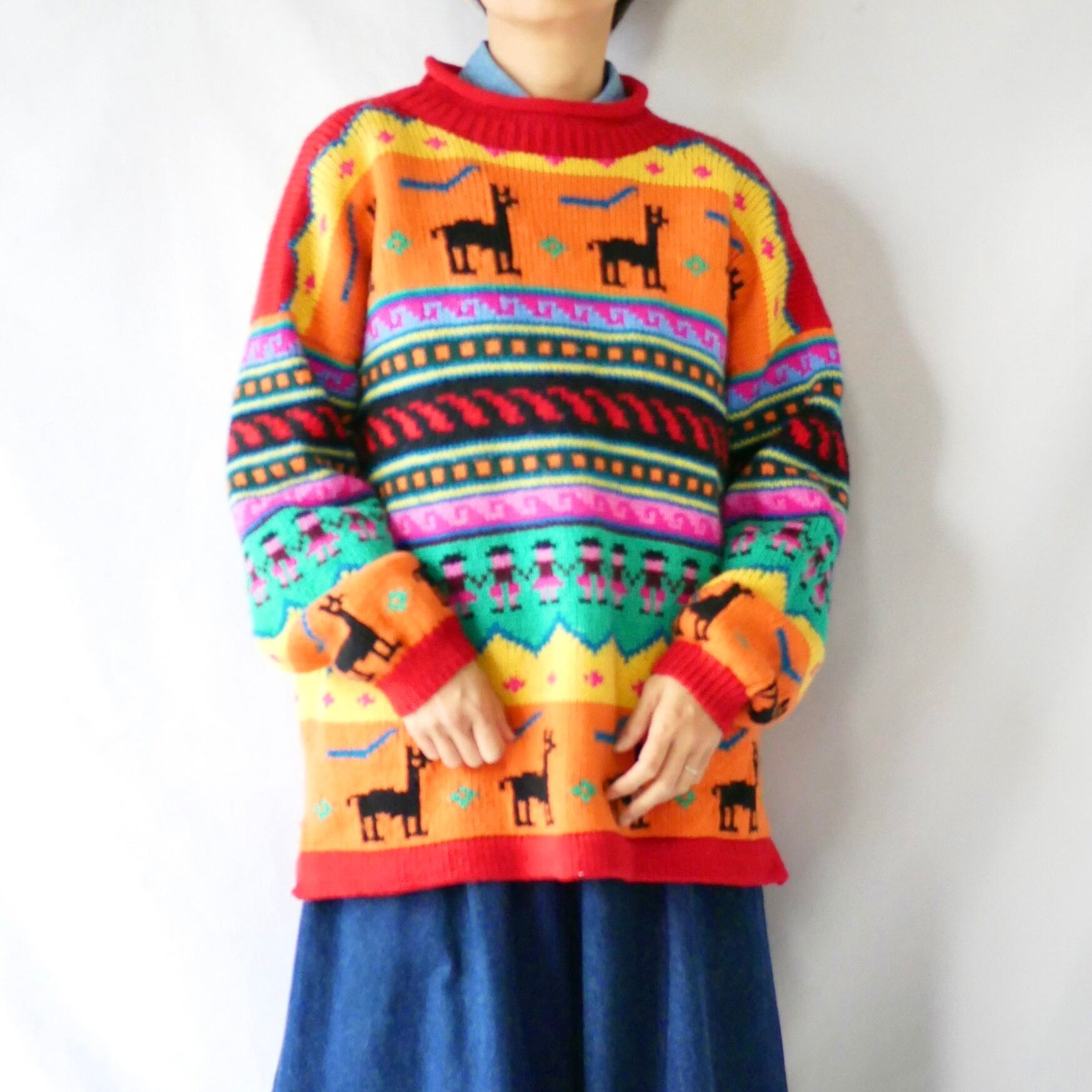 Made in Peru colorful rollneck knit ペルー製ジャガード風カラフル総柄ニット