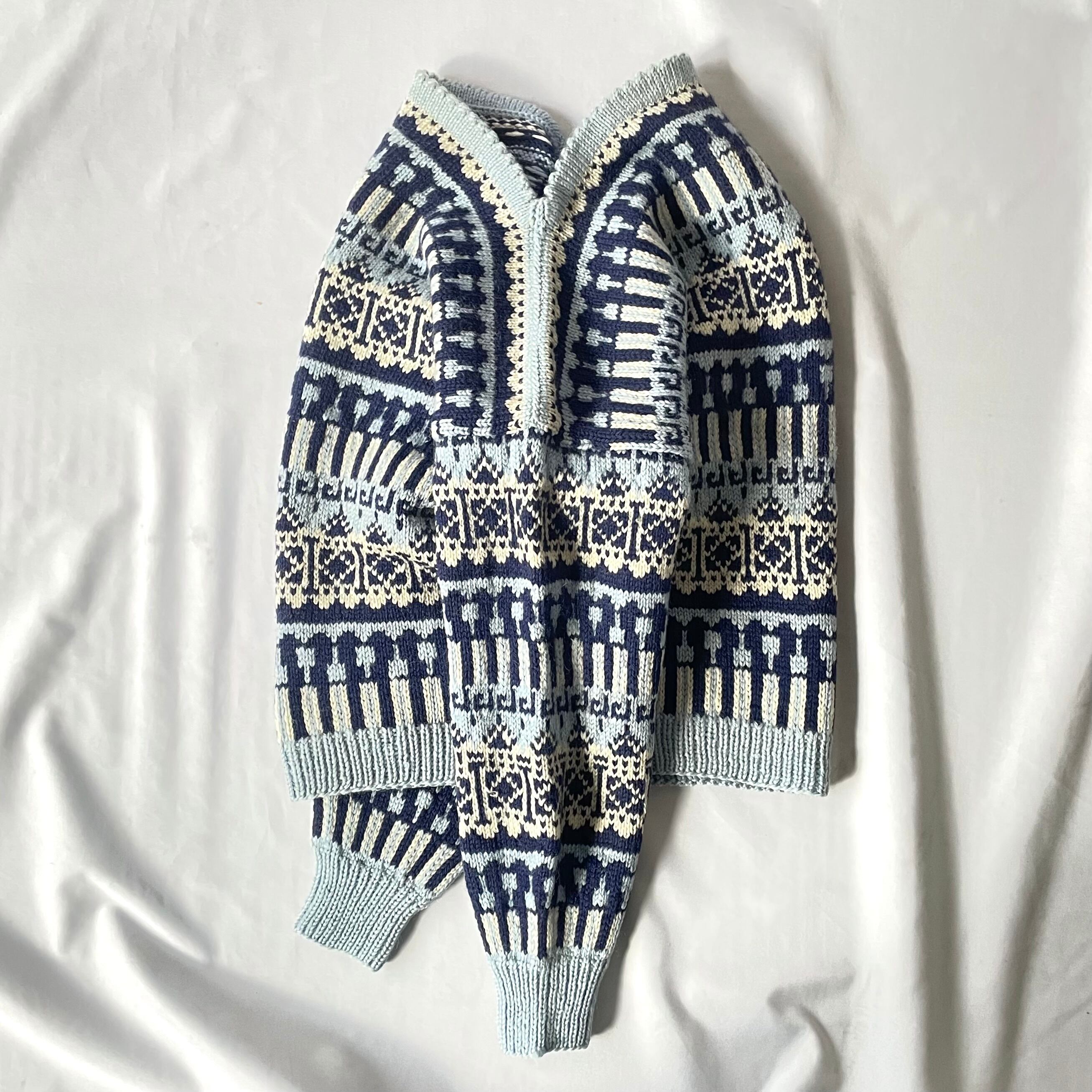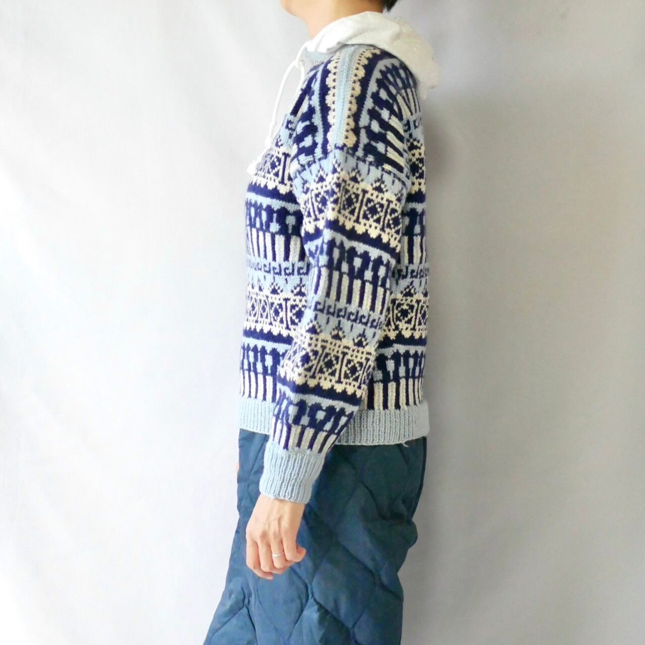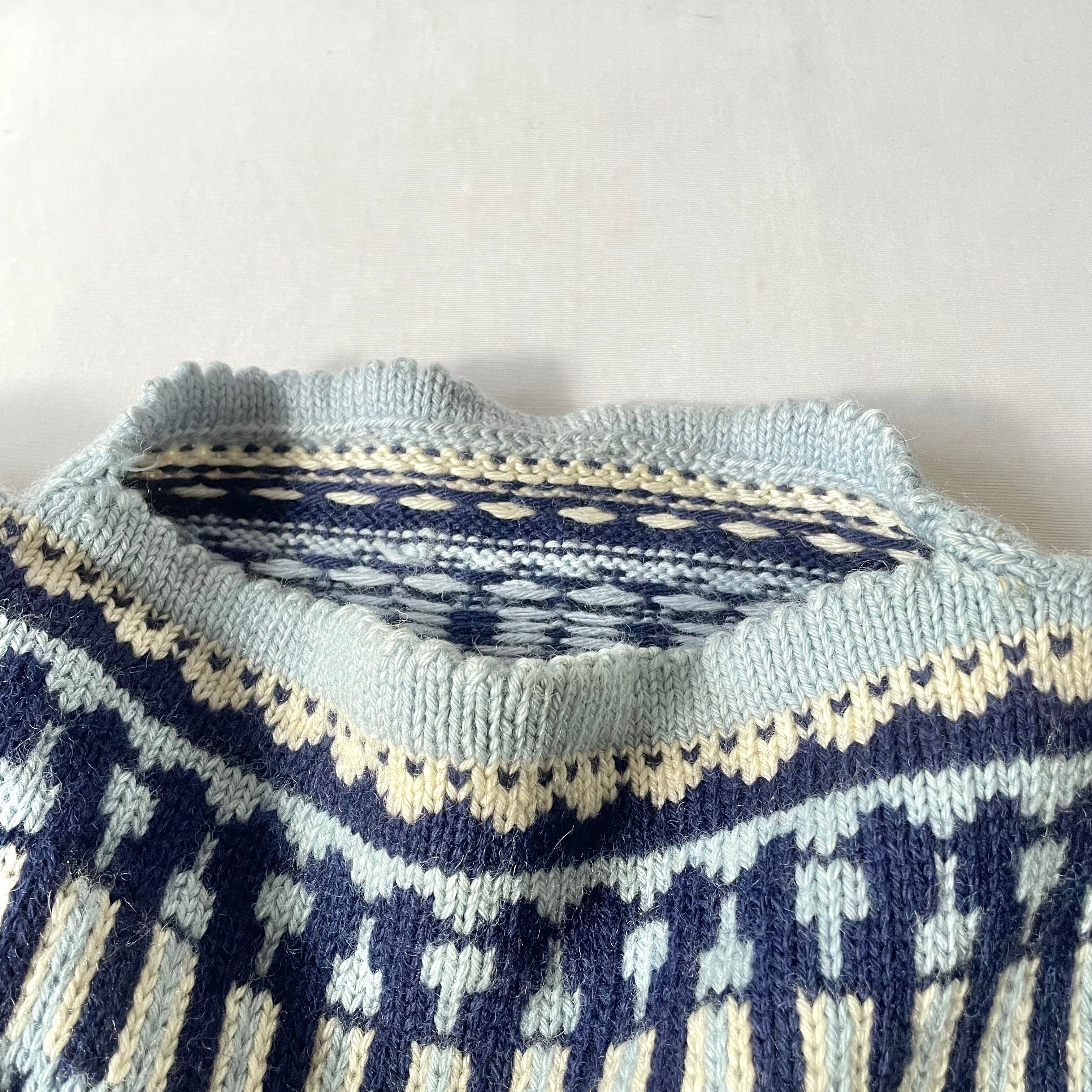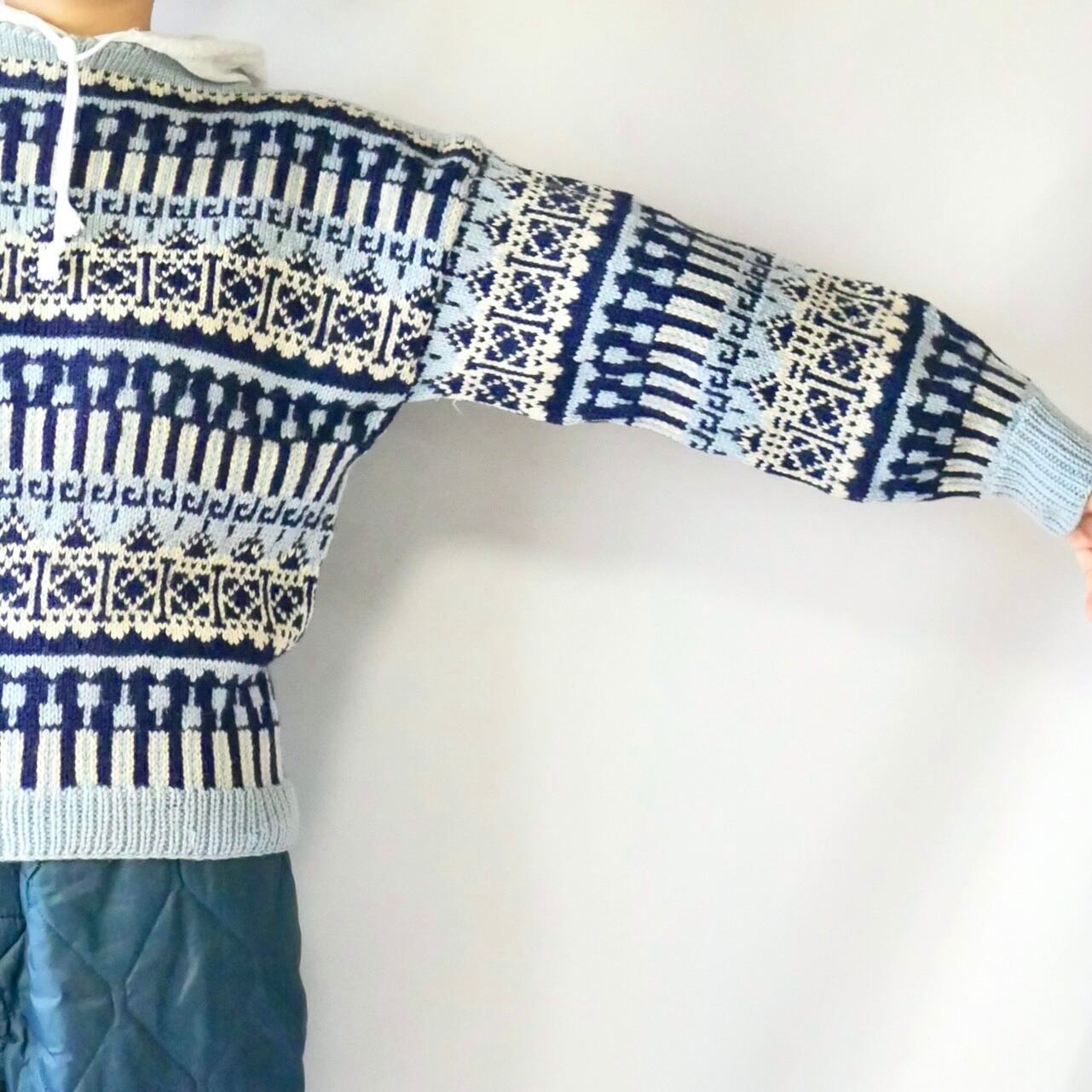 60s vintage norway ice blue boatneck nordic knit アイスブルーボートネックノルディックニット