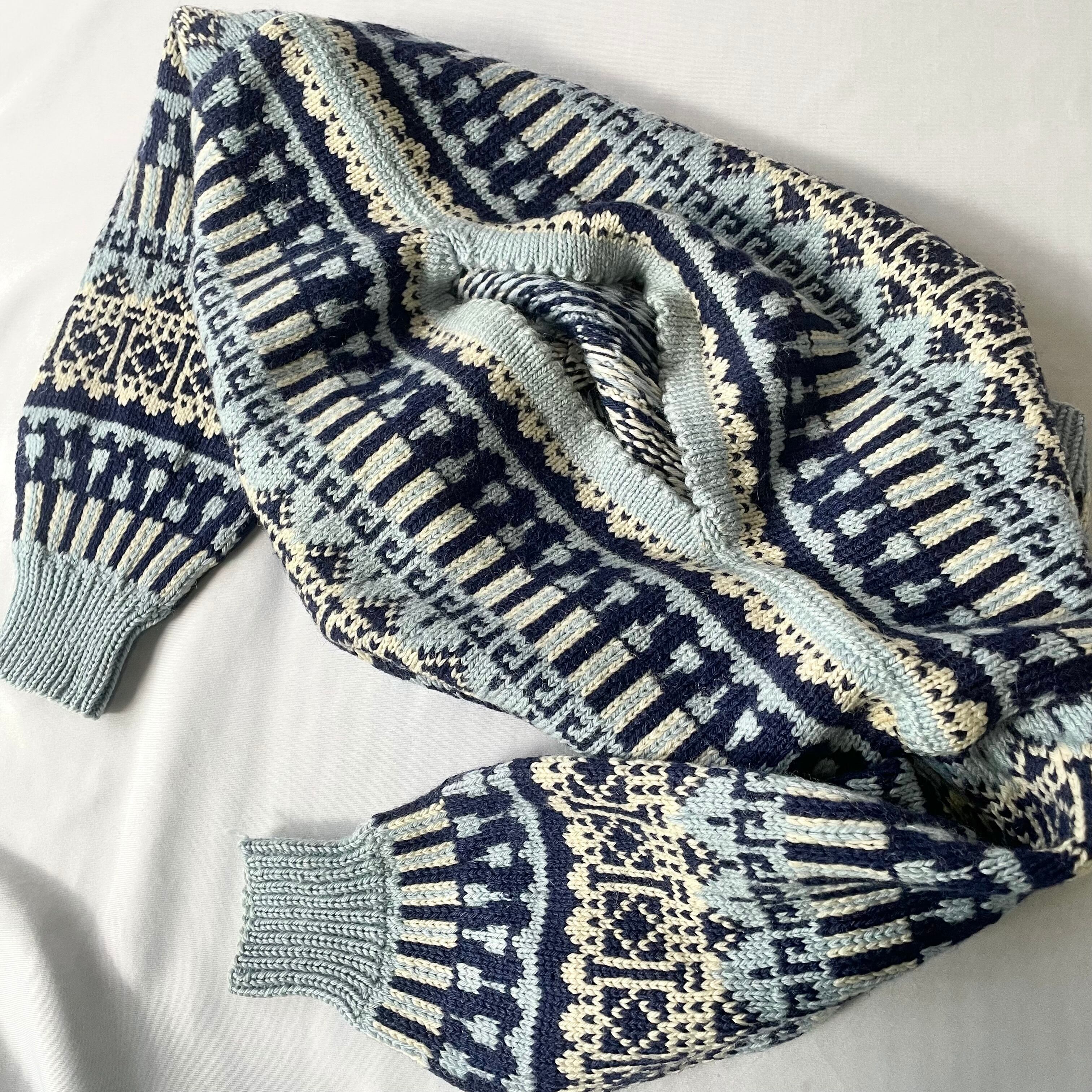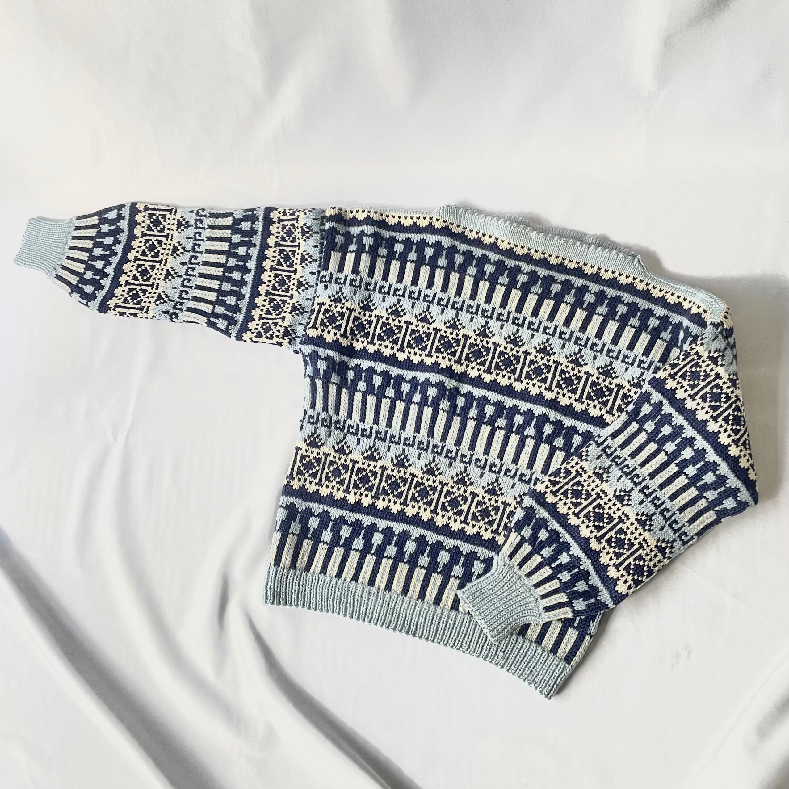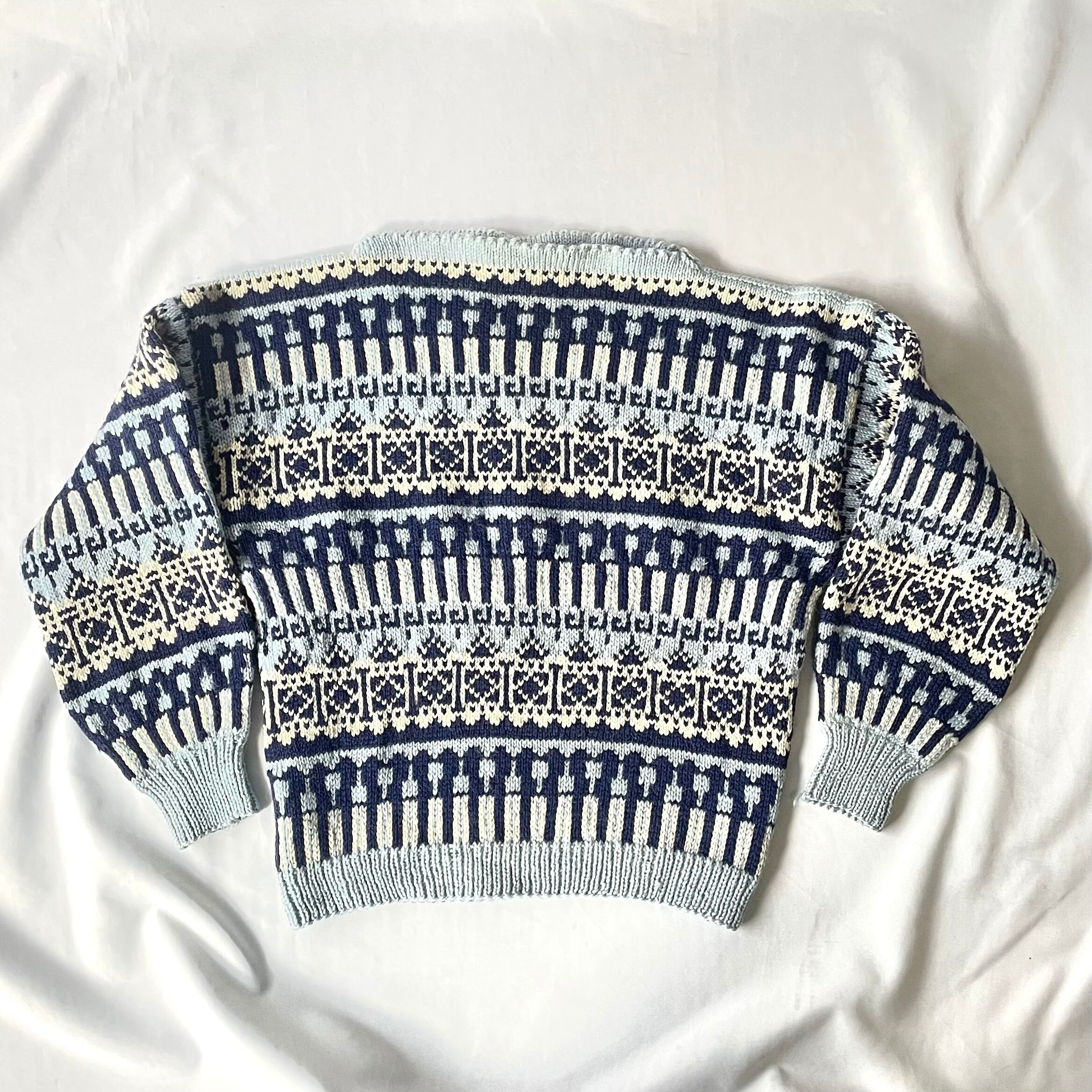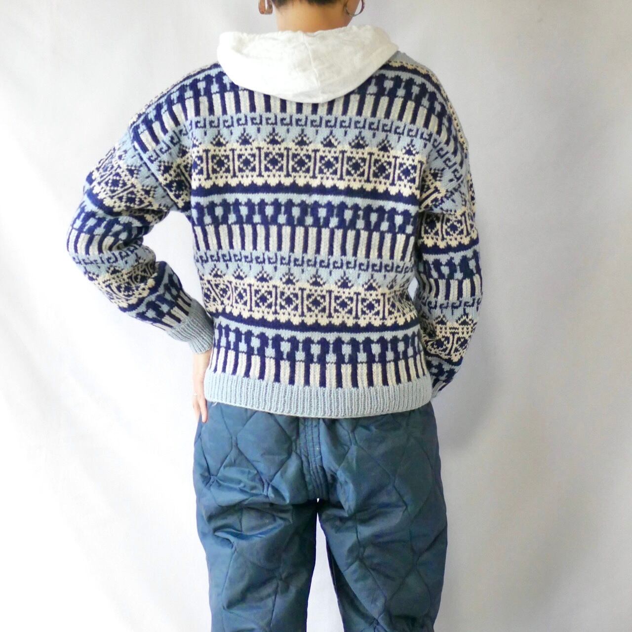 60s vintage norway ice blue boatneck nordic knit アイスブルーボートネックノルディックニット