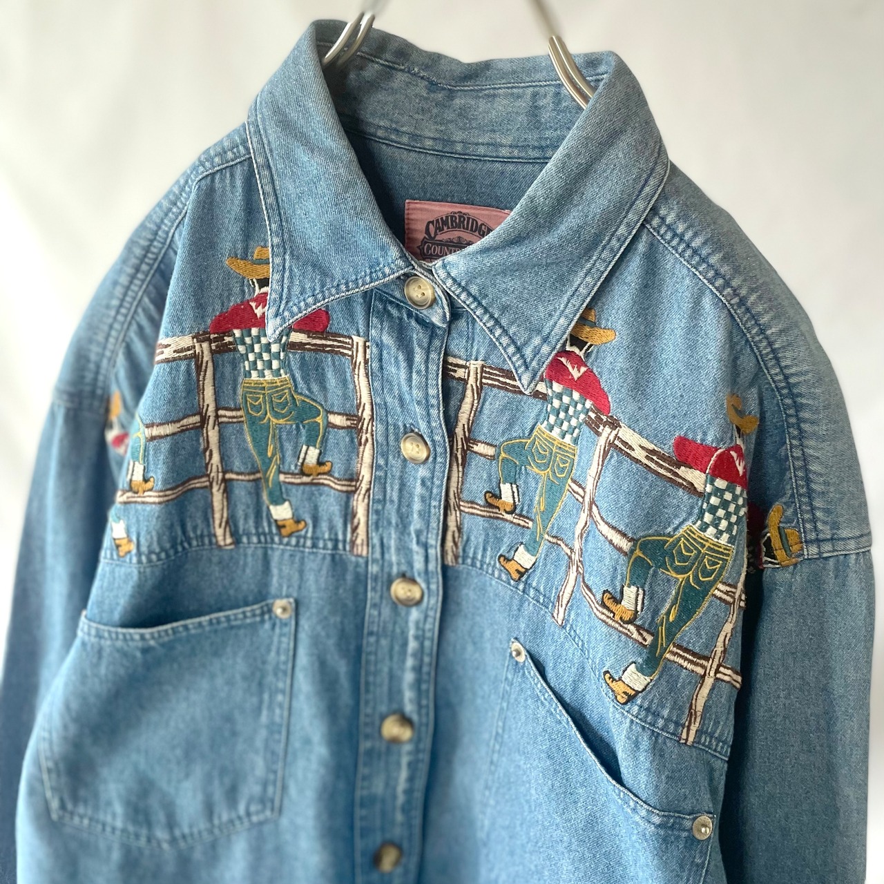 Western embroidered dungaree shirt サドルマン風刺繍入りダンガリーシャツ