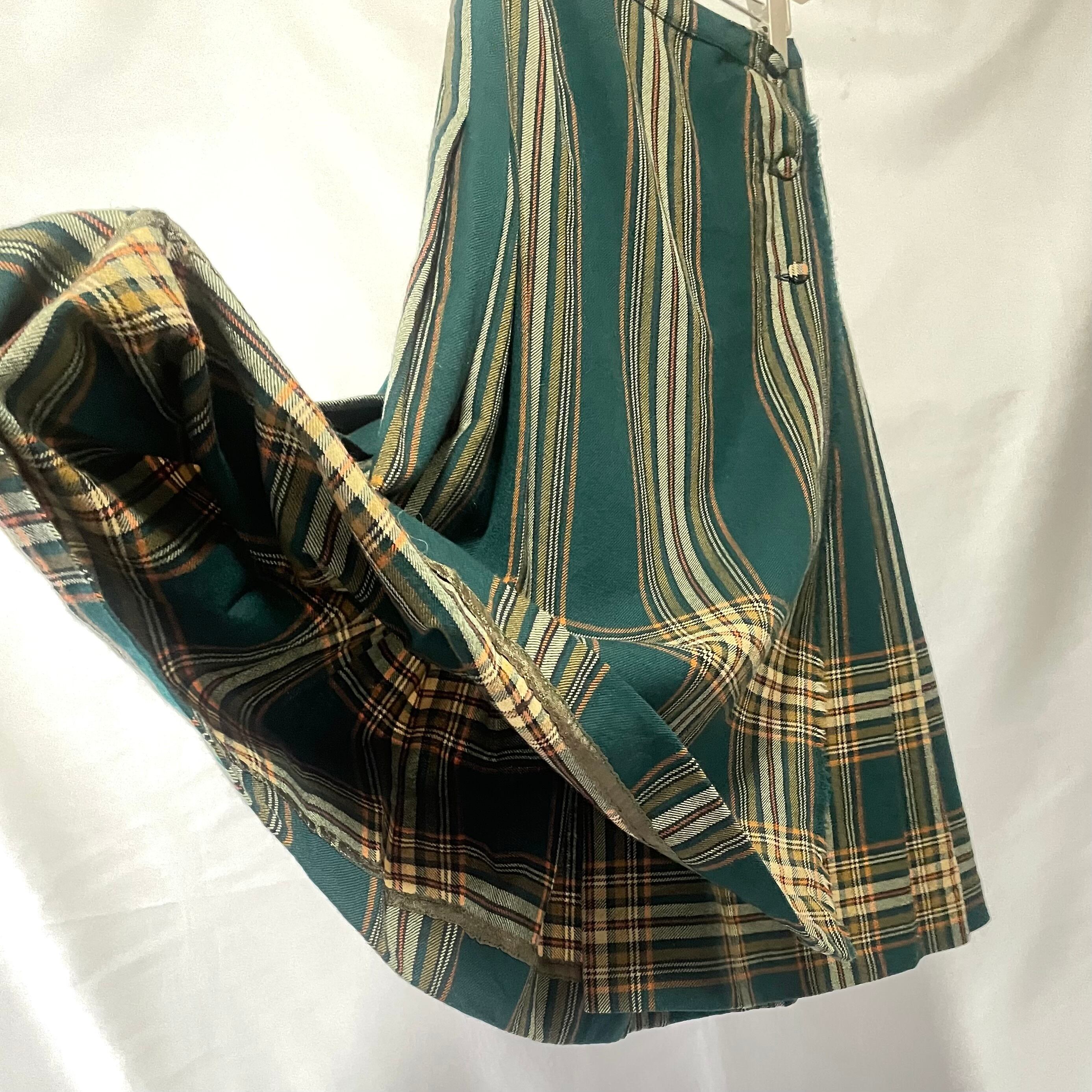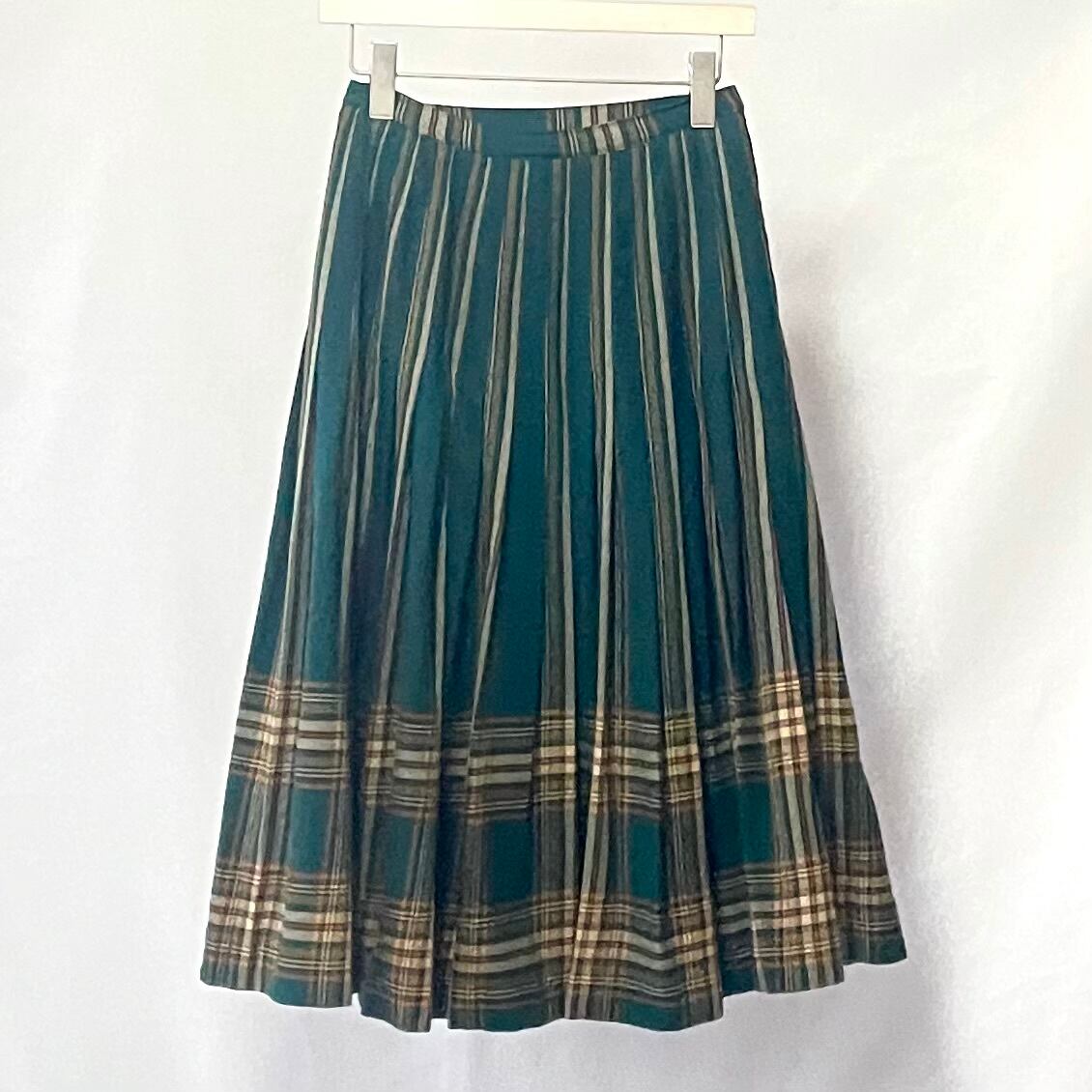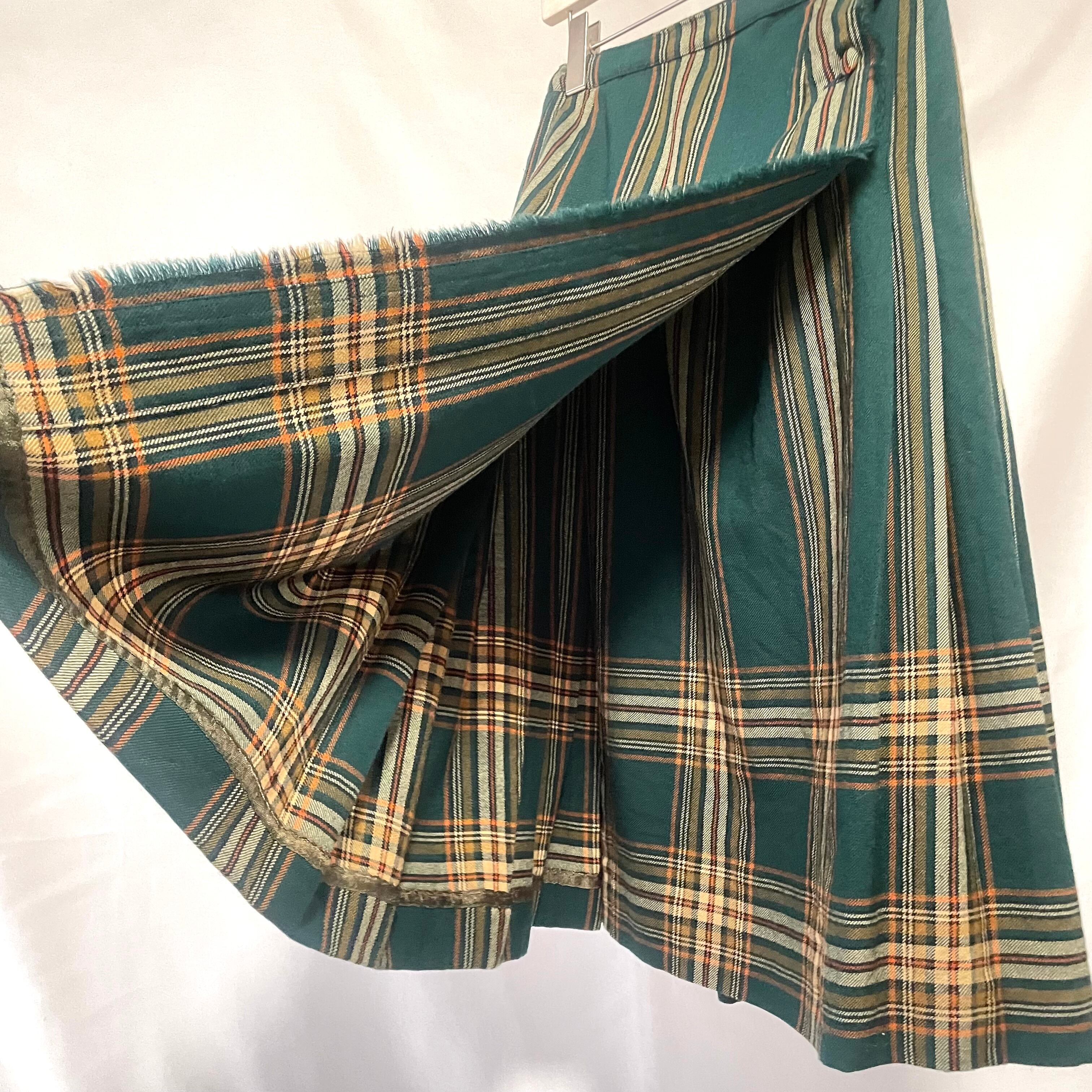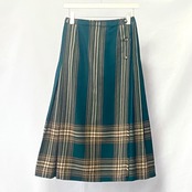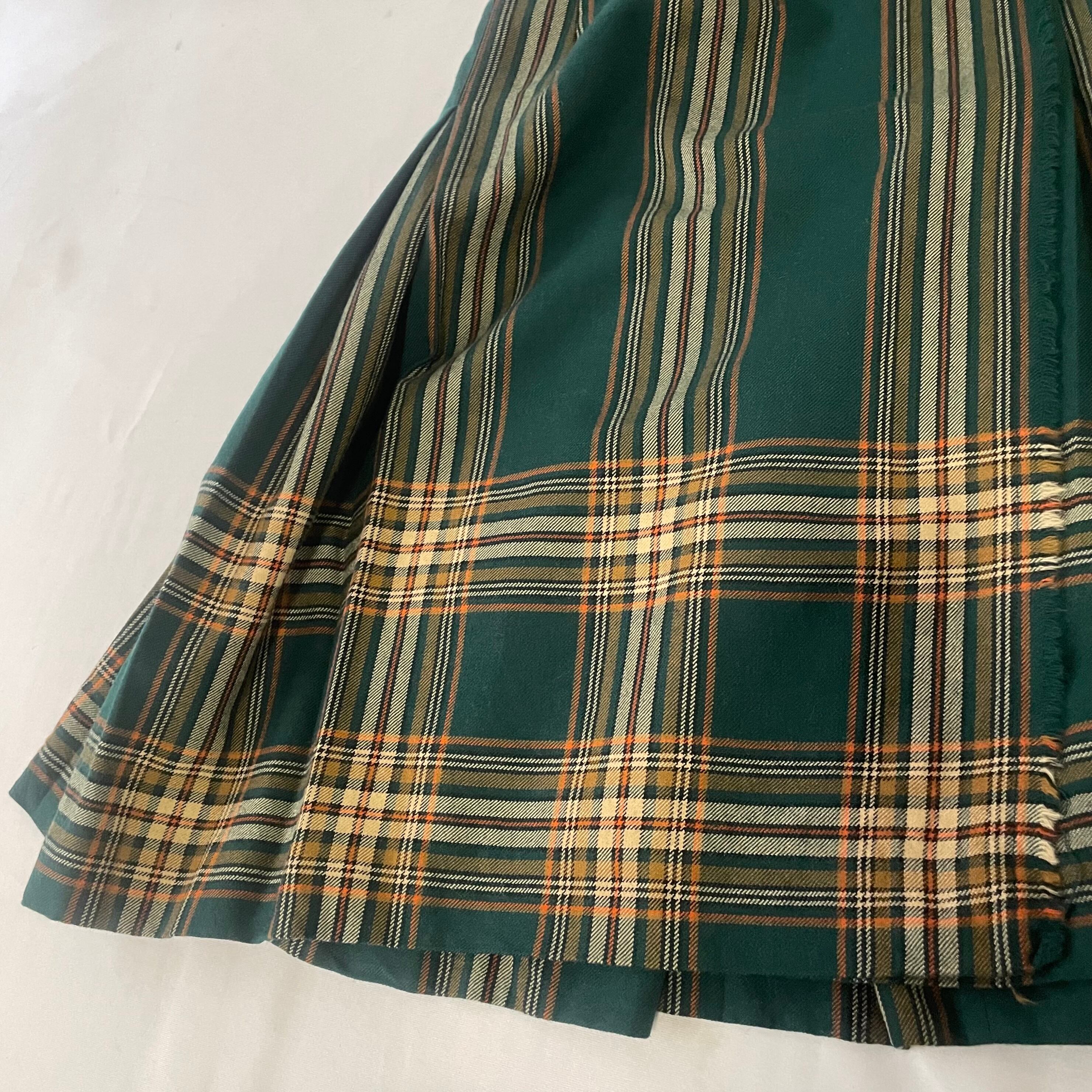 70年代ヴィンテージ ピュアバージンウール100% グリーンチェック柄 プリーツスカートです。
