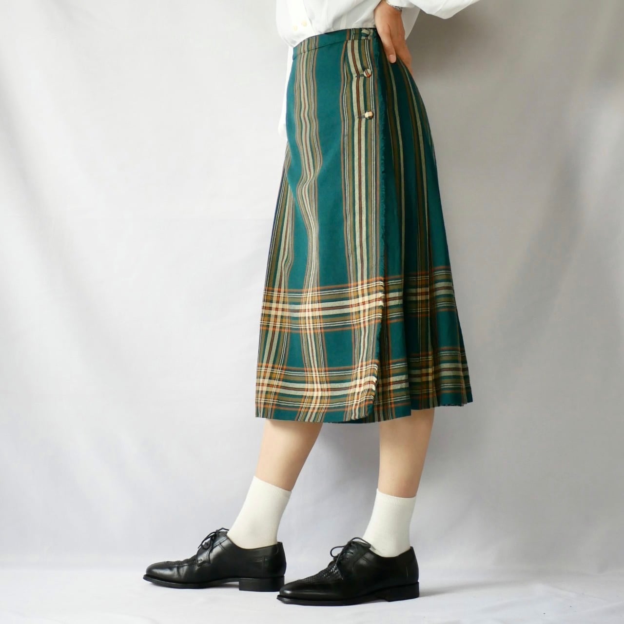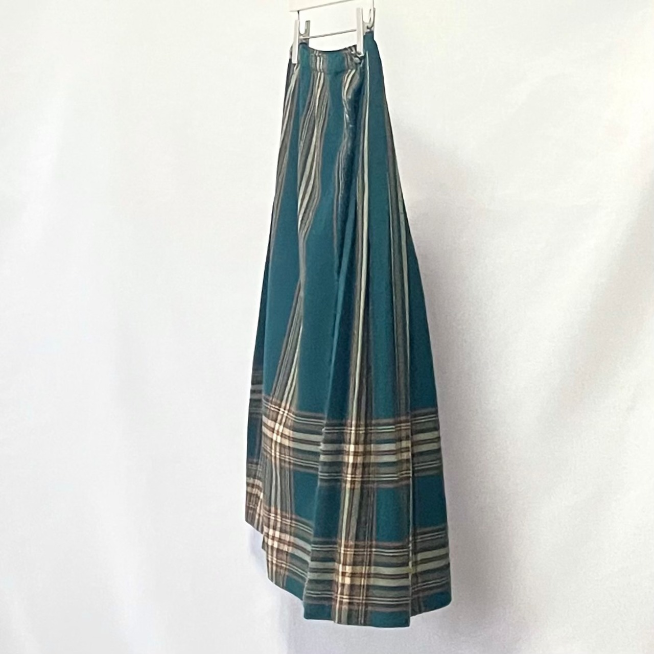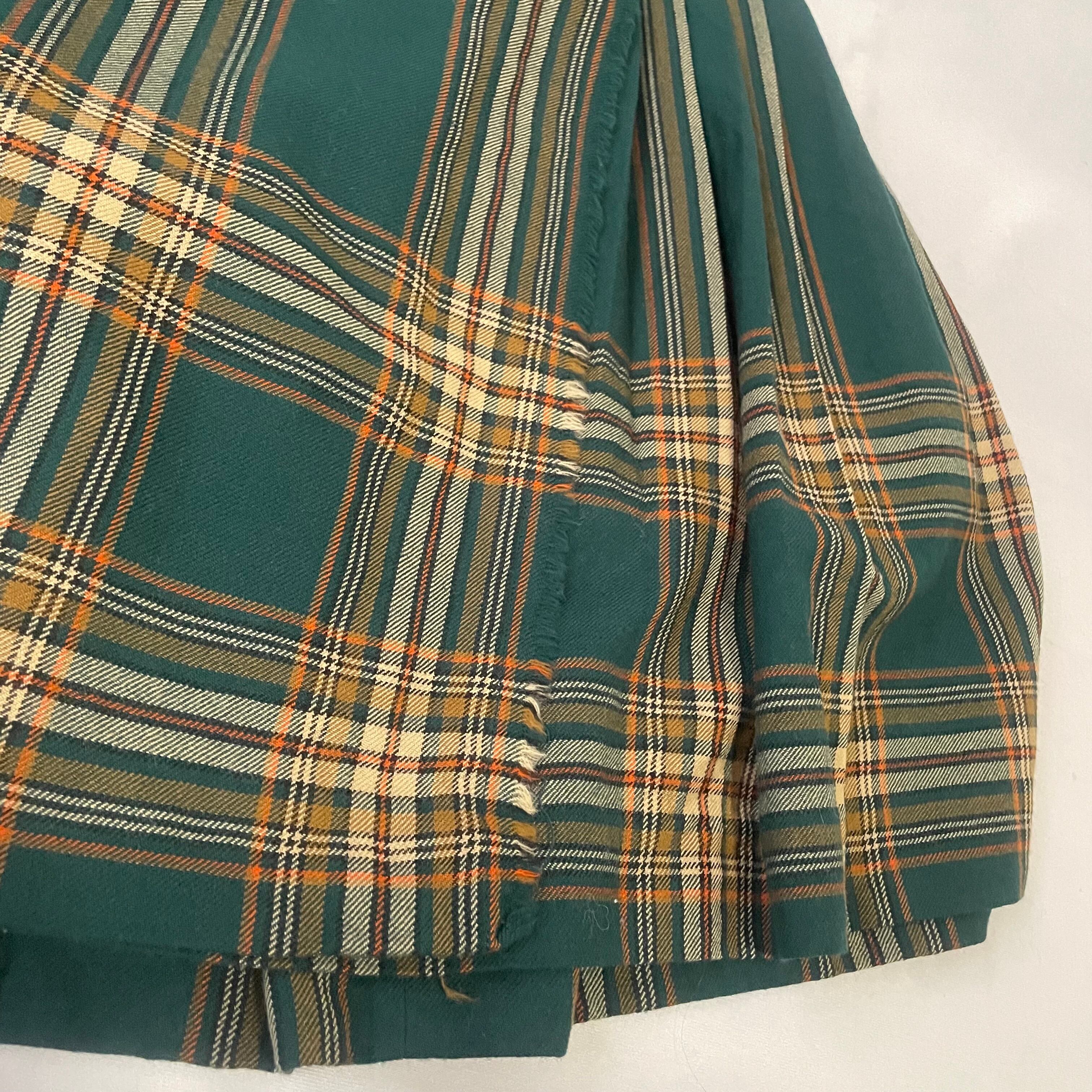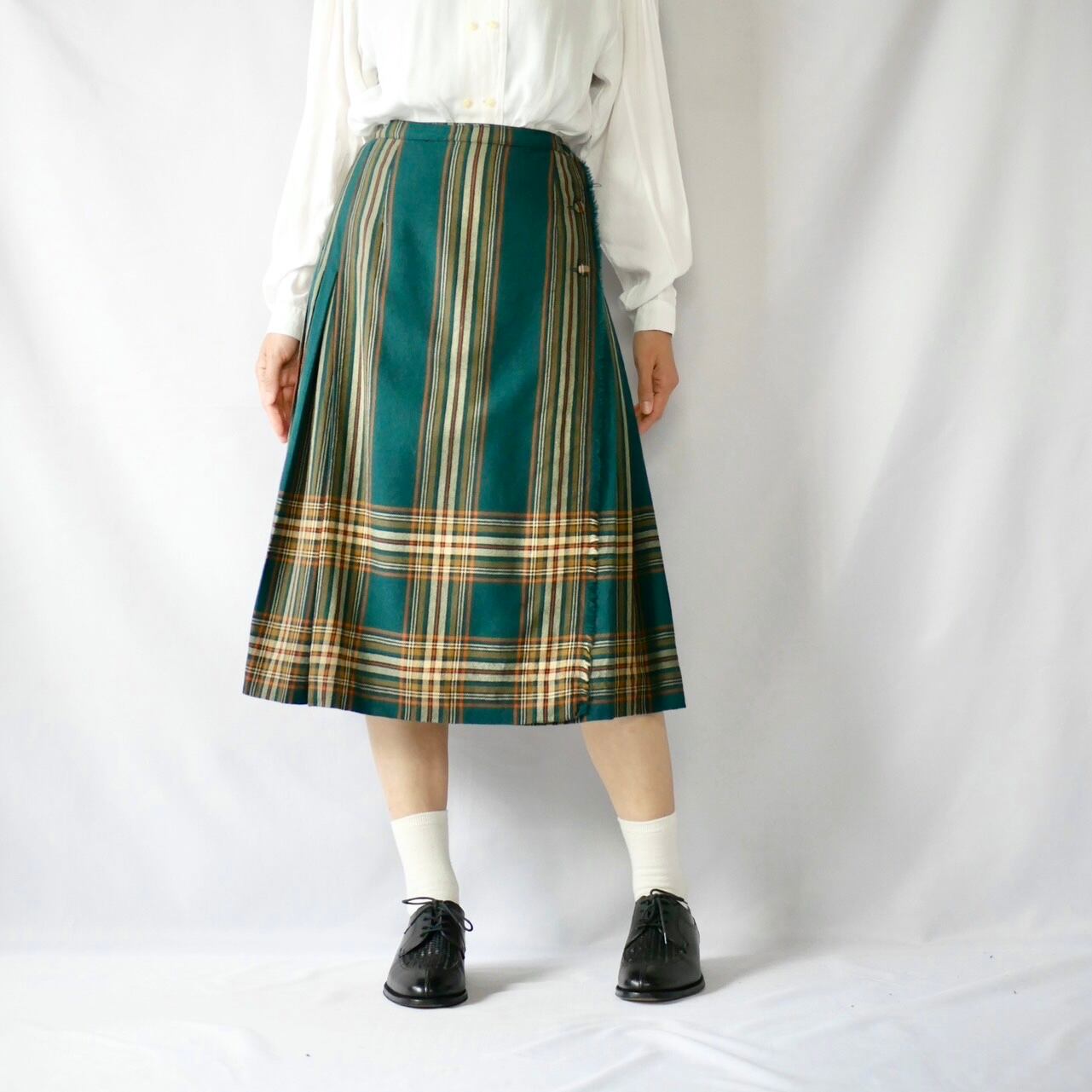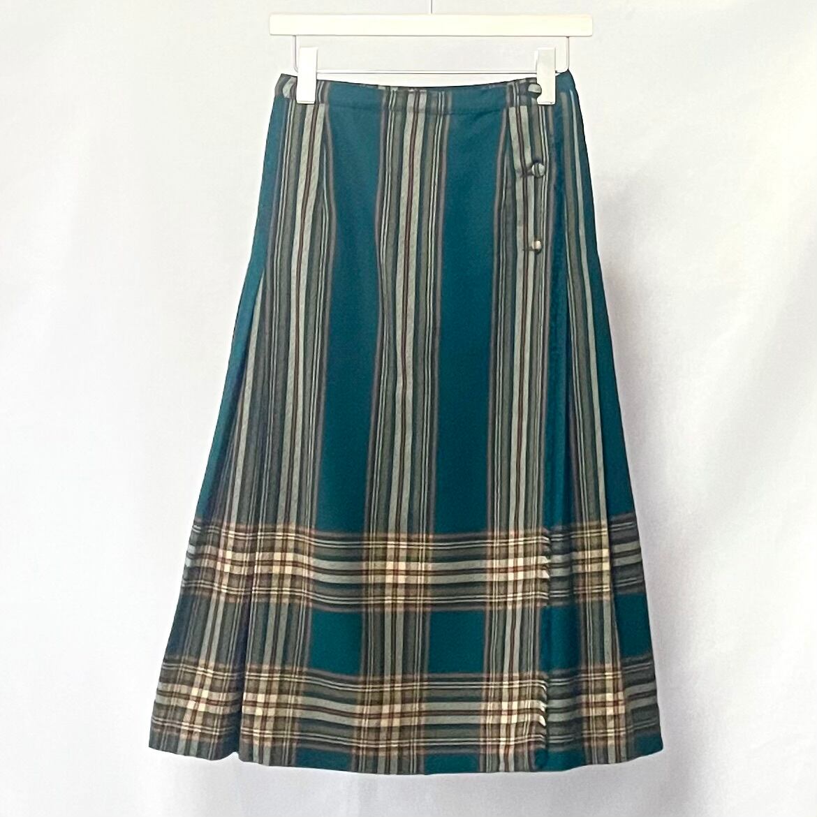70年代ヴィンテージ ピュアバージンウール100% グリーンチェック柄 プリーツスカートです。