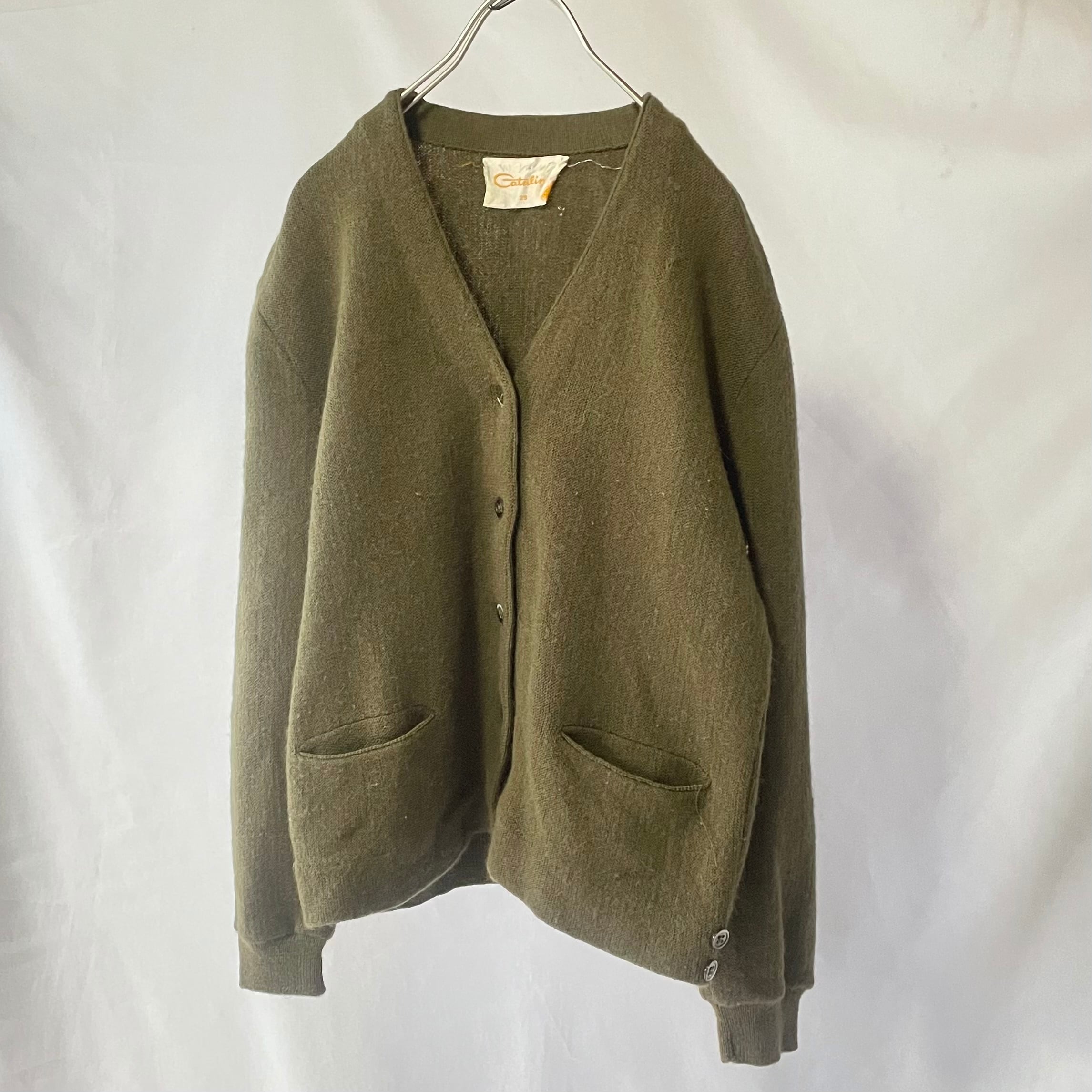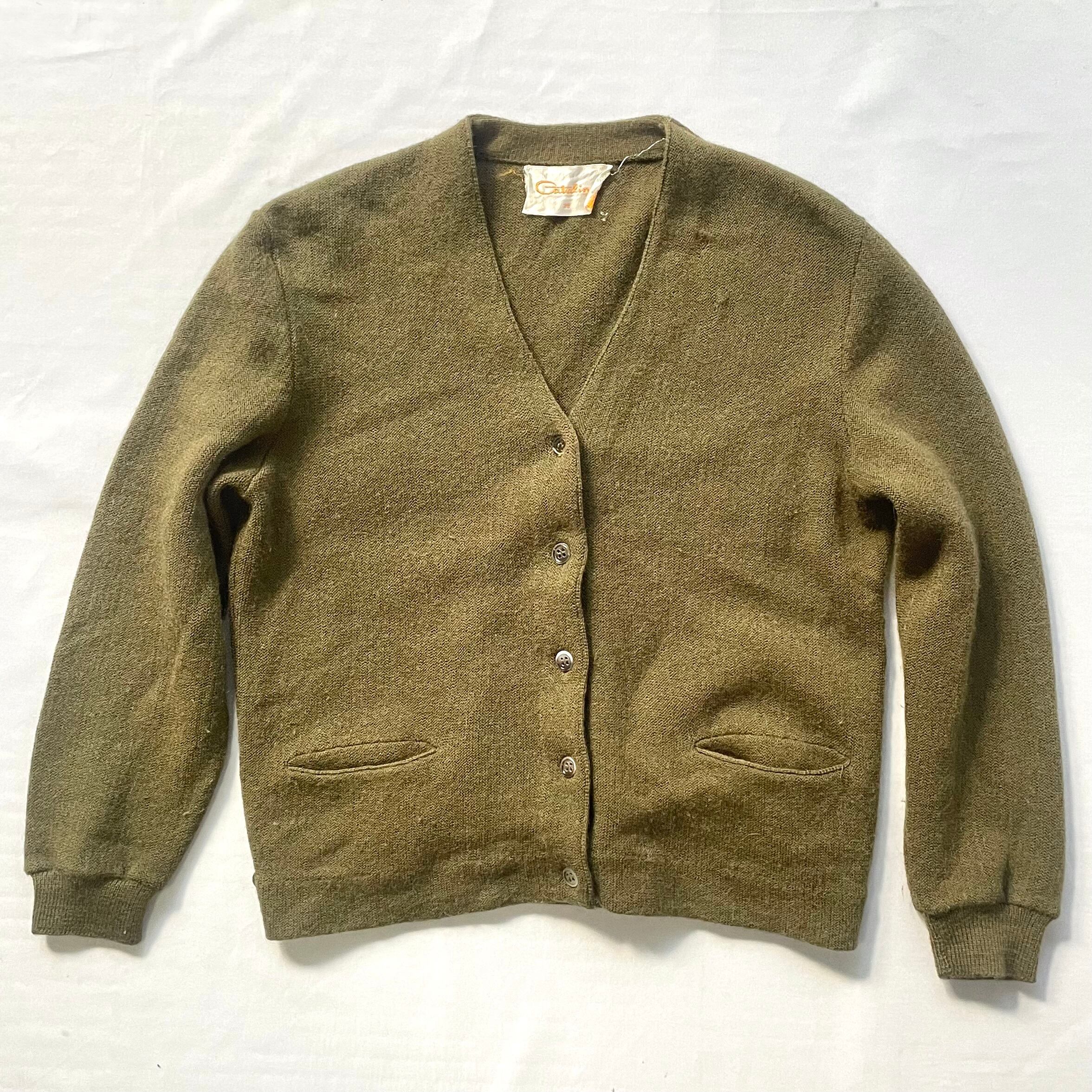 vintage Catalina moss green acryl knit cardigan モスグリーンアクリルニットカーディガン