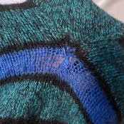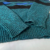 アメリカ製ウールナイロン素材 杢グリーン×ブルー×黒ボーダーニットです。