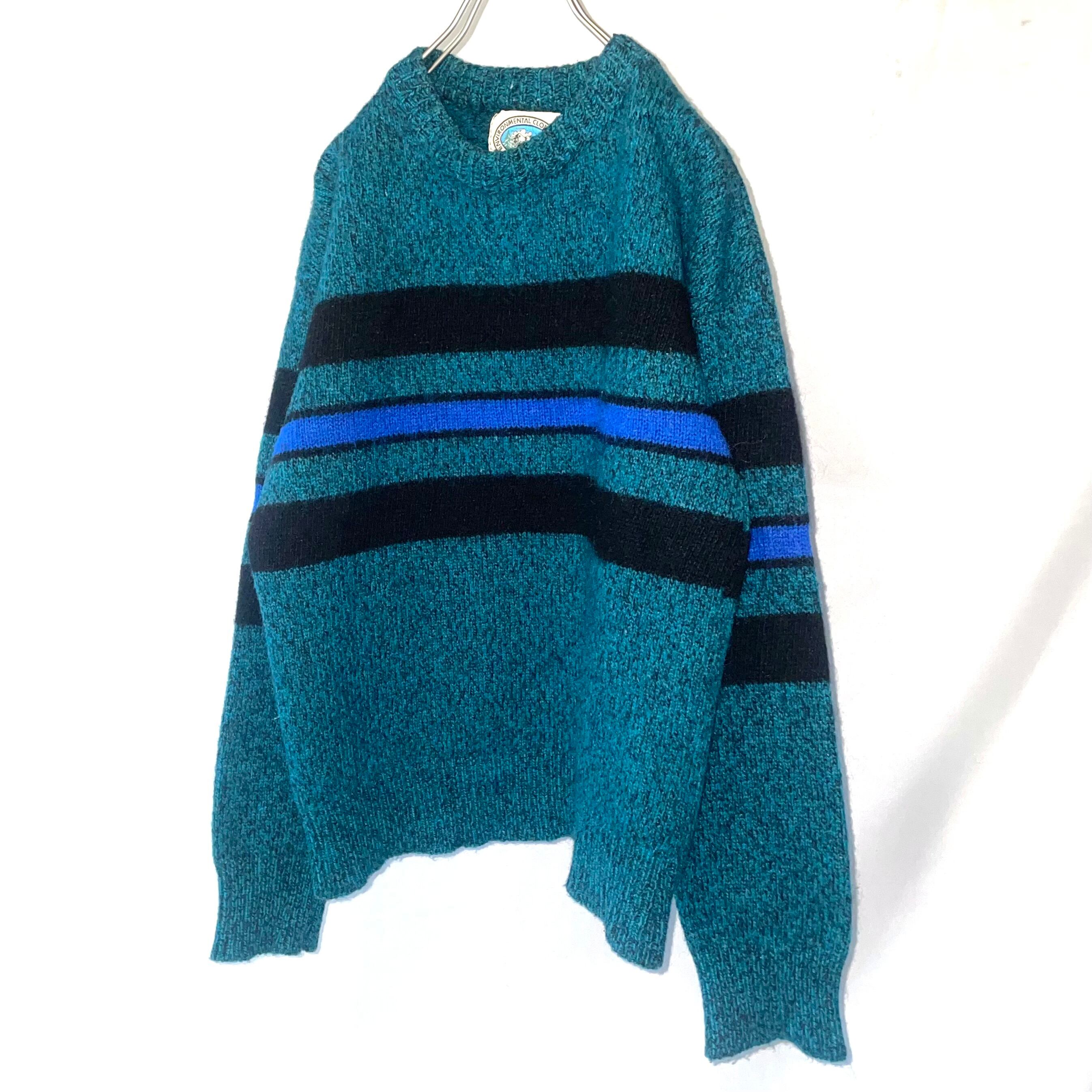 Maed in USA green border wool nylon knit アメリカ製ウールナイロングリーンボーダーニット