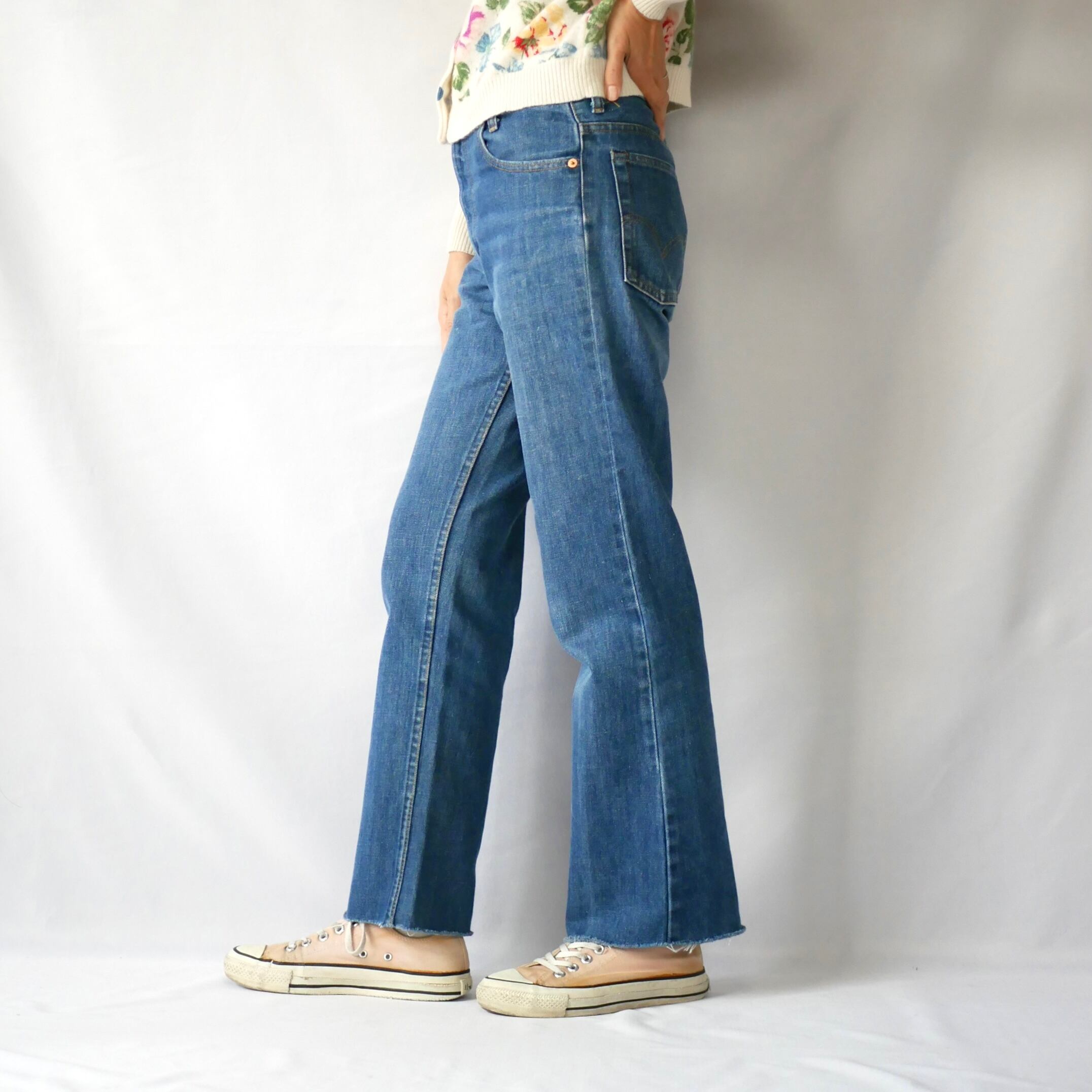 80年代頃のヴィンテージ リーバイス 裾切りっぱなしデニムパンツです。42talon zipper ボタン裏刻印553