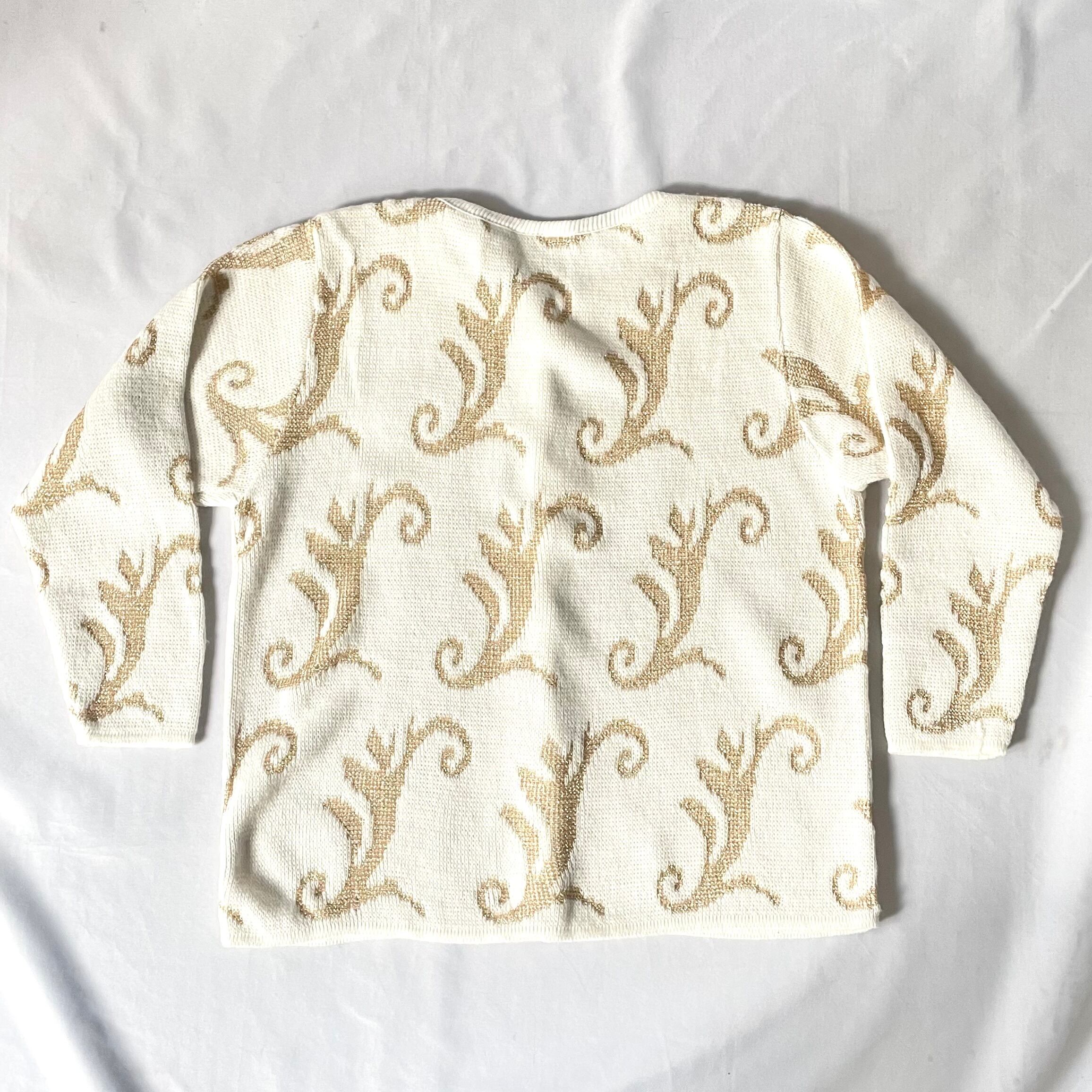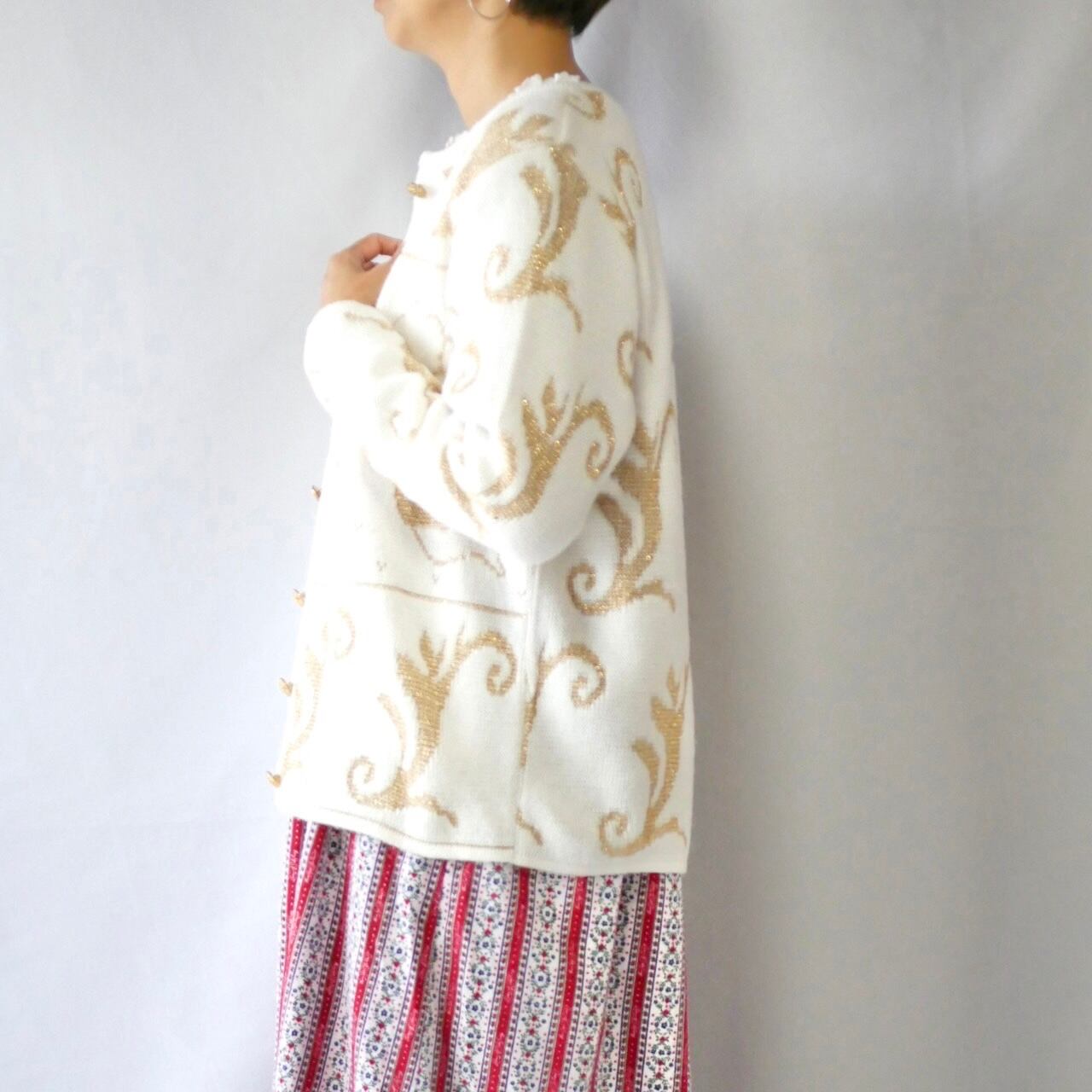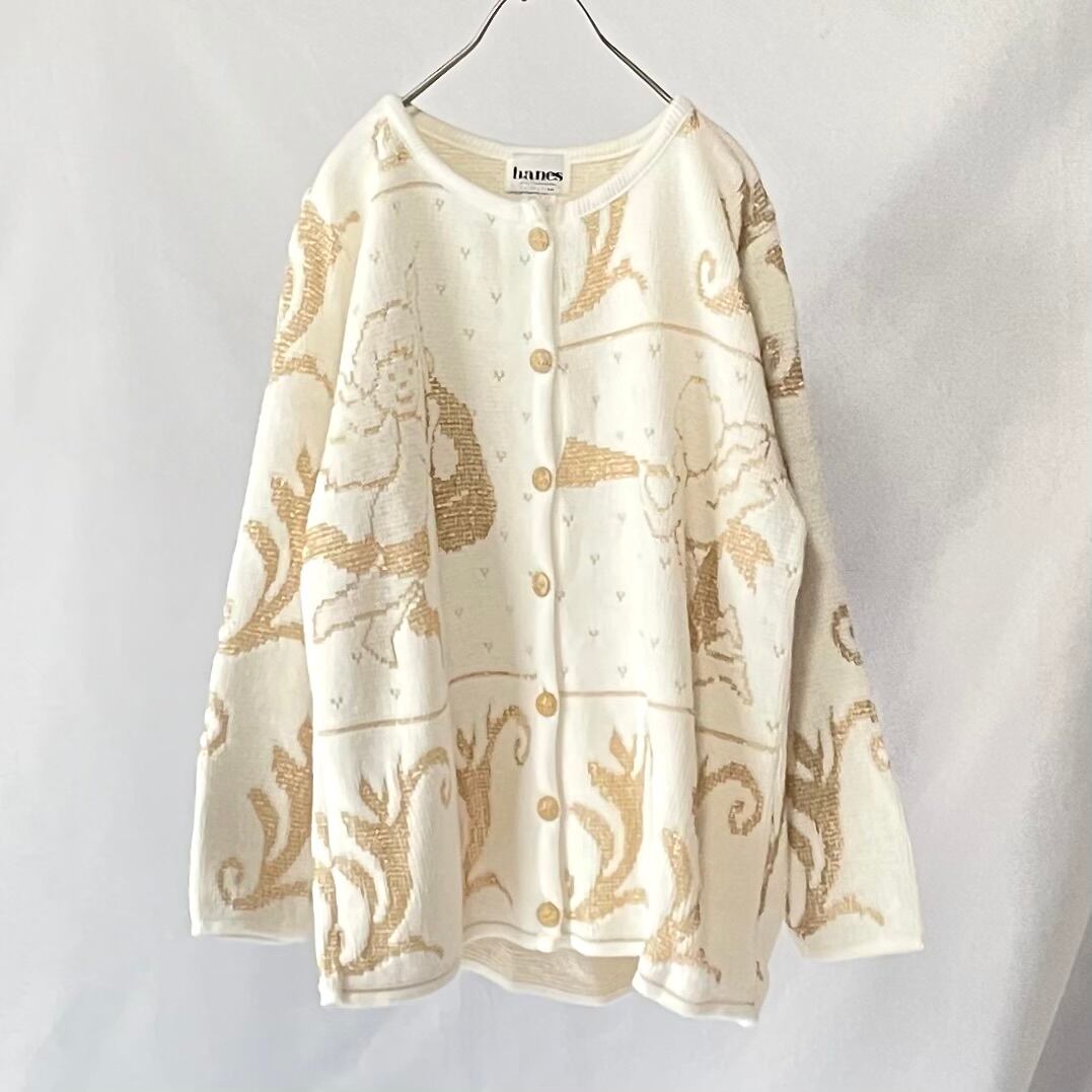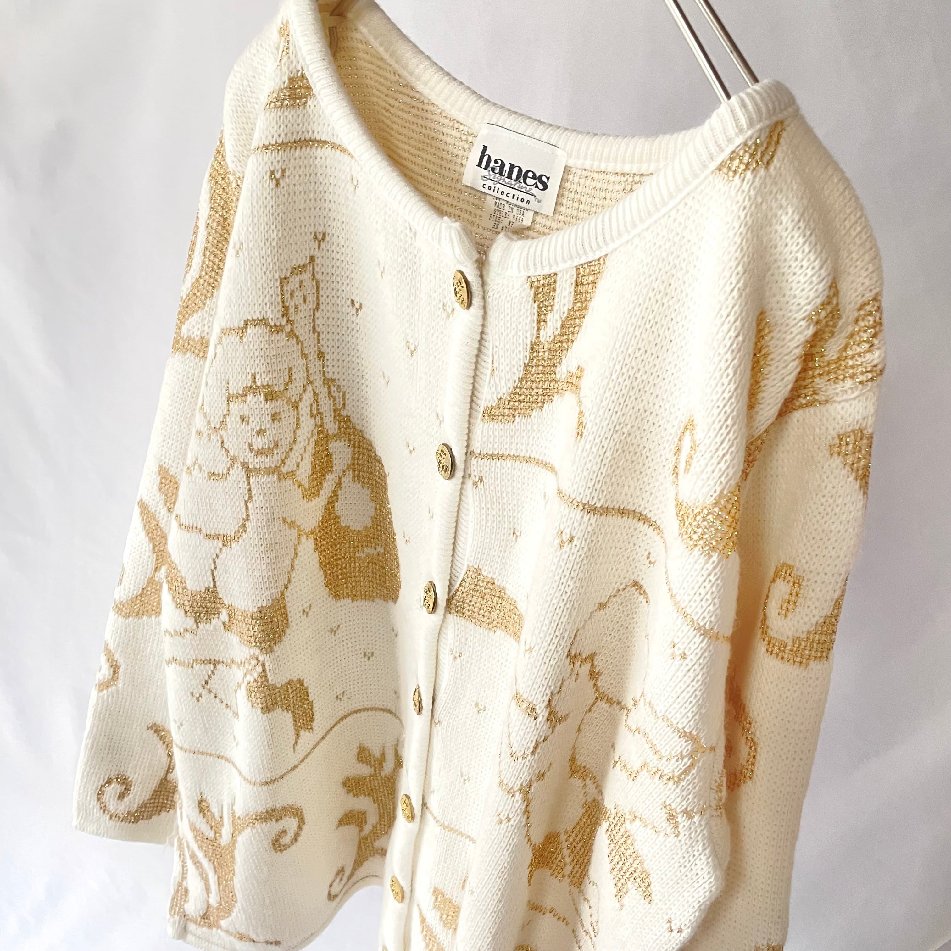 Made in USA Hanes white gold angel knit cardigan 白ゴールド天使柄ニットカーディガン