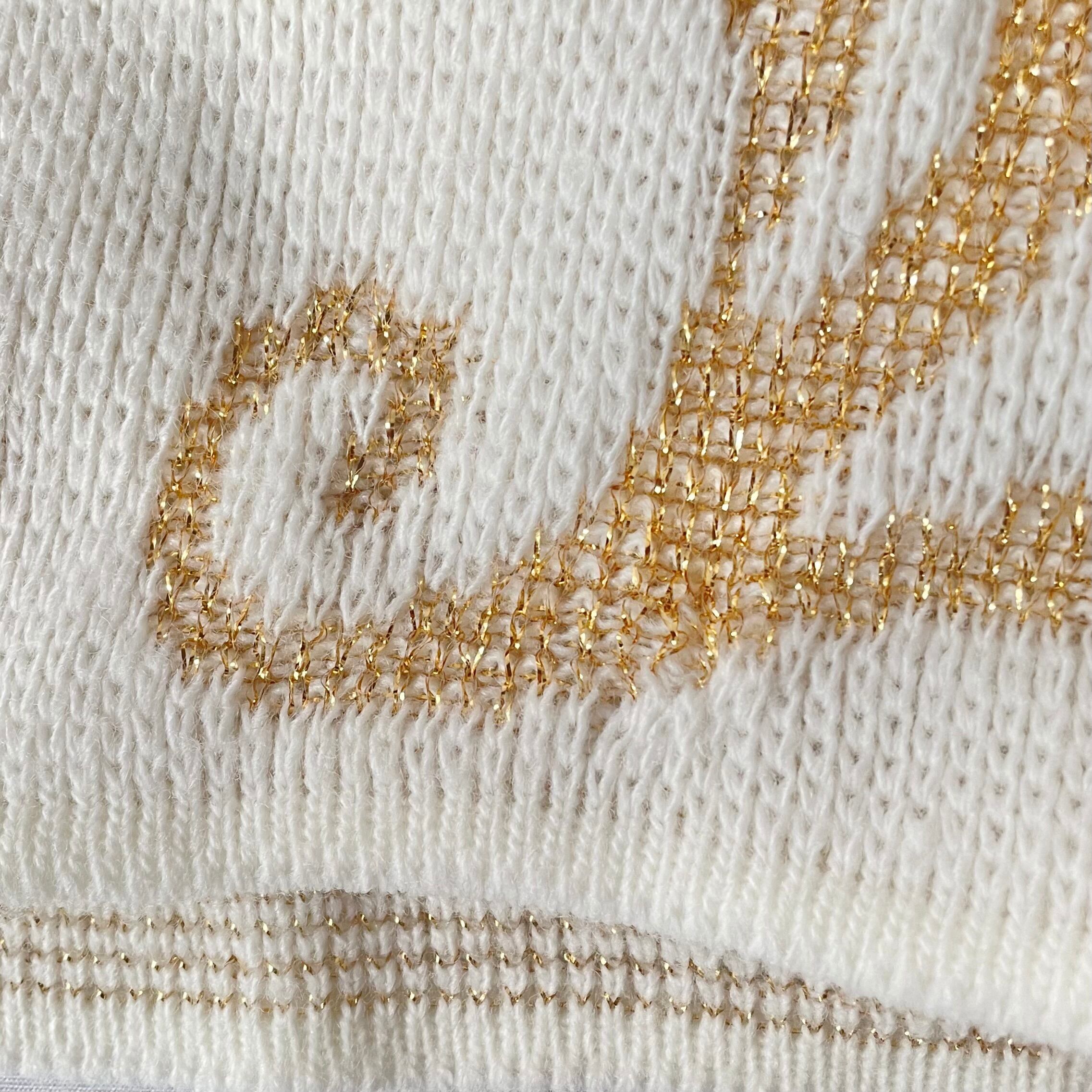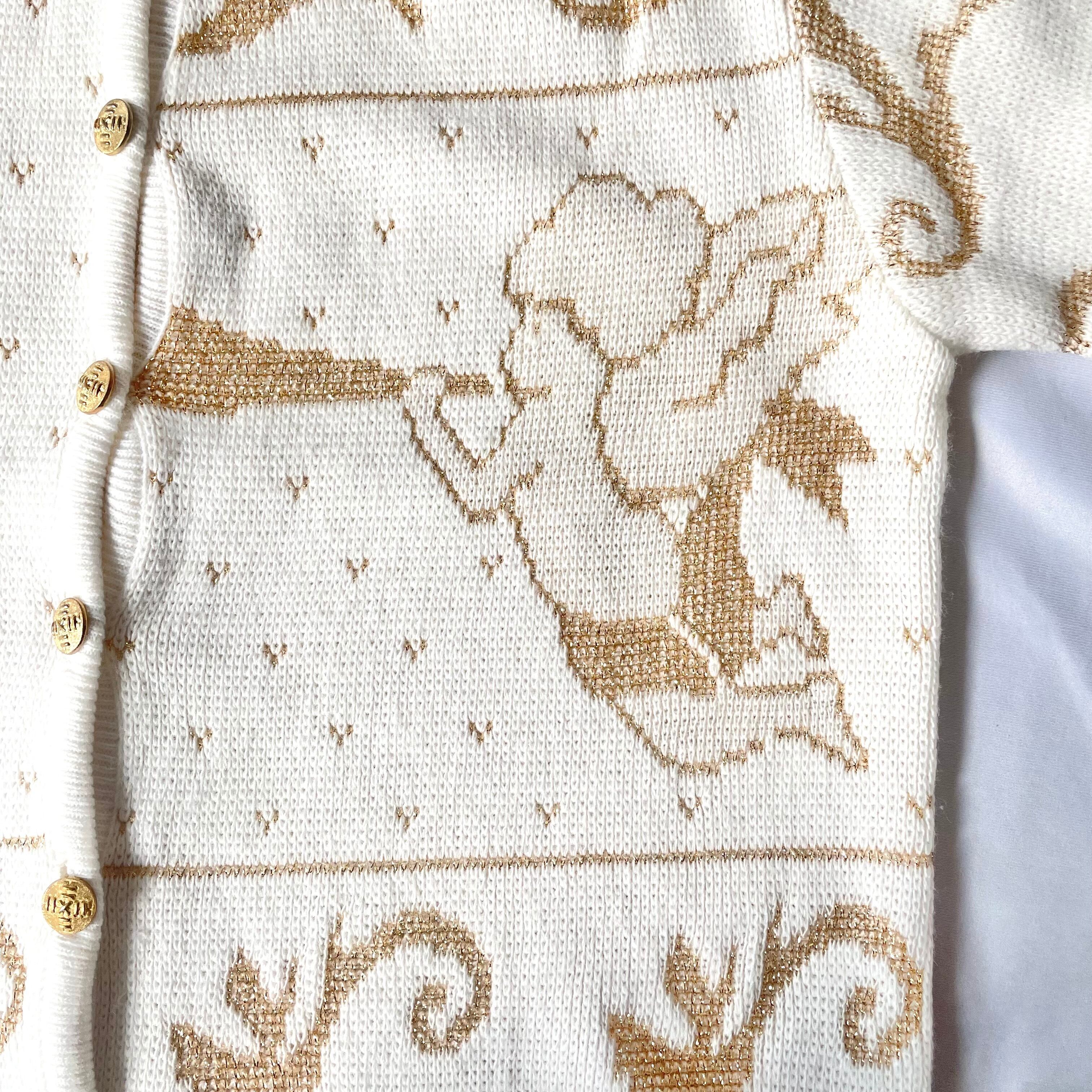 90年代頃のヴィンテージ hanes 白×ゴールド 2天使柄 アクリルニットカーディガンです。