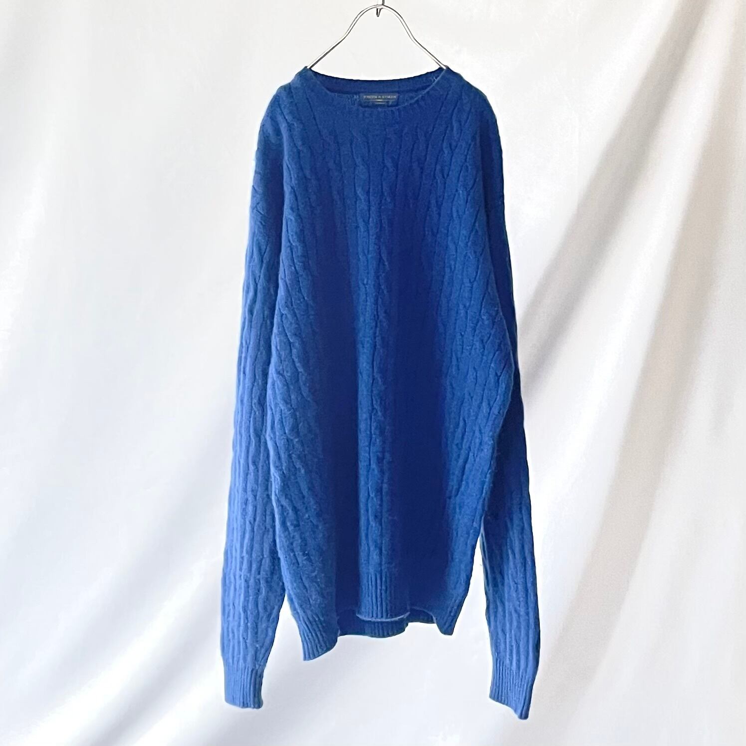 Joseph&Lyman blue cashmere 100% cable knit 群青色カシミアニット
