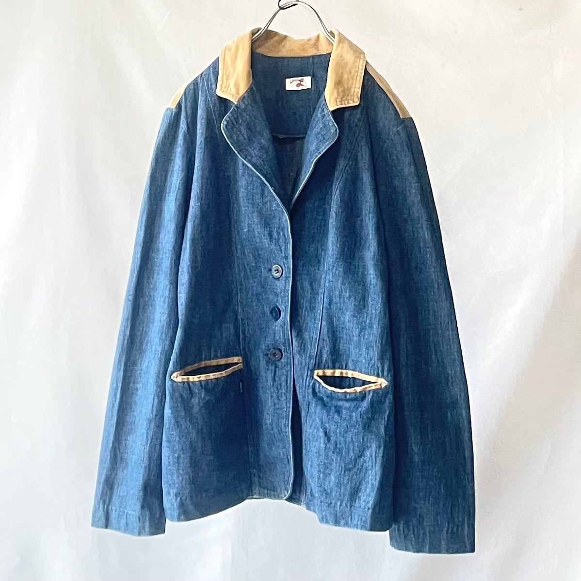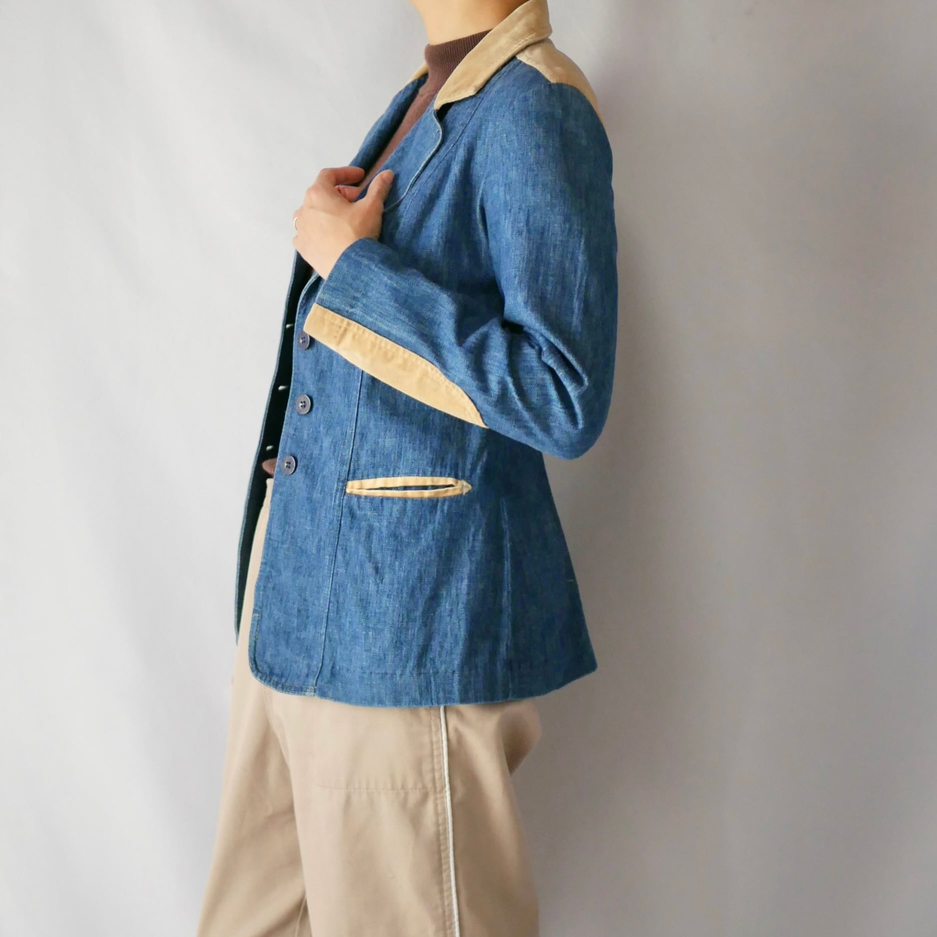 70年代ヴィンテージ リーバイス ベージュベロア切替 デニムテーラードJKTです。ポケット付き