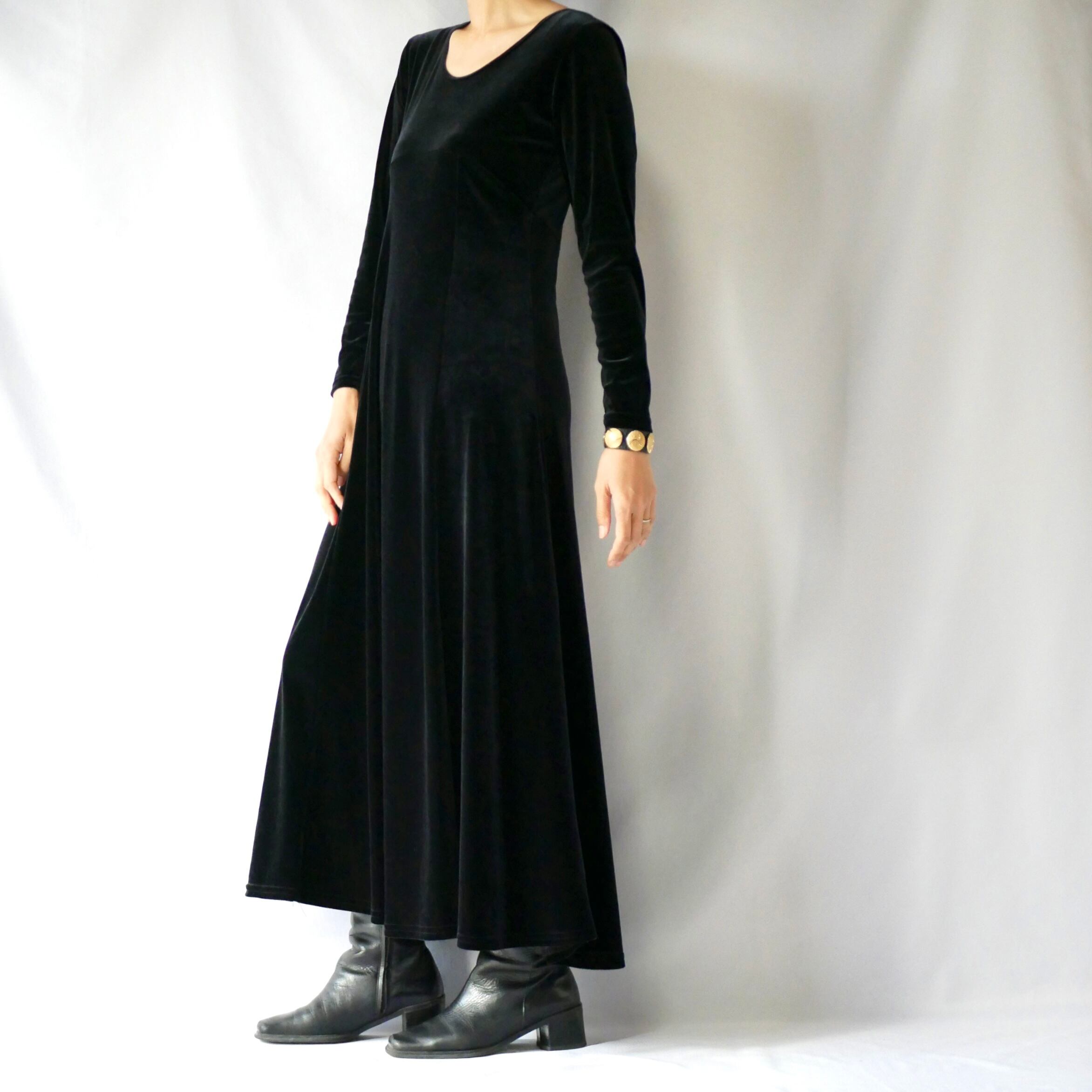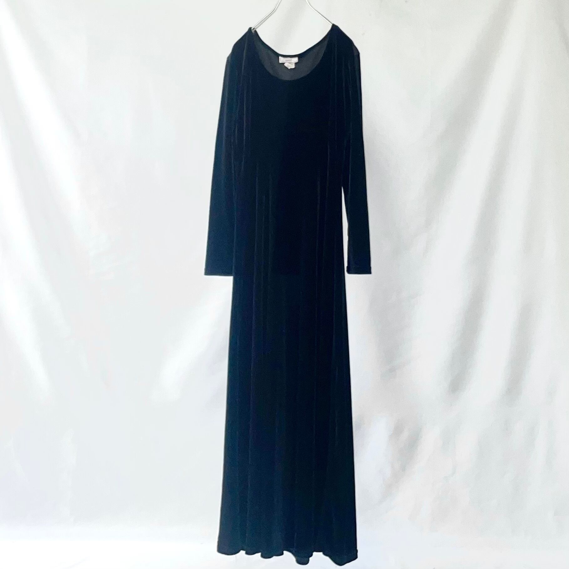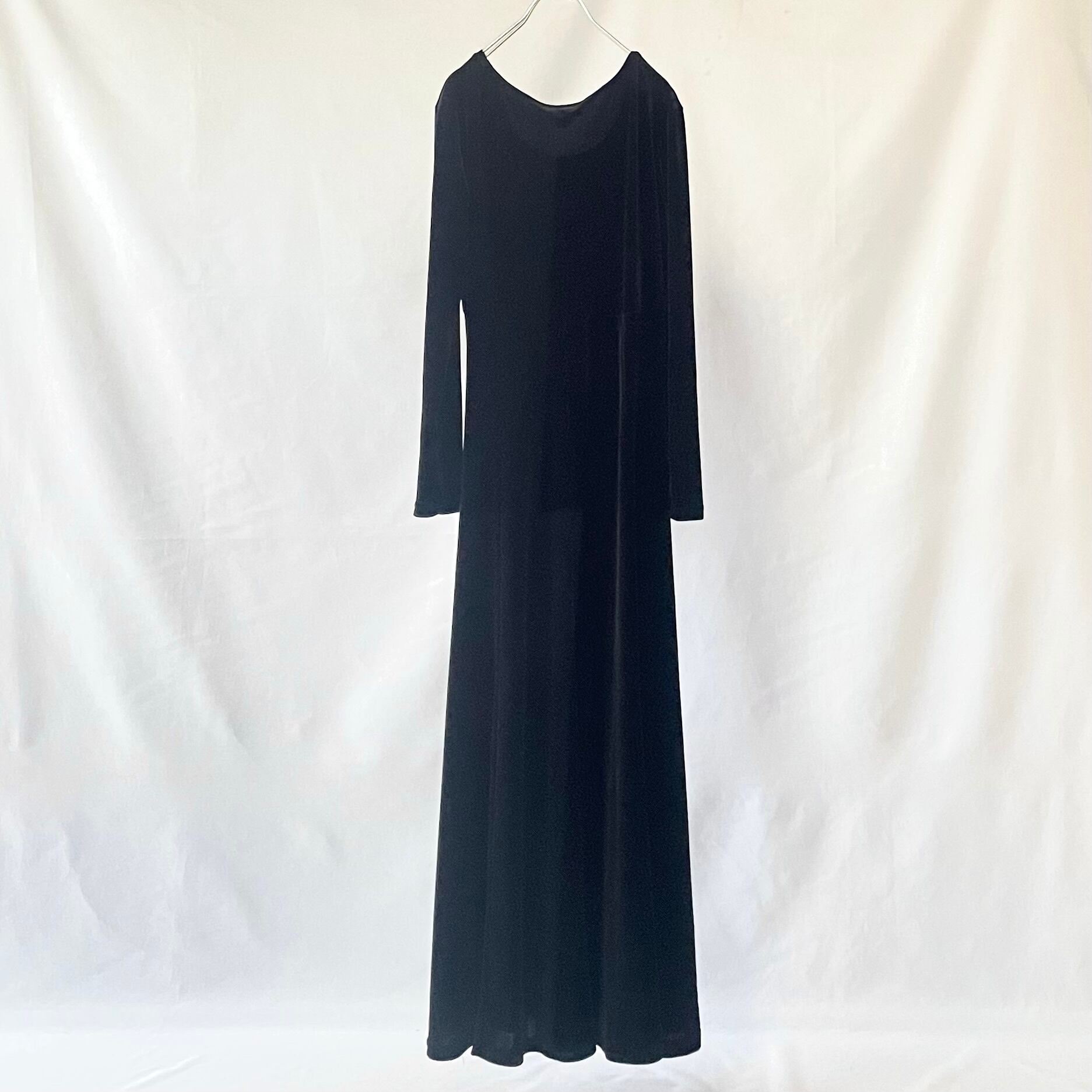 Made in USA black velour maxi onepiece アメリカ製黒ベロアマキシワンピース
