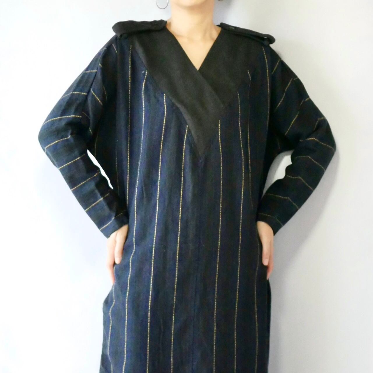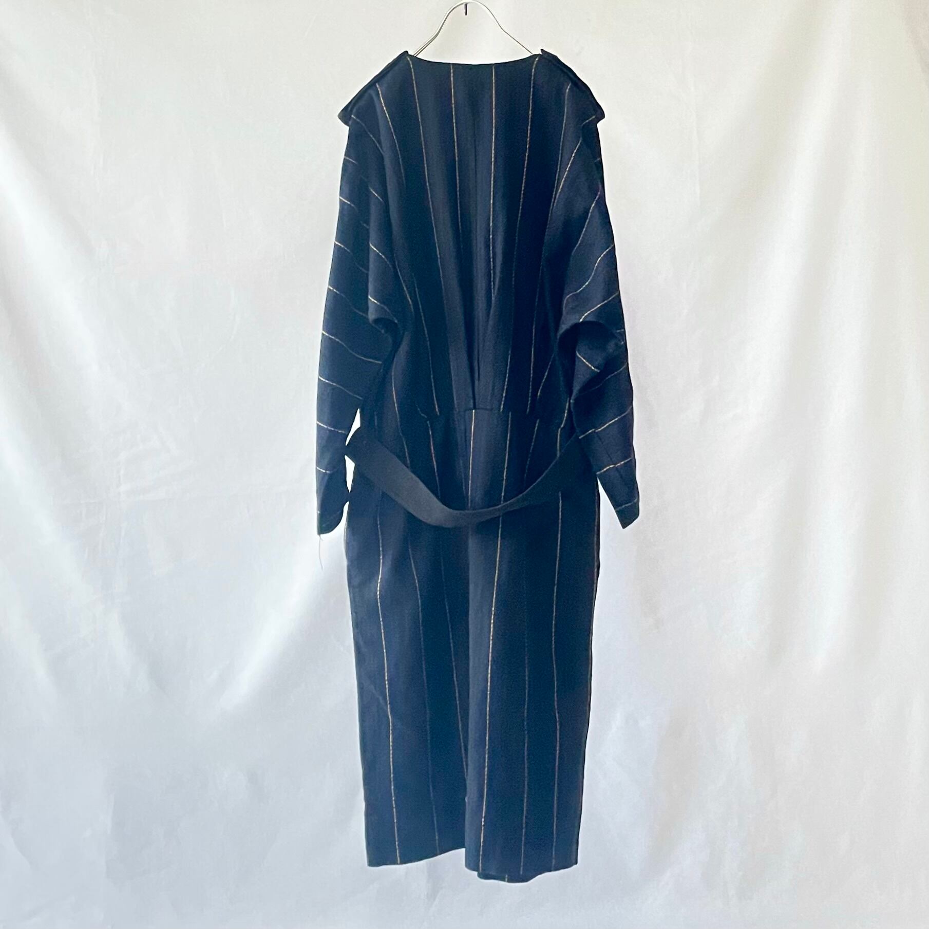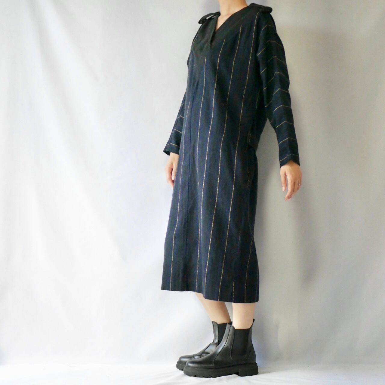 Dark navy wool stripe onepiece ダークネイビーストライプワンピース