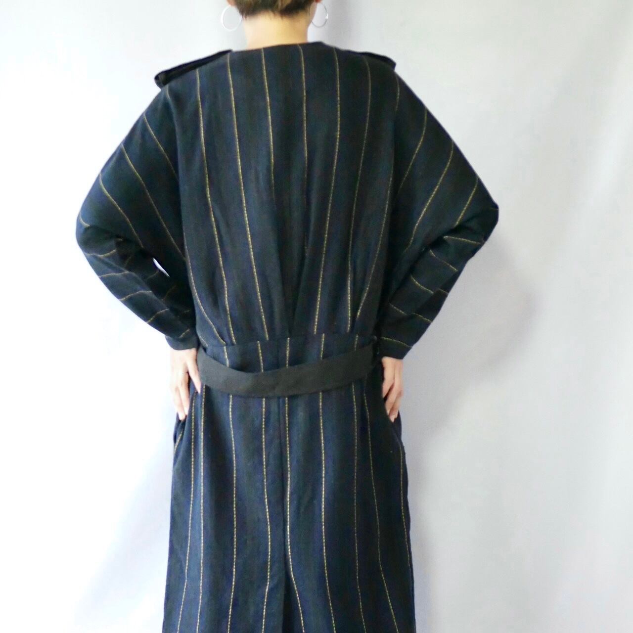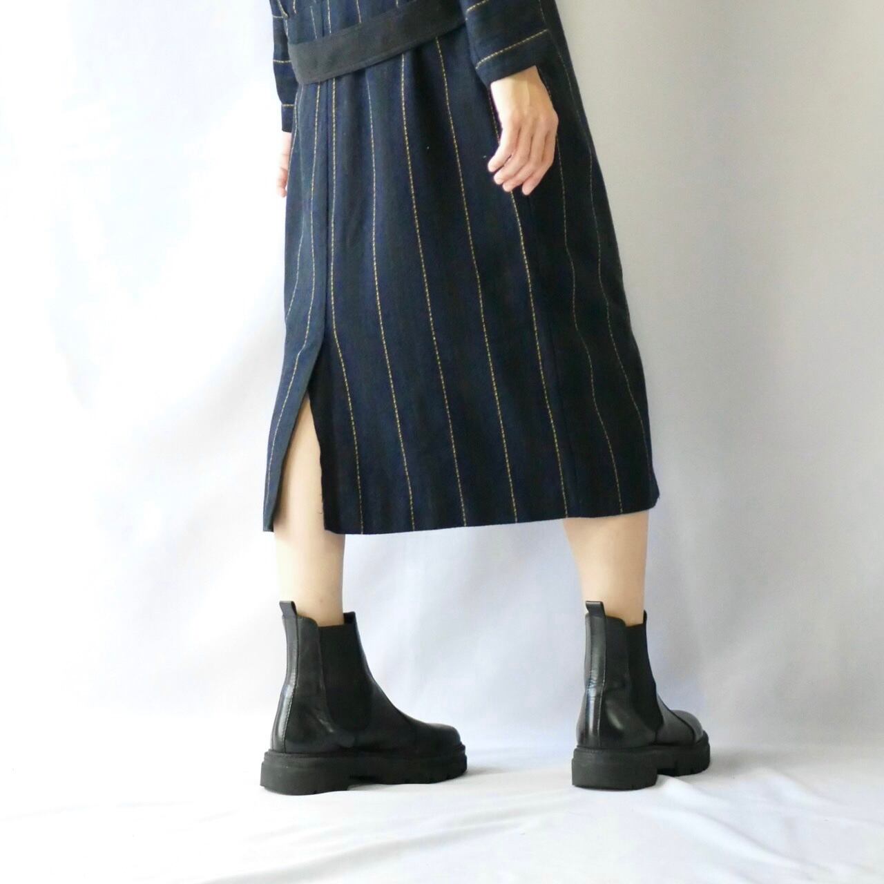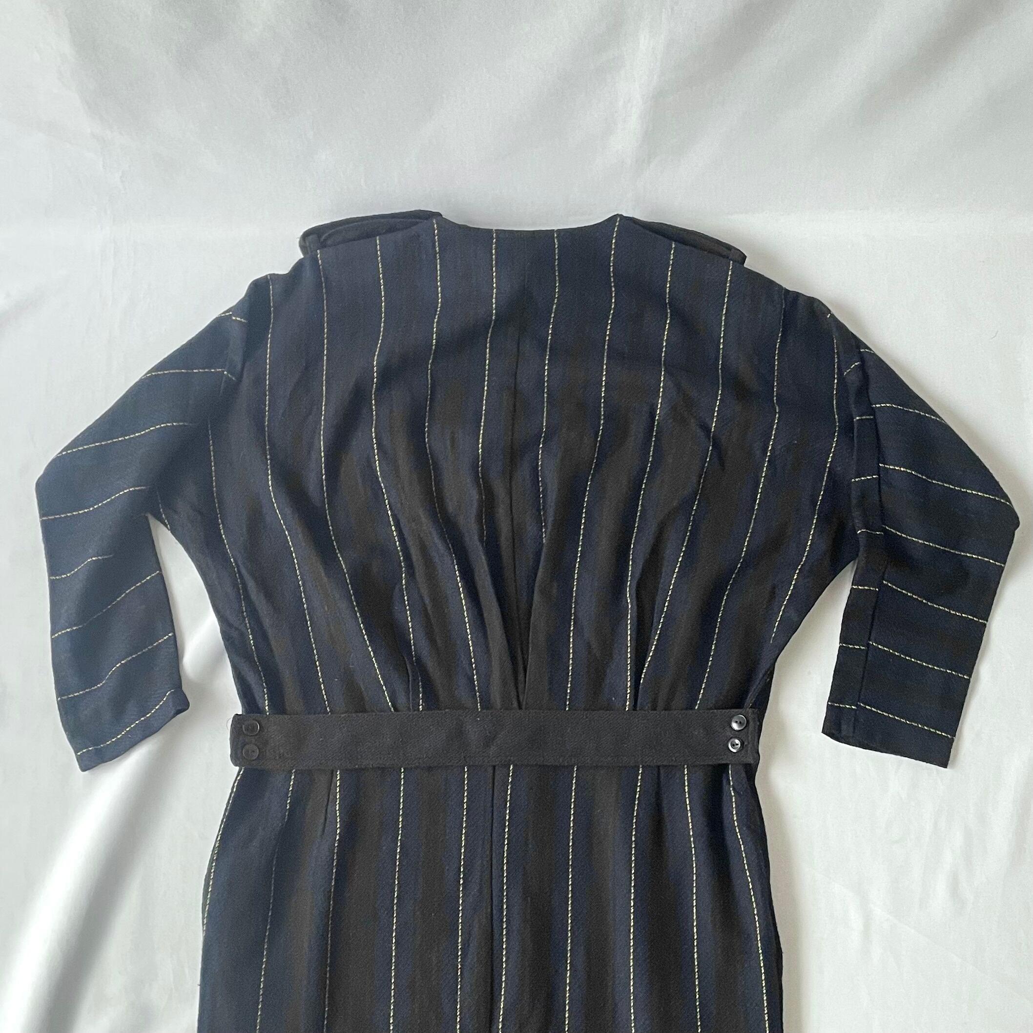 Dark navy wool stripe onepiece ダークネイビーストライプワンピース