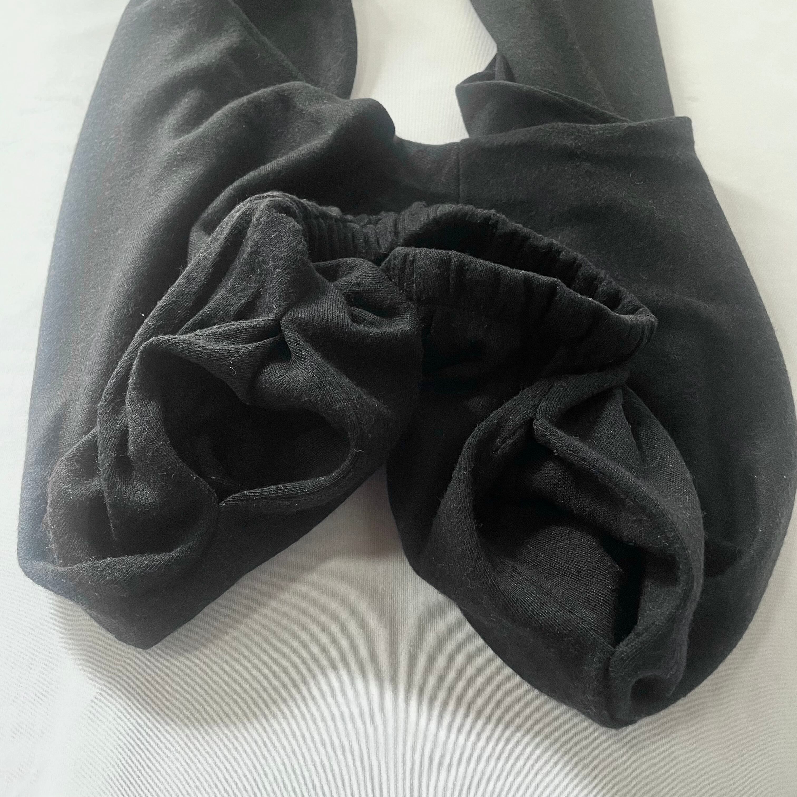 ゆったりとしたシルエットで上品かつ楽に履けるアメリカ製黒アクリル100%ニットイージーパンツです。ポケット付き