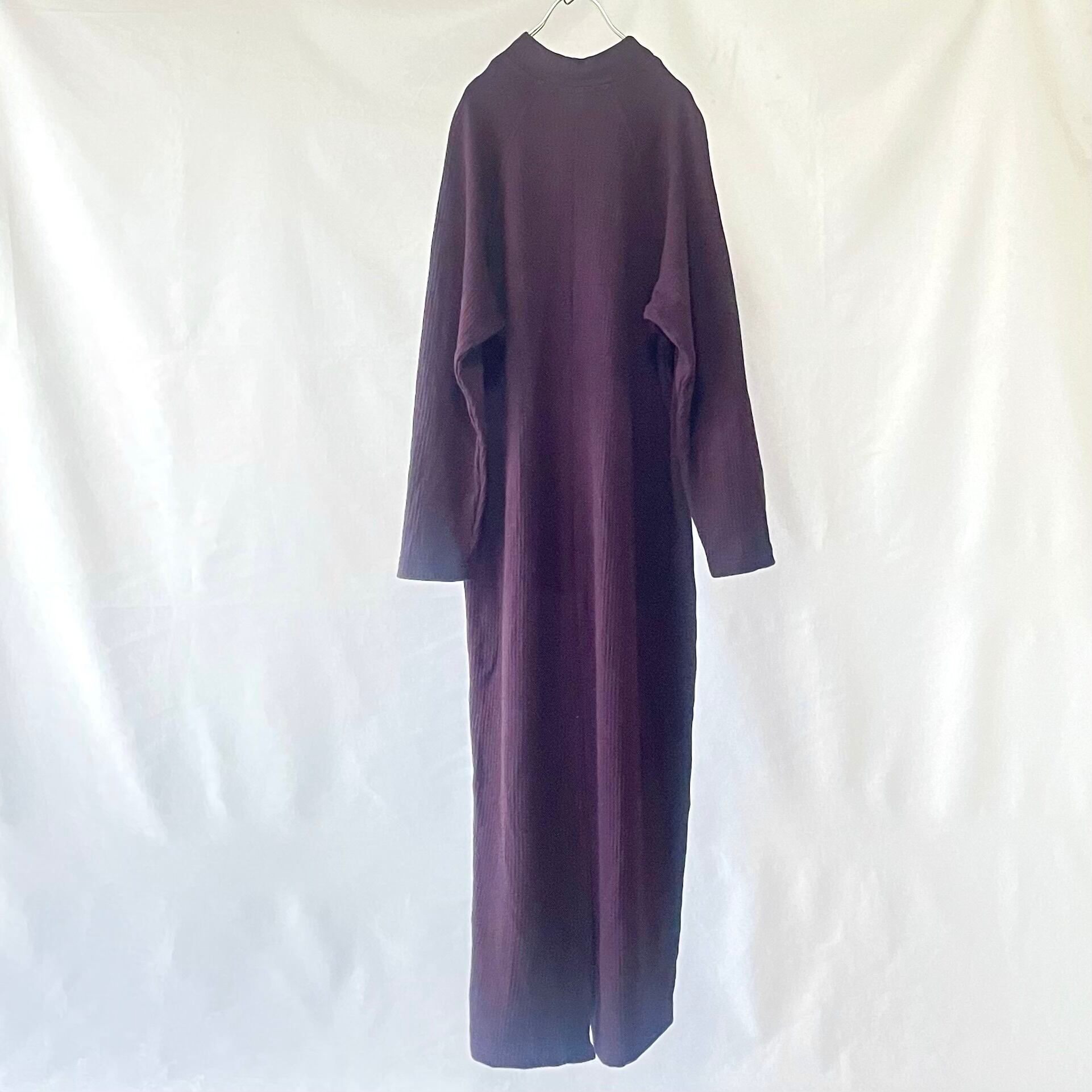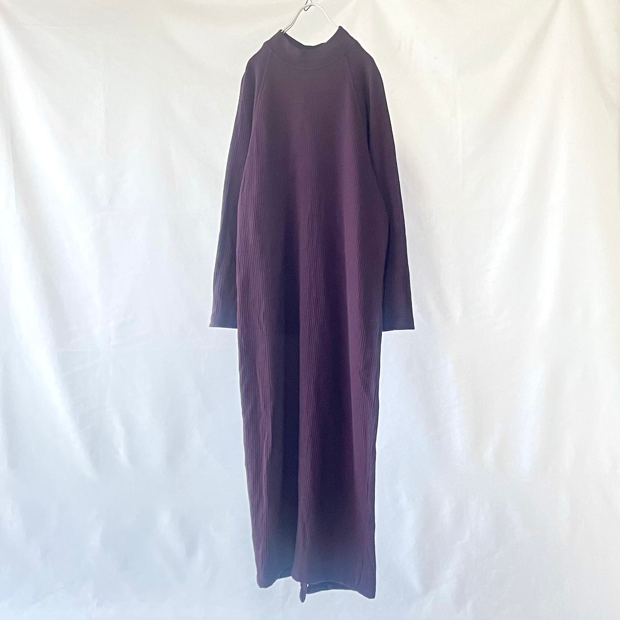 Made in USA dark purple rib L/S maxi onepiece ダークパープル長袖マキシワンピース