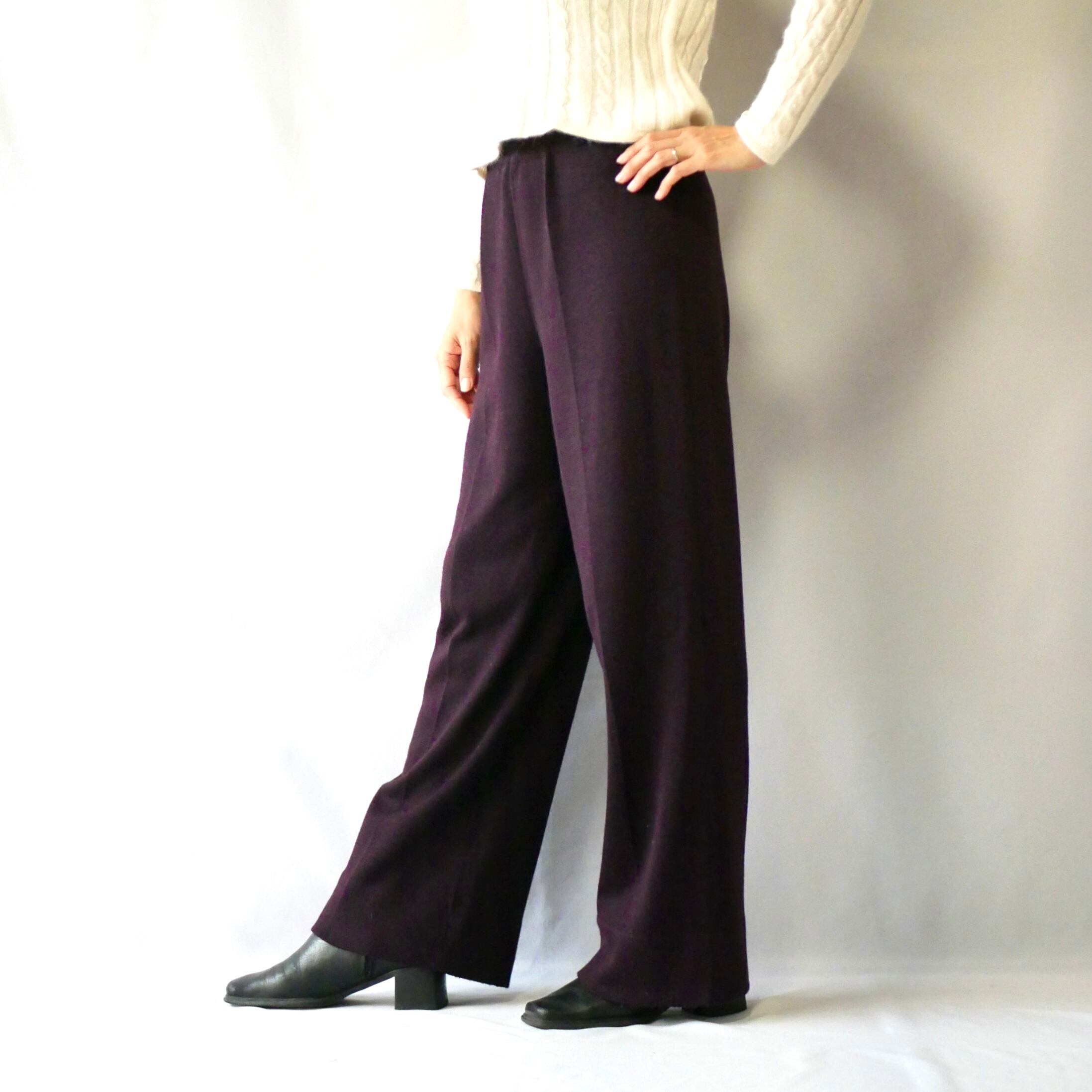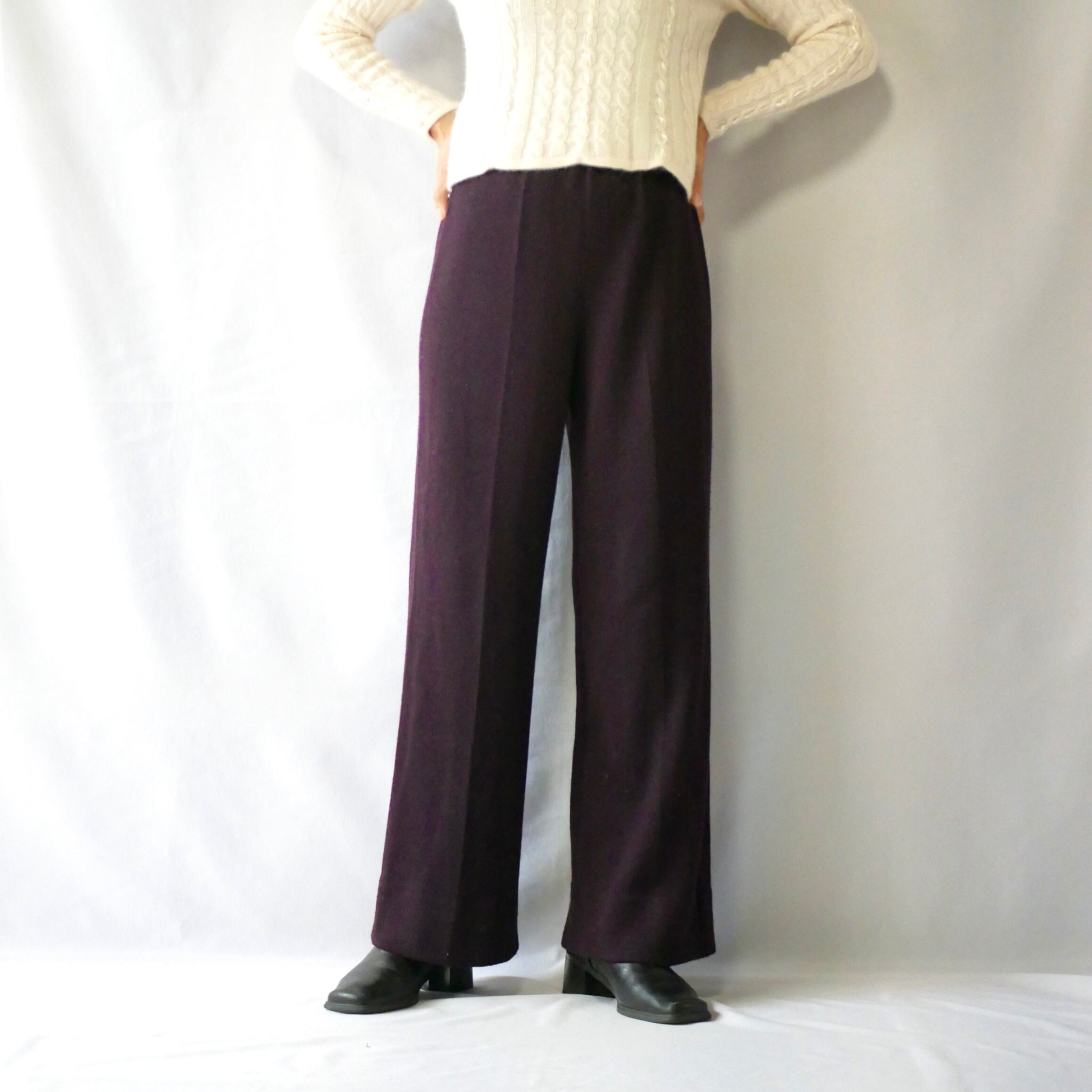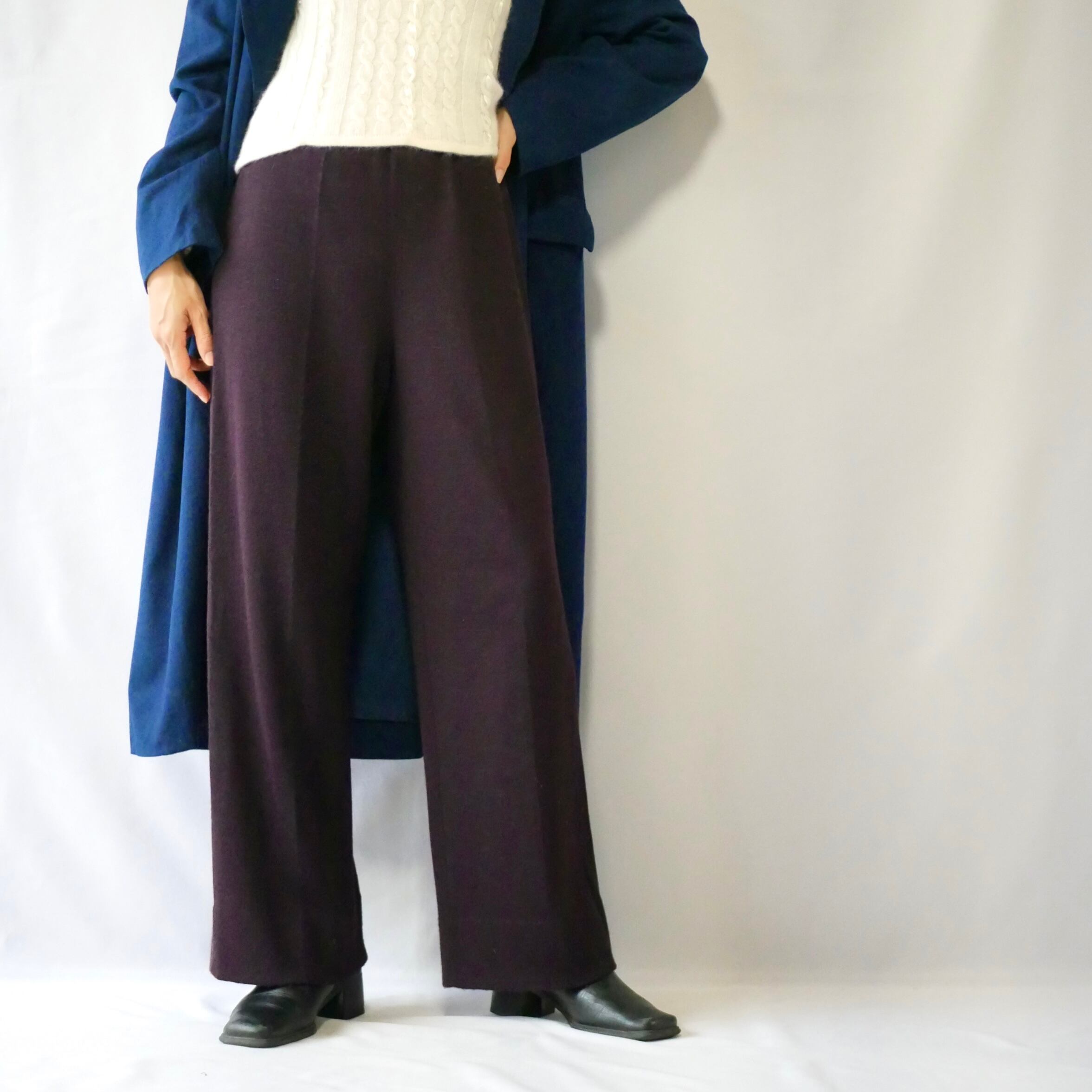 Dark purple acryl wool knit baggy pants ダークパープルニットパンツ