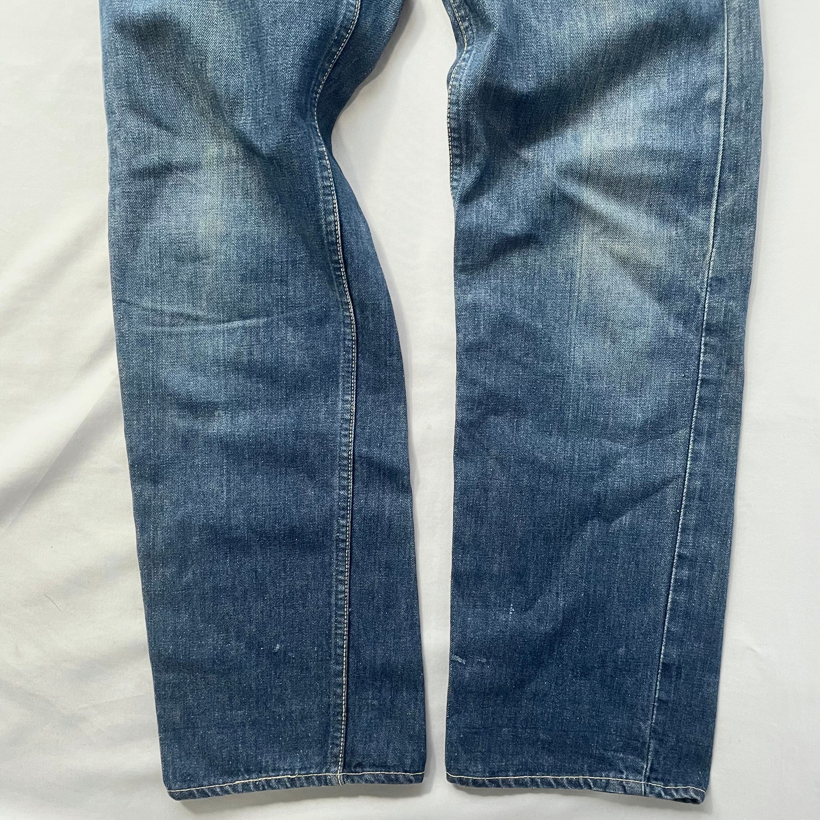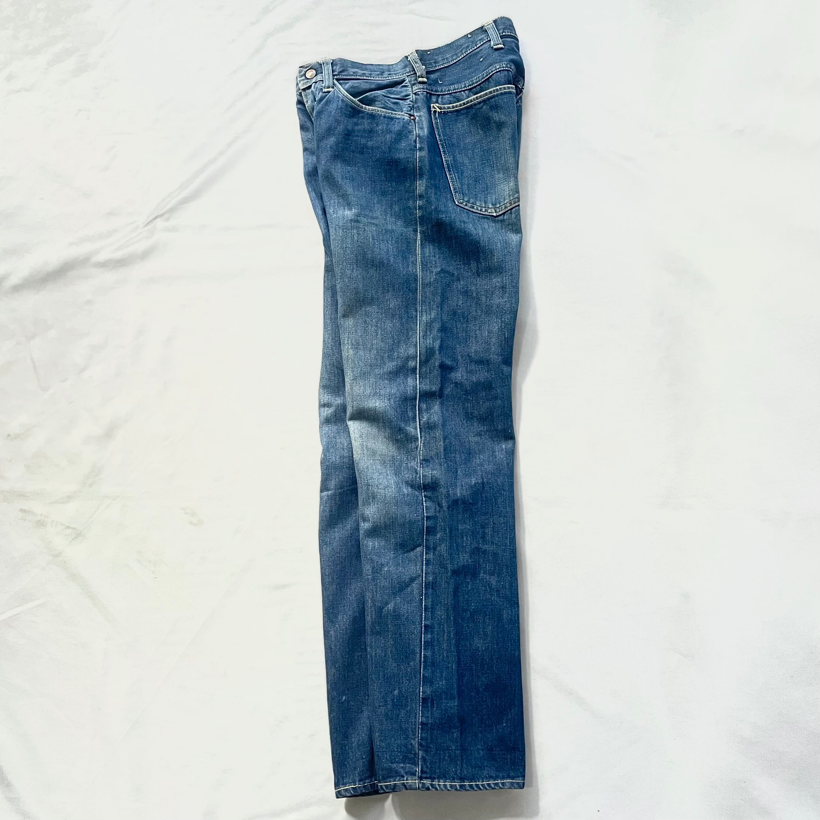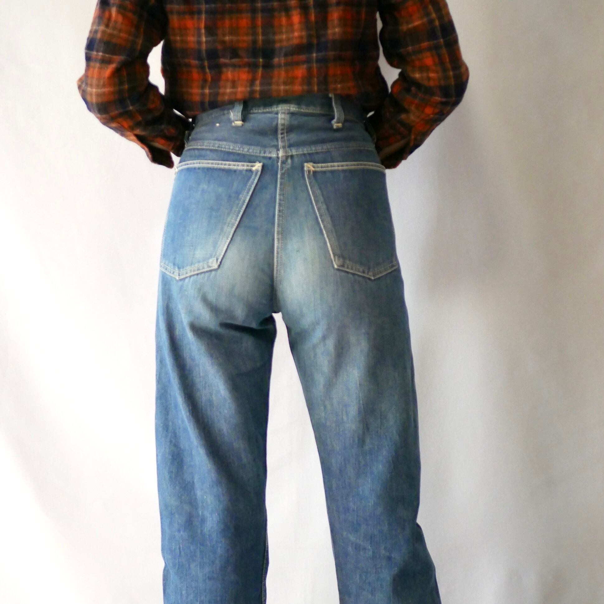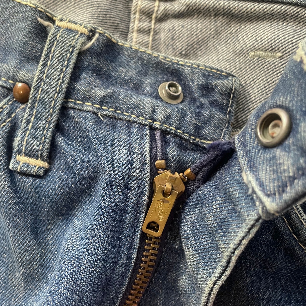 古いデニム特有の素晴らしい色落ちをしていながらも色残りはあり、股の擦れなどもなく、ライトオンスのものよりも少しヘヴィーな生地感で、まだまだ長くお使い頂けそうな状態です。