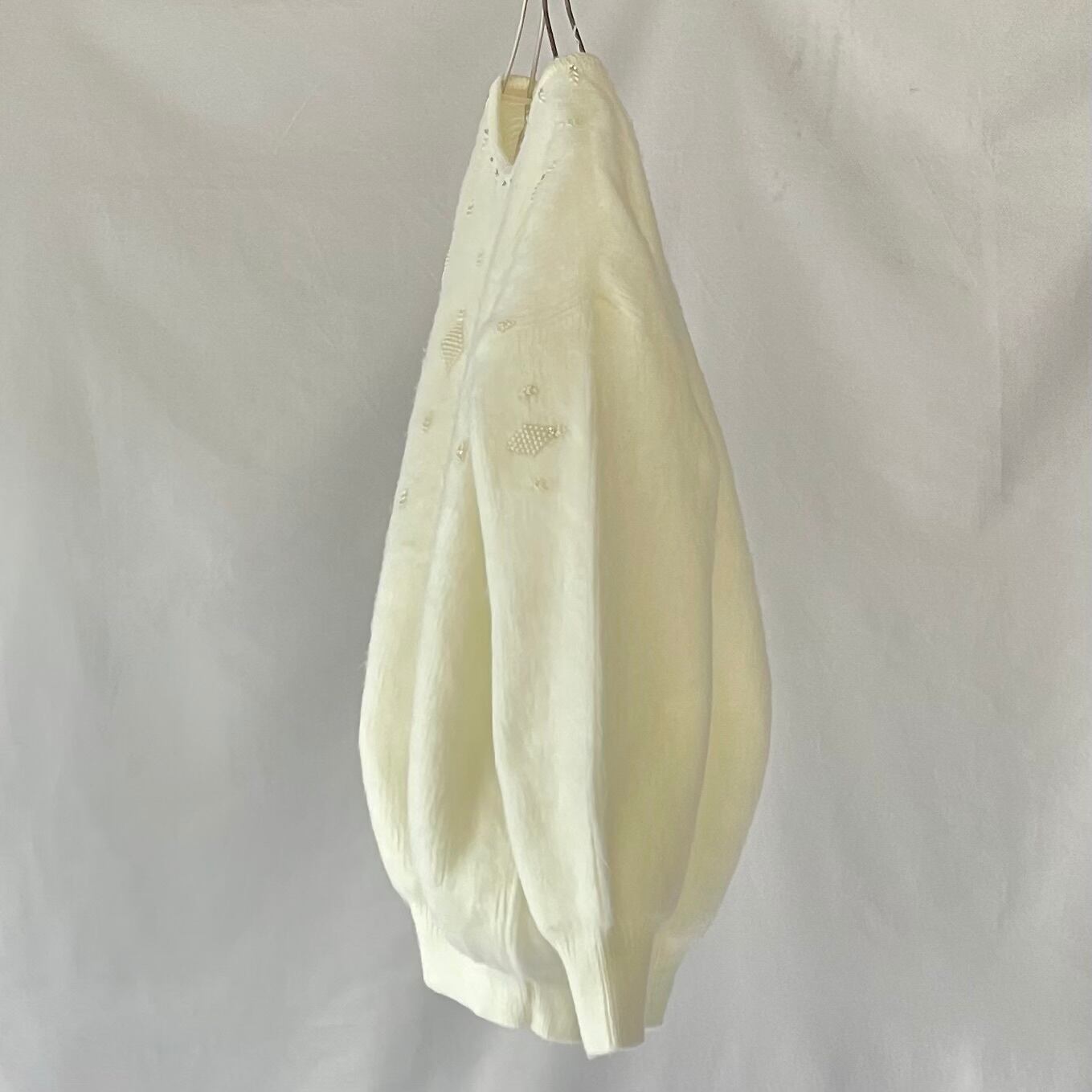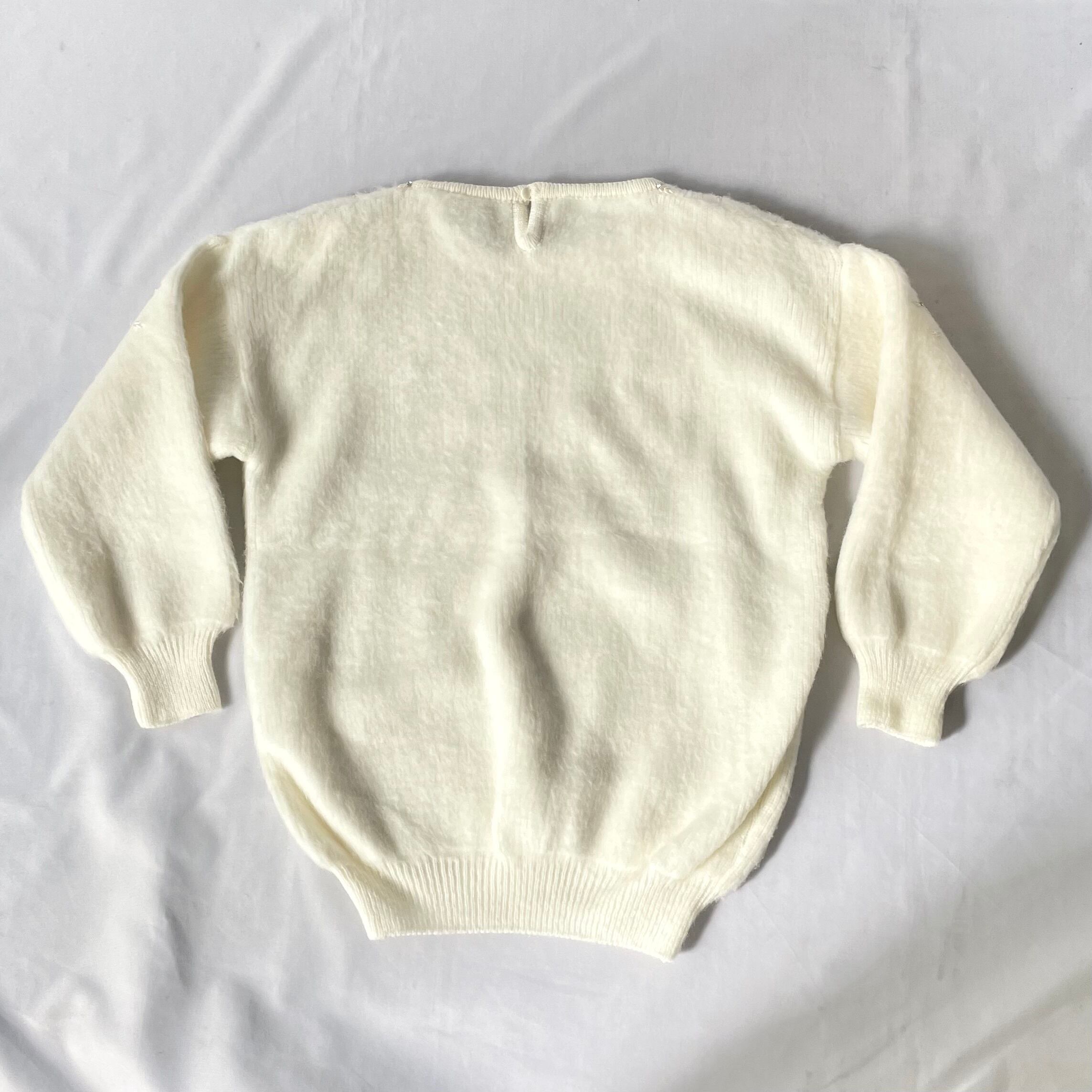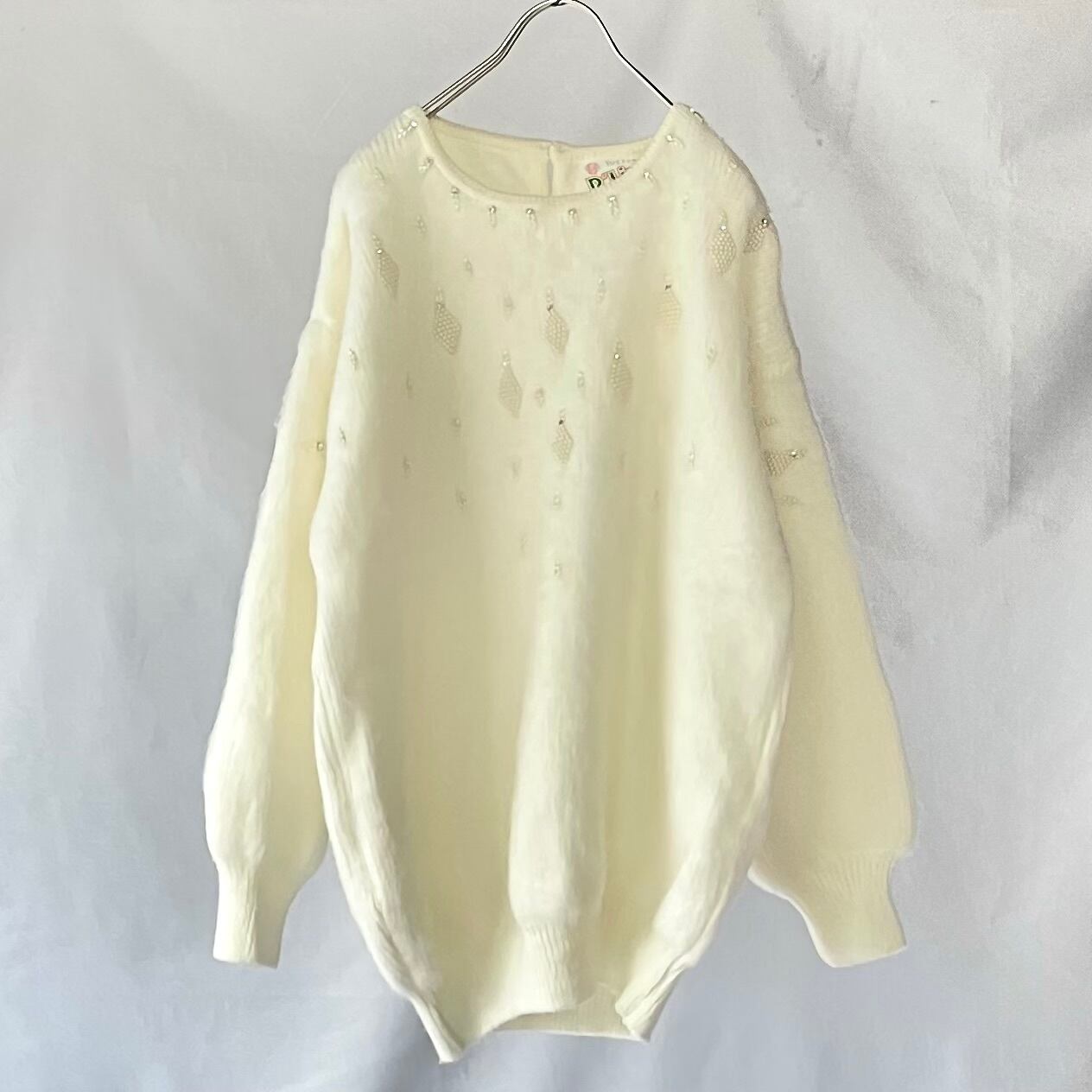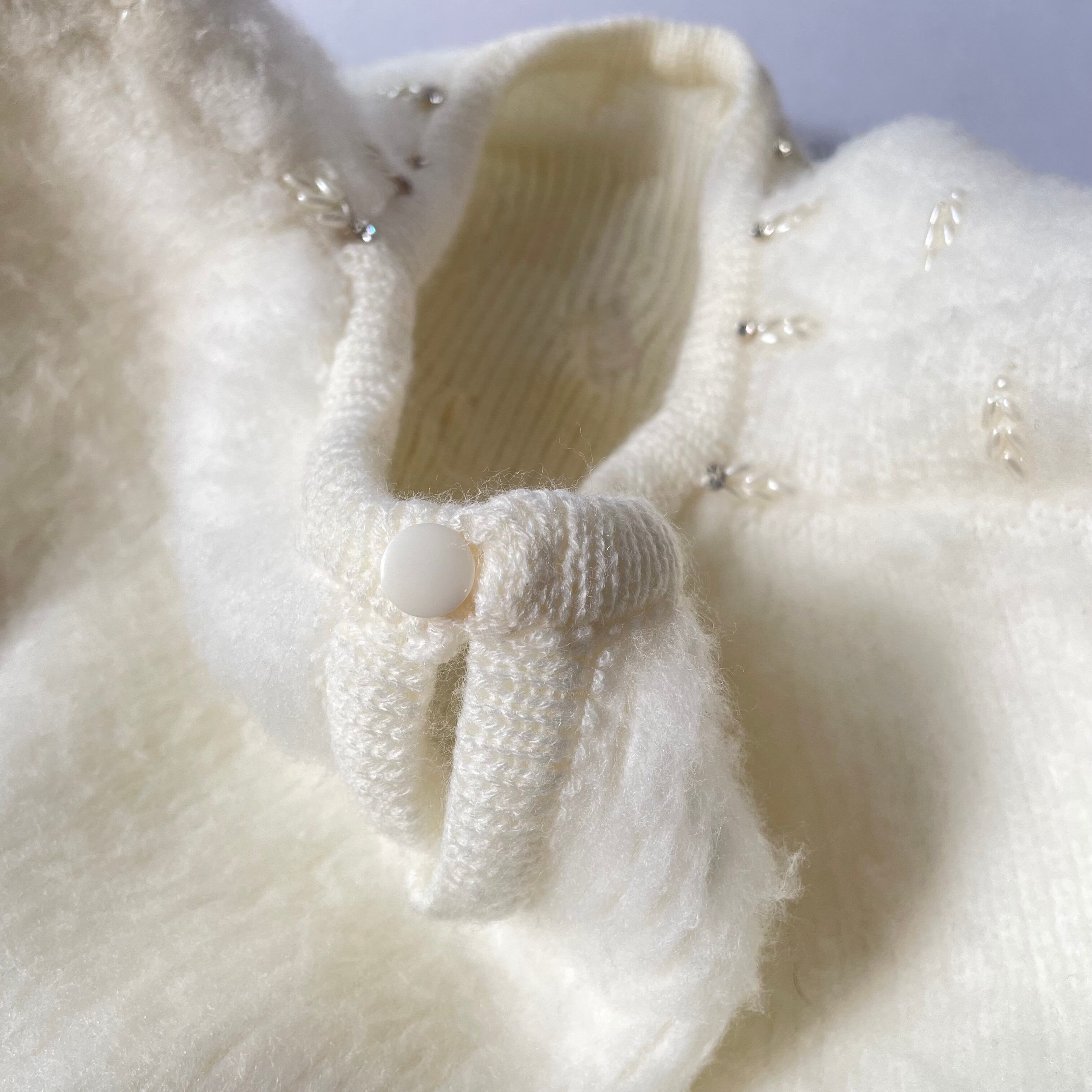 Made in Mexico white acryl beads knit メキシコ製白ビーズ装飾付きアクリルニット
