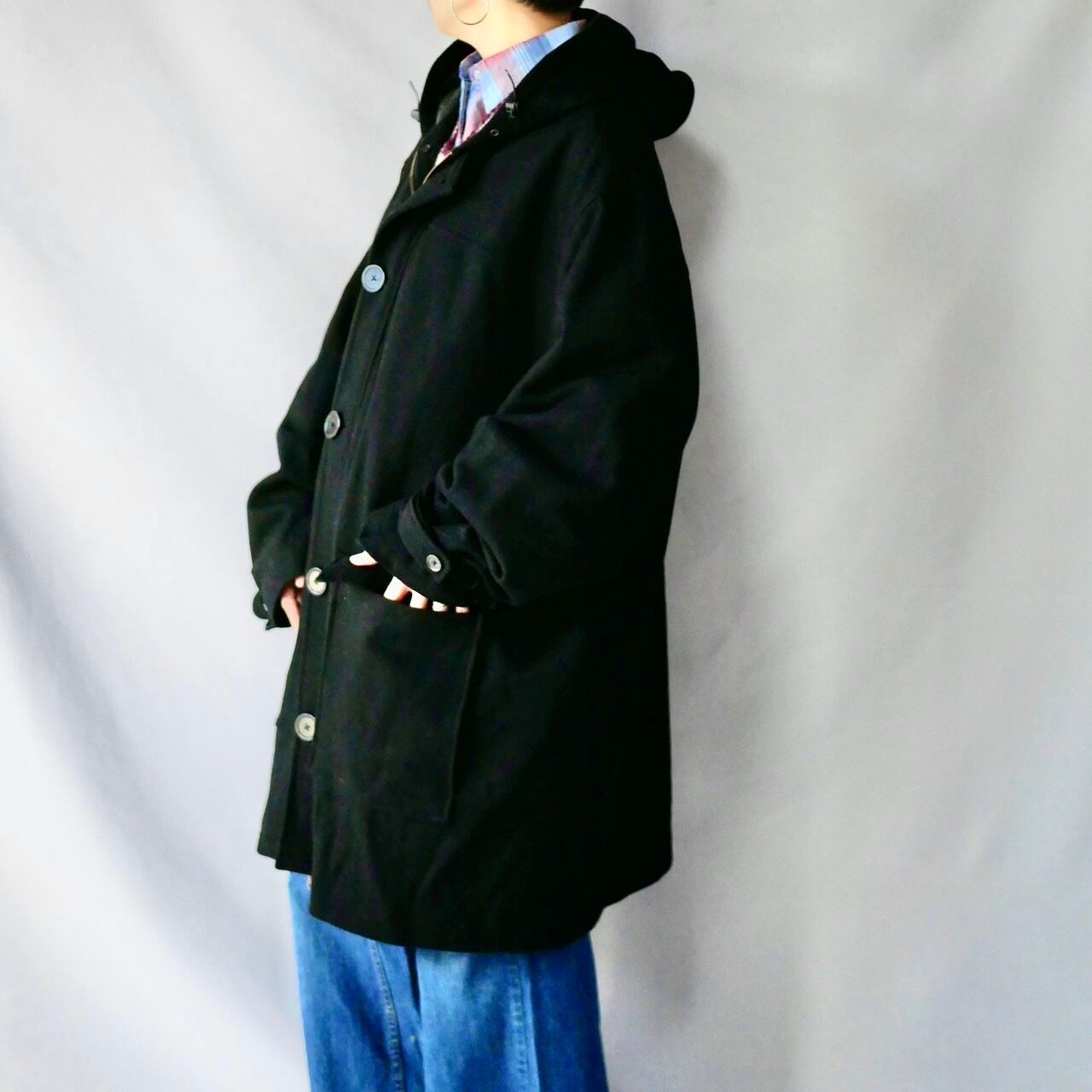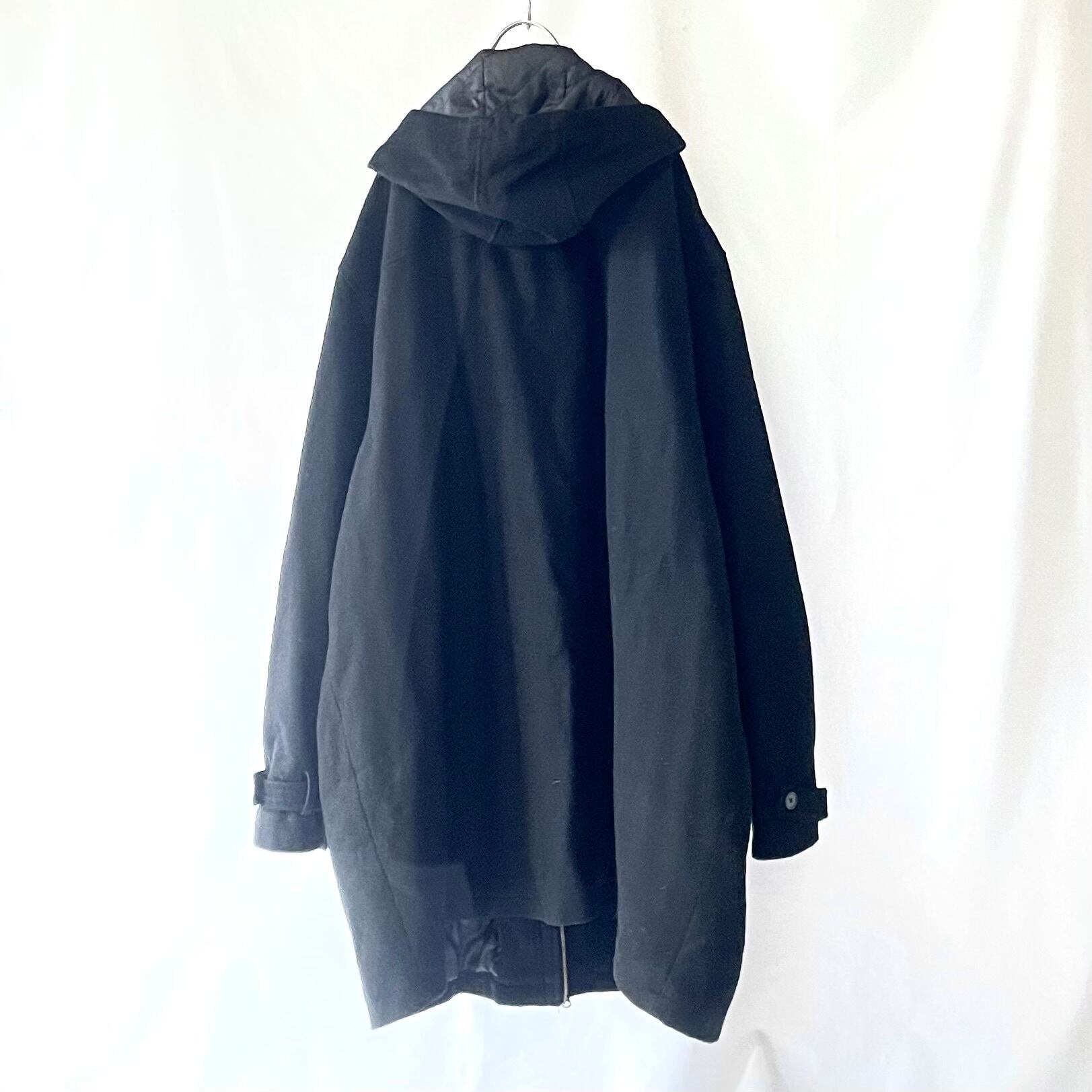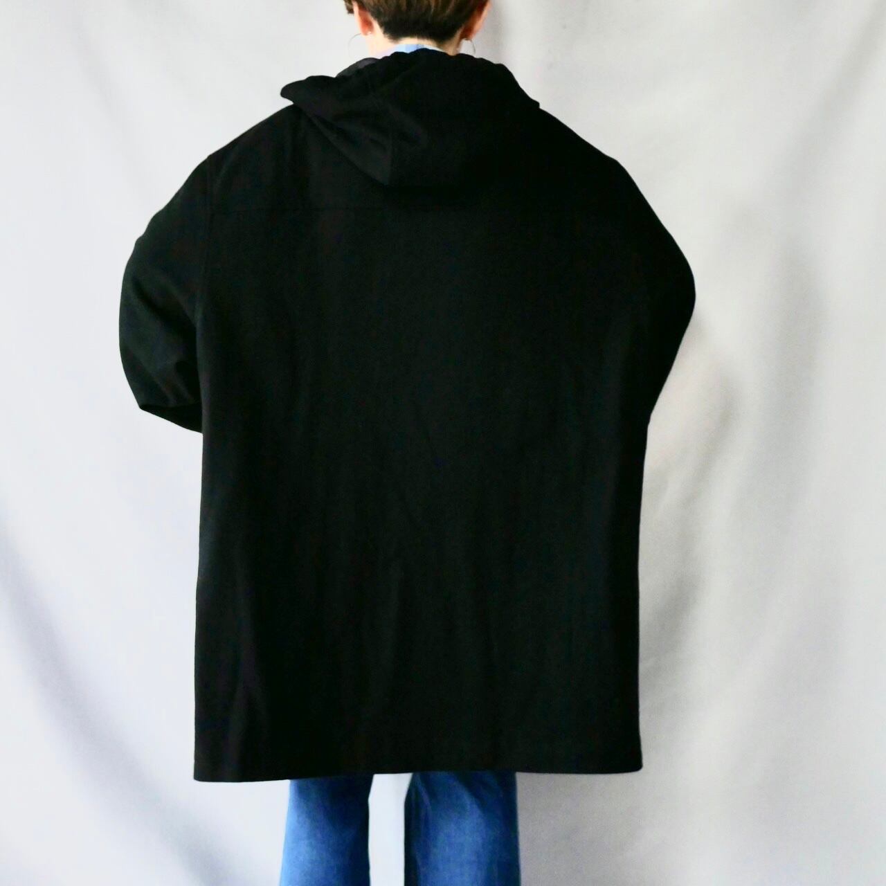 KING SIZE 4XL black wool hooded coat 黒ウールビッグシルエットフード付きハーフコート