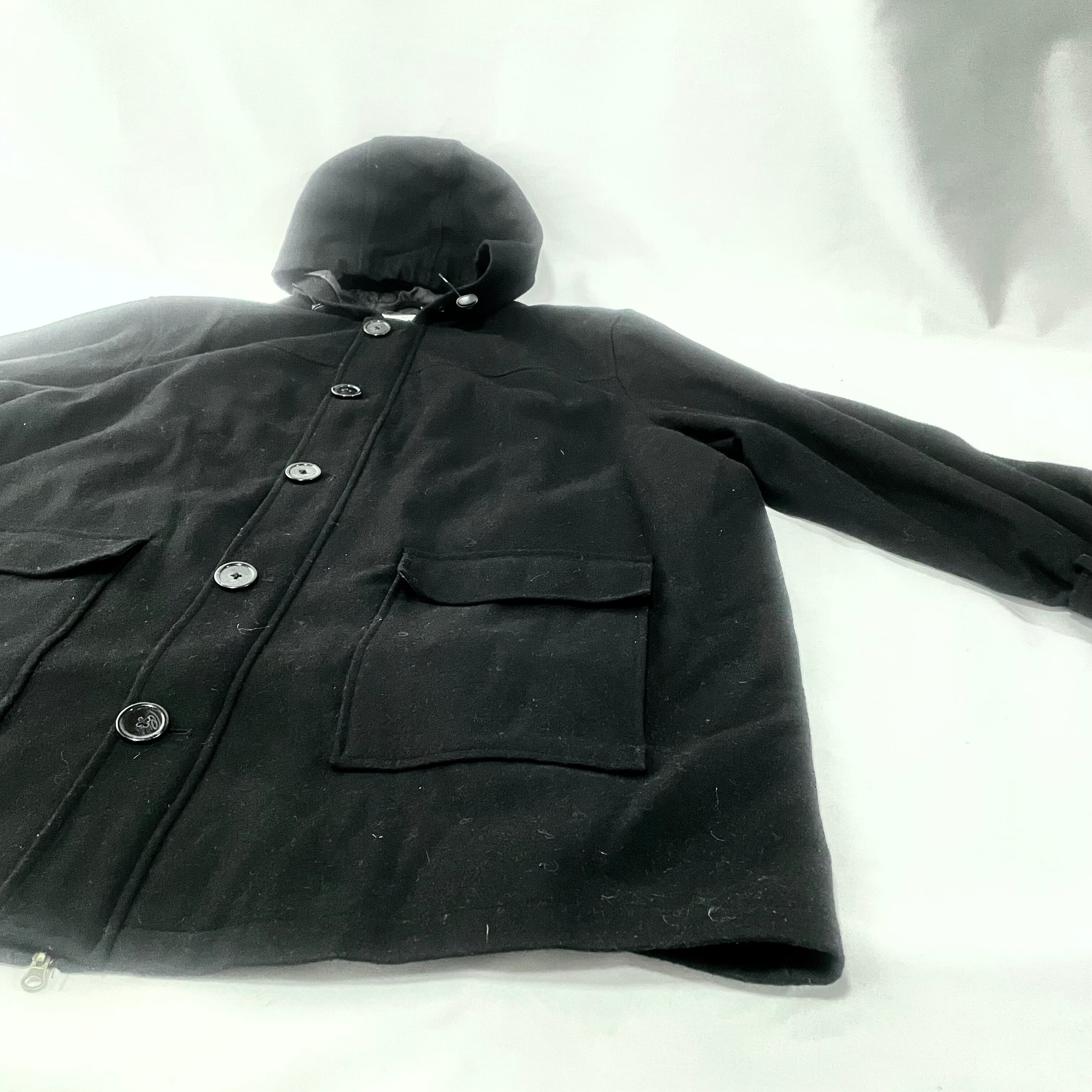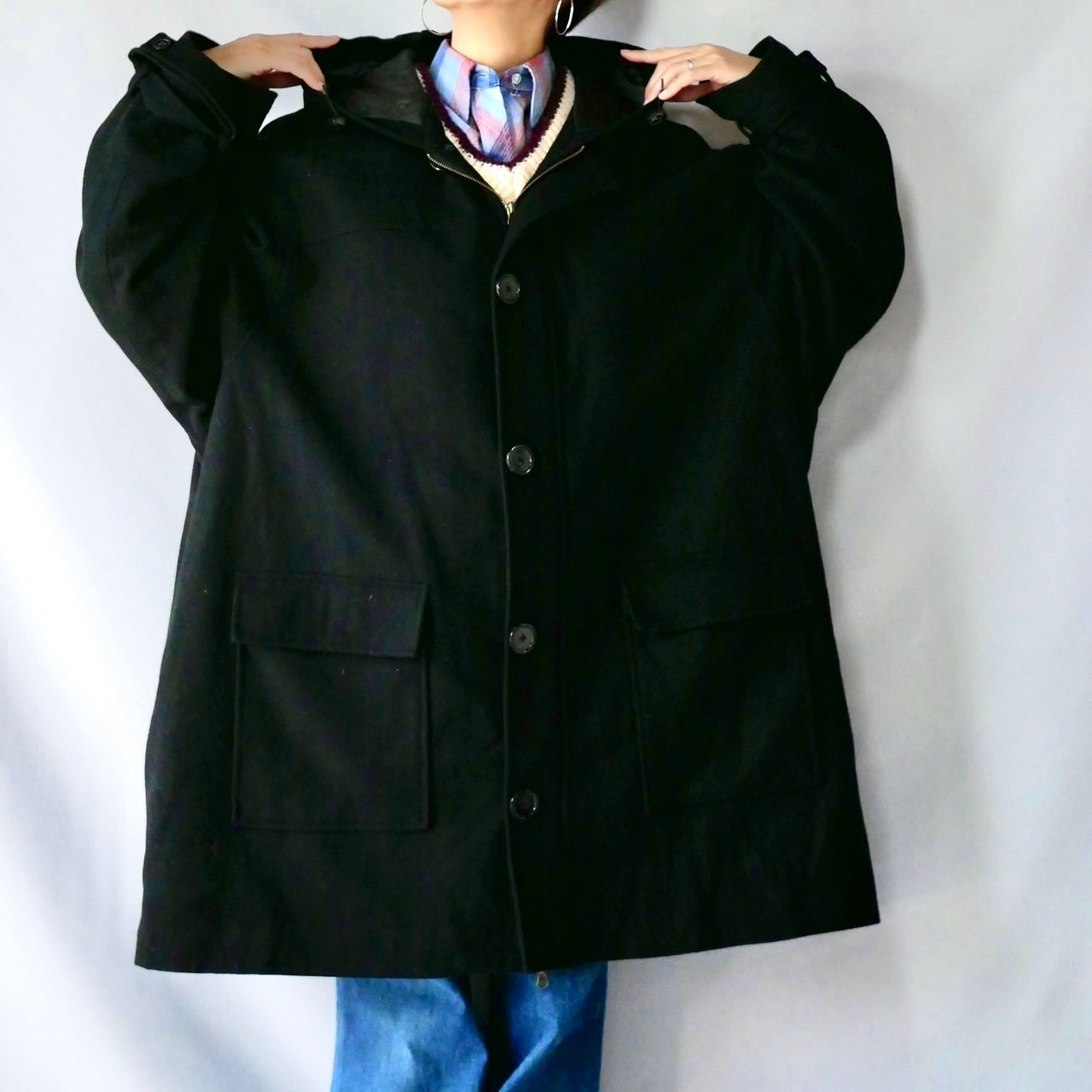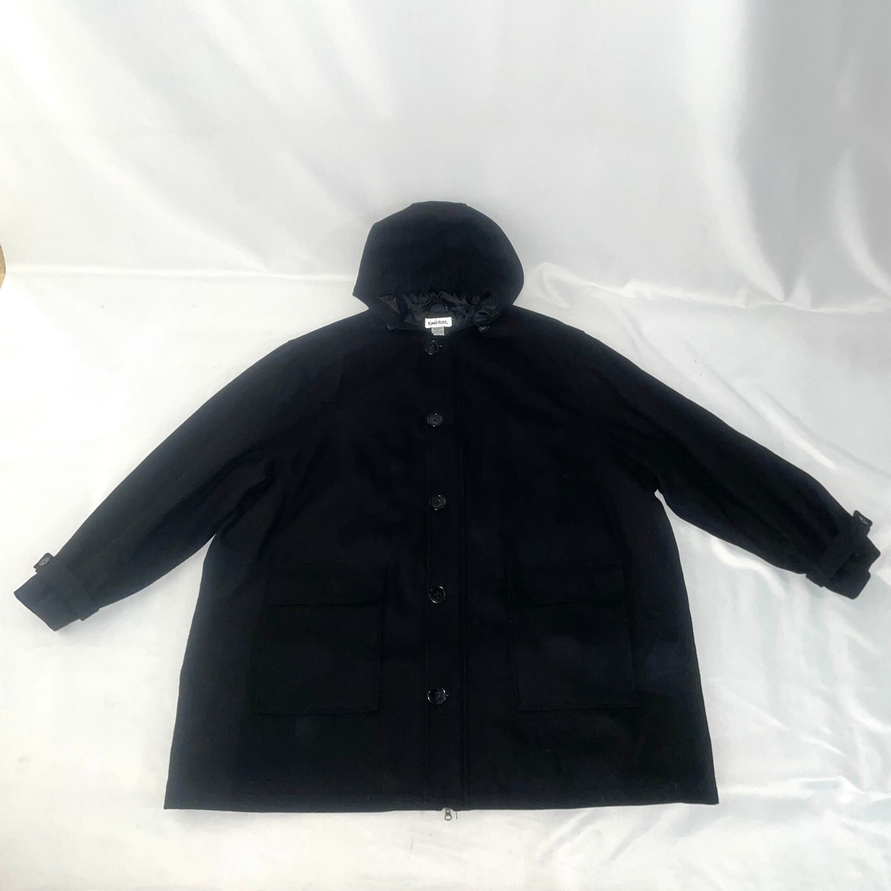 KING SIZE 4XL black wool hooded coat 黒ウールビッグシルエットフード付きハーフコート